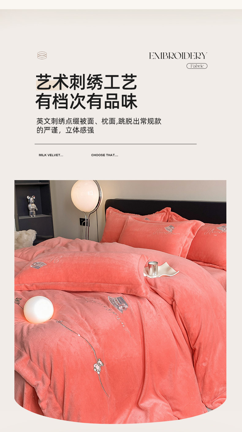 (总)绒世界 2025秋冬小香风香奈系列牛奶绒四件套,爱马仕橙,都市灰,蜜桃粉,奶昔白,秋波蓝,薰衣紫,樱花粉