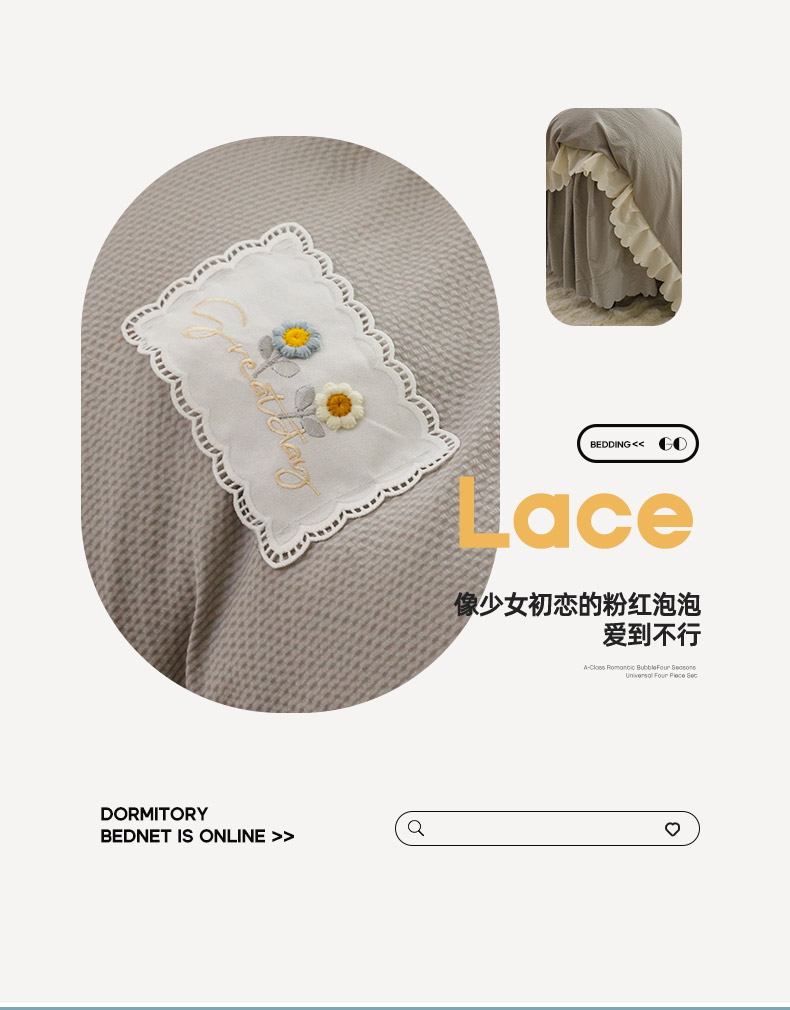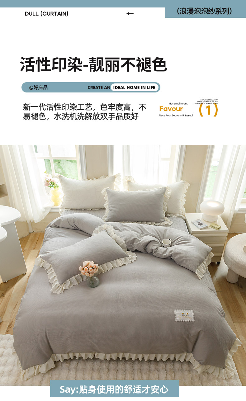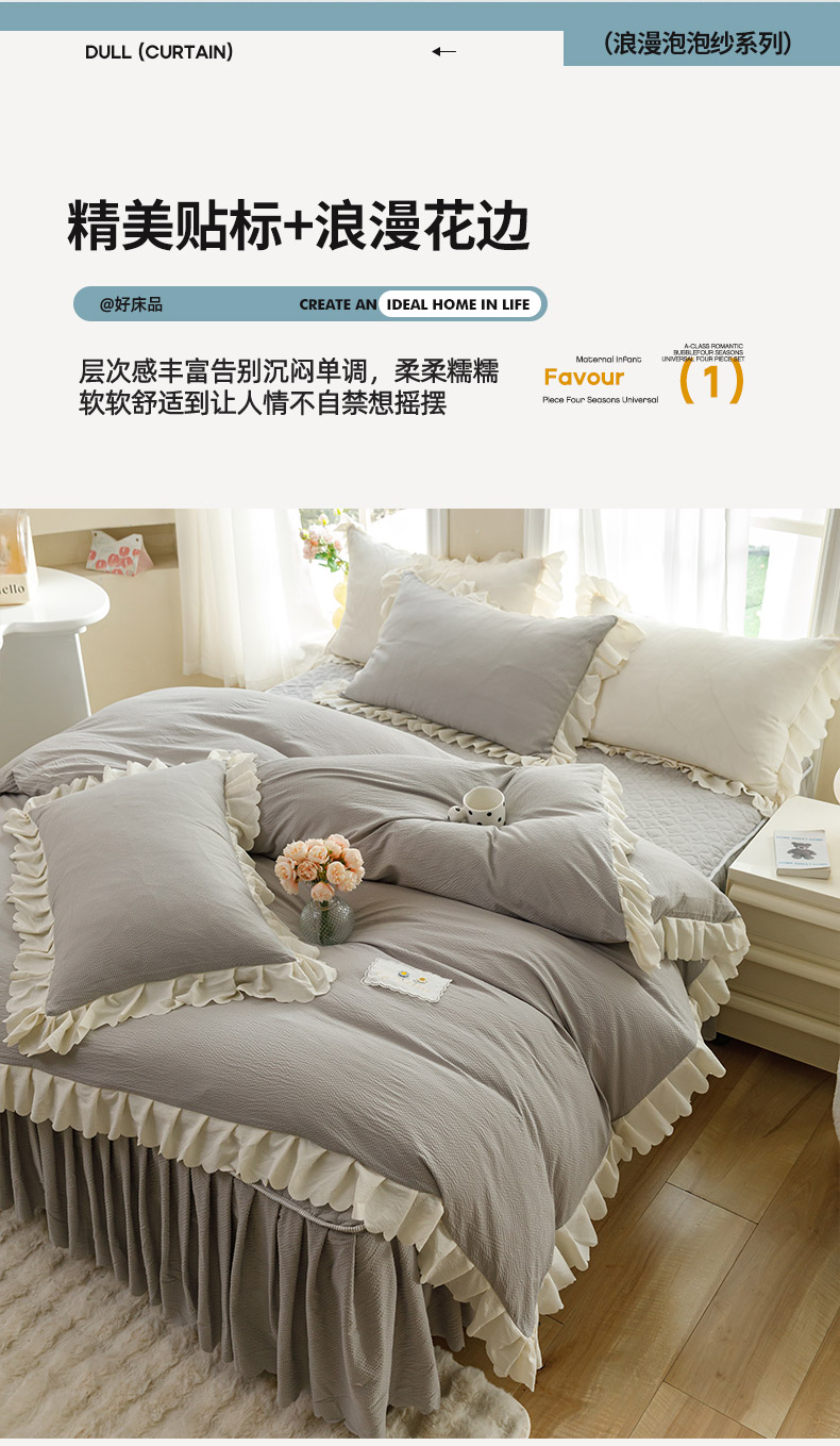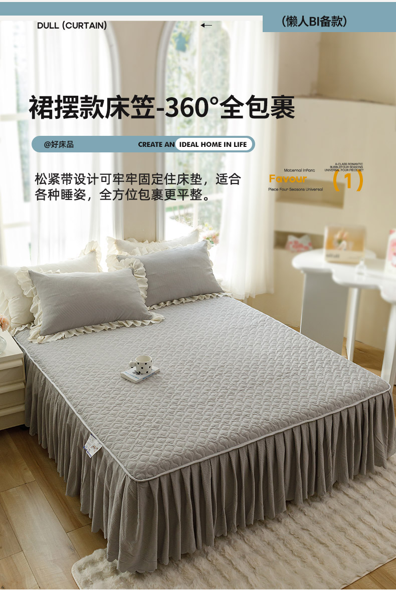 商品名称:(总)绒世界 2025新款四季款夹棉泡泡纱床裙床笠被套四件套系列