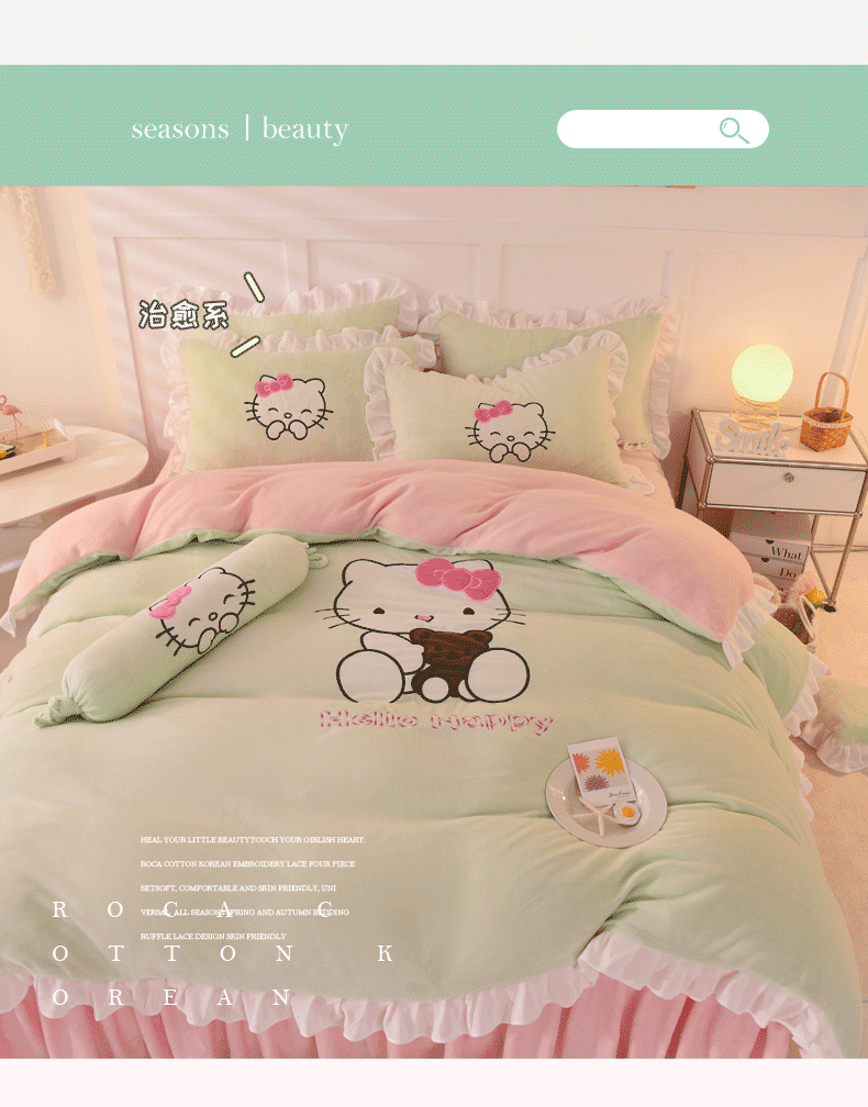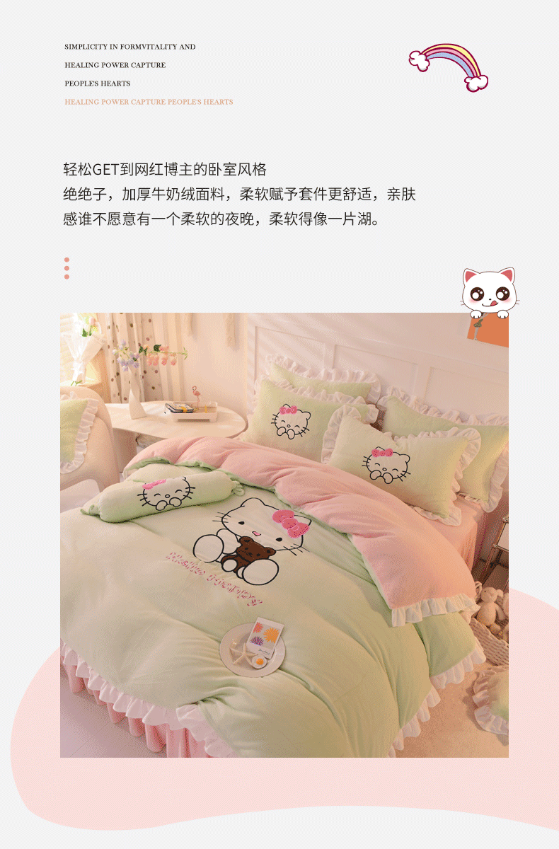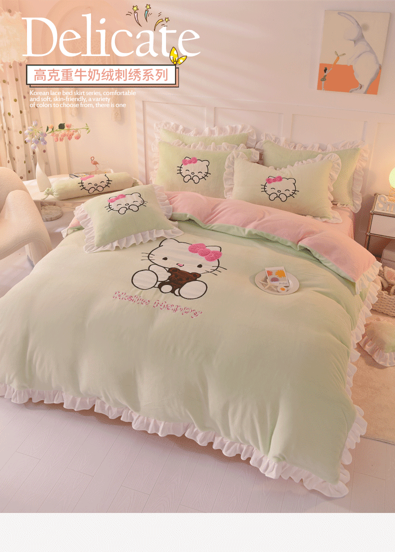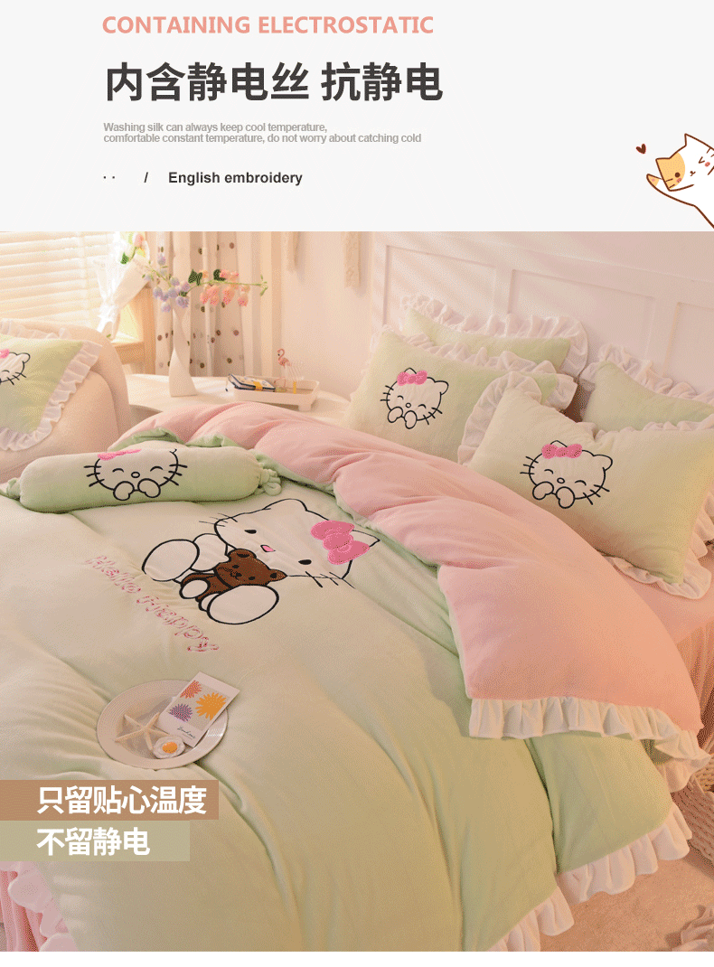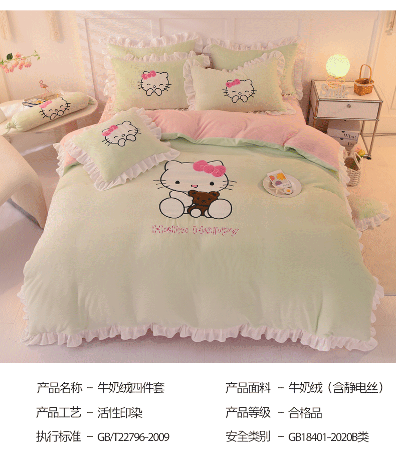 当前位置: 91家纺网 > 商品网购 > 床品套件 > 四件套 > 牛奶绒四件套 > 丝印良品 2025新款高端牛奶绒卡通刺绣牛奶绒四件套 可爱猫-抹茶拼粉
