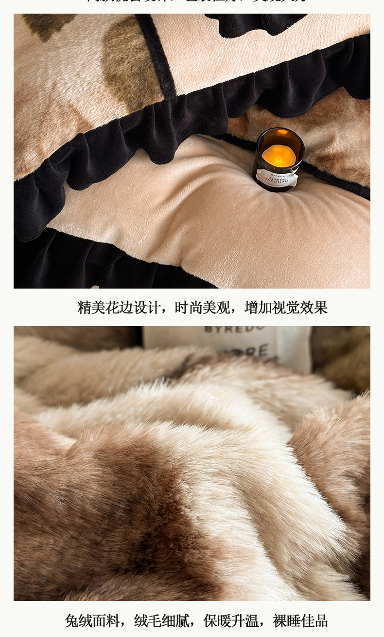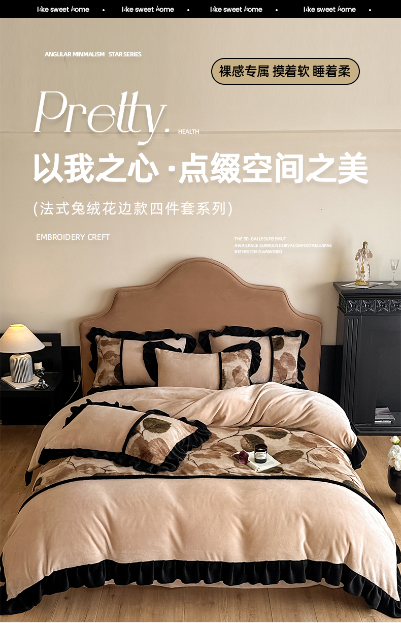 当前位置: 91家纺网 > 商品网购 > 床品套件 > 四件套 > 其它四件套 > (总)首尔家纺 2025新款法式兔绒拼接款四件套