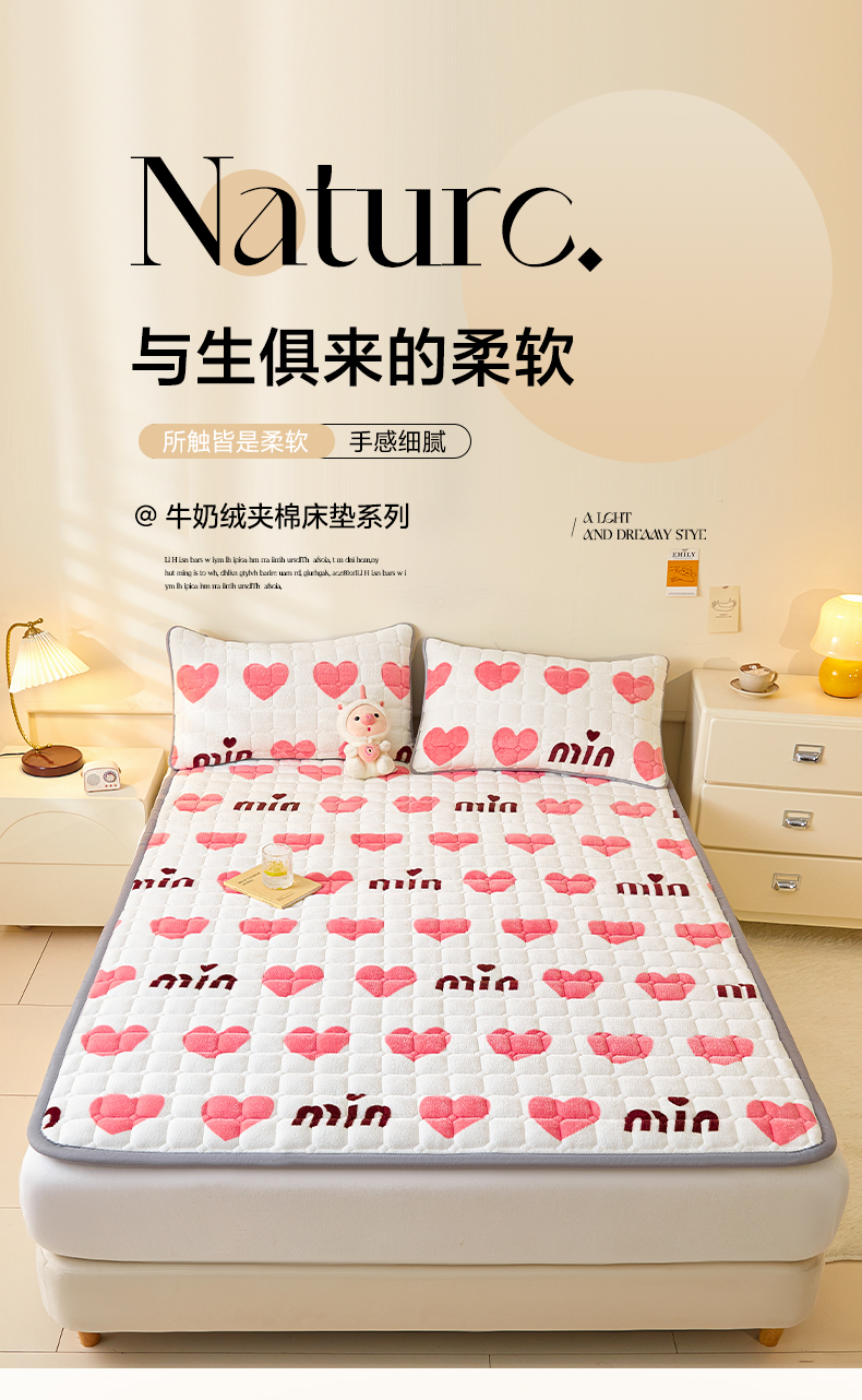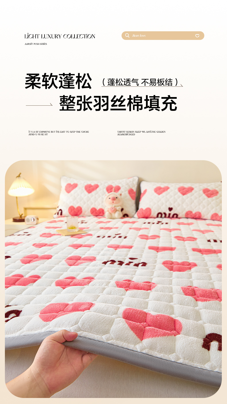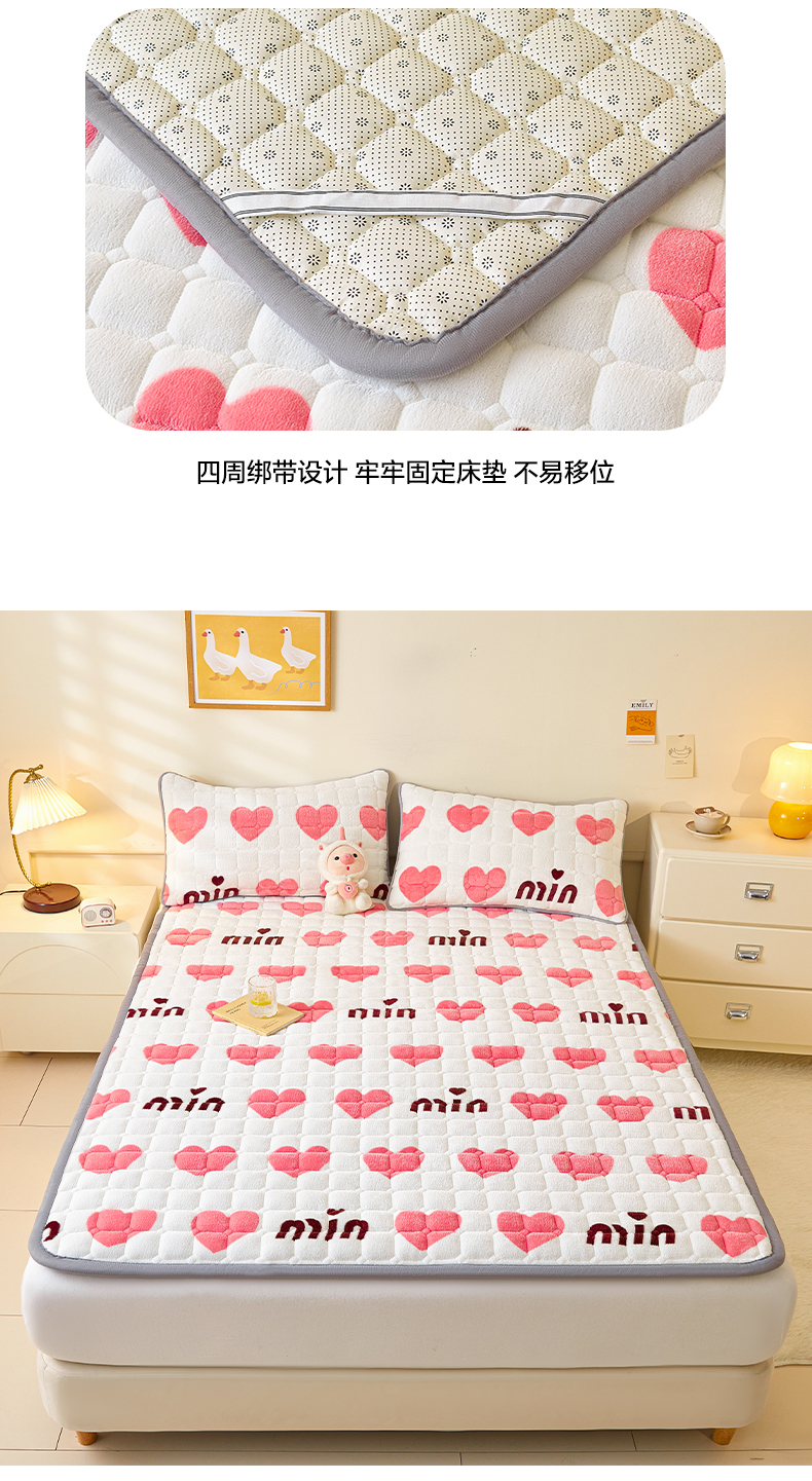 当前位置: 91家纺网 > 商品网购 > 床垫/床褥 > 普通床垫 > 卡伦家纺 2025新款A类牛奶绒夹棉加厚床垫单人双人床垫保护垫 甜蜜爱心