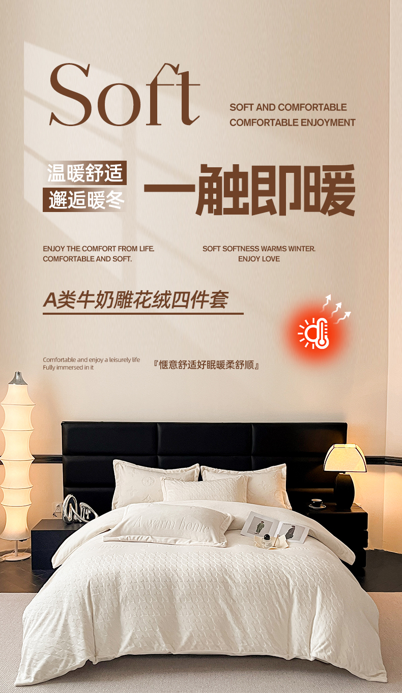 商品名称:(总)爱家(原缔乐家纺) 2025新款A类牛奶雕花绒四件套 浪漫主义系列(床盖加20)