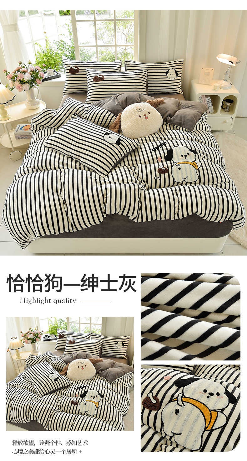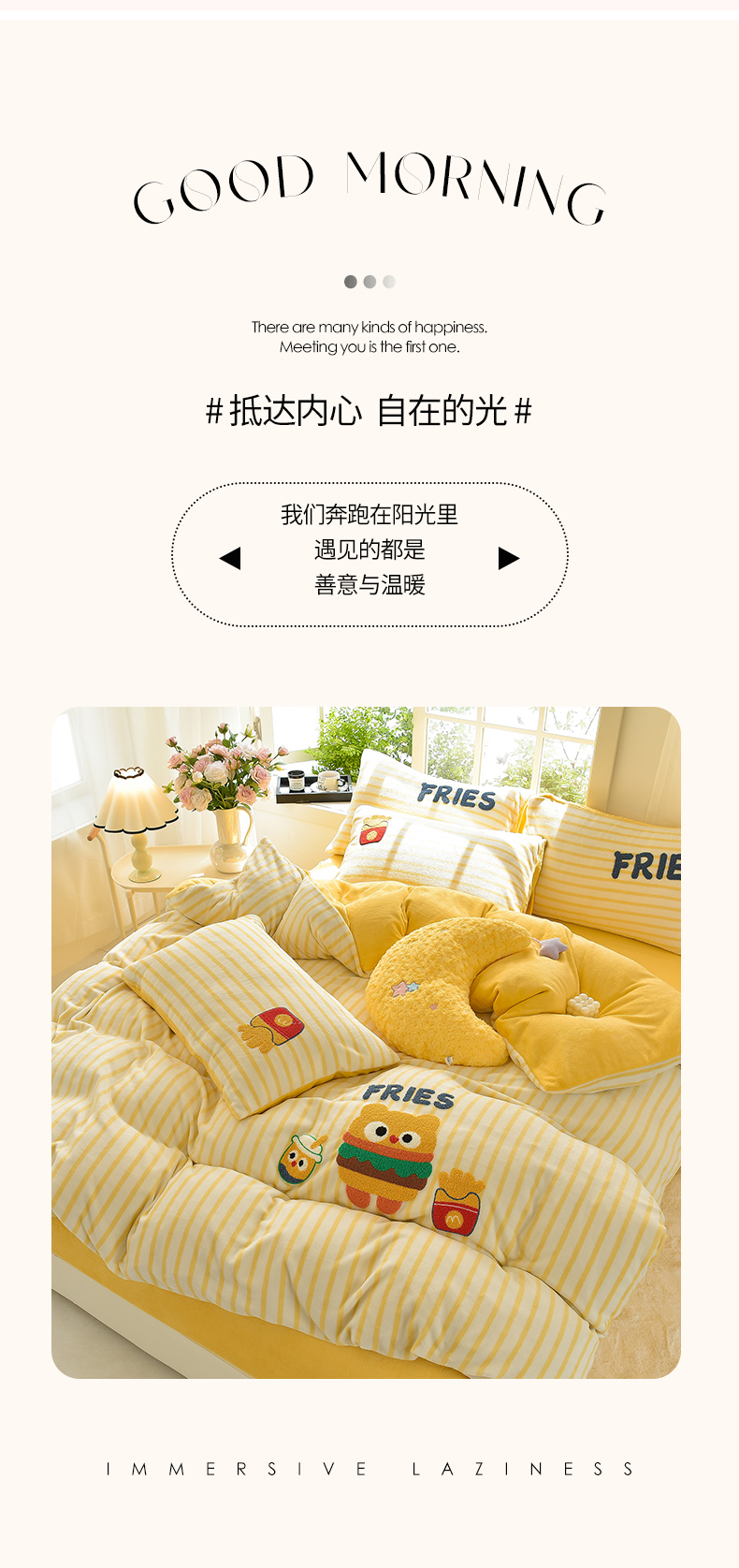 当前位置: 91家纺网 > 商品网购 > 床品套件 > 四件套 > 牛奶绒四件套 > (总)炫拼家纺 2025新款条纹印花卡通毛巾绣加厚牛奶绒四件套