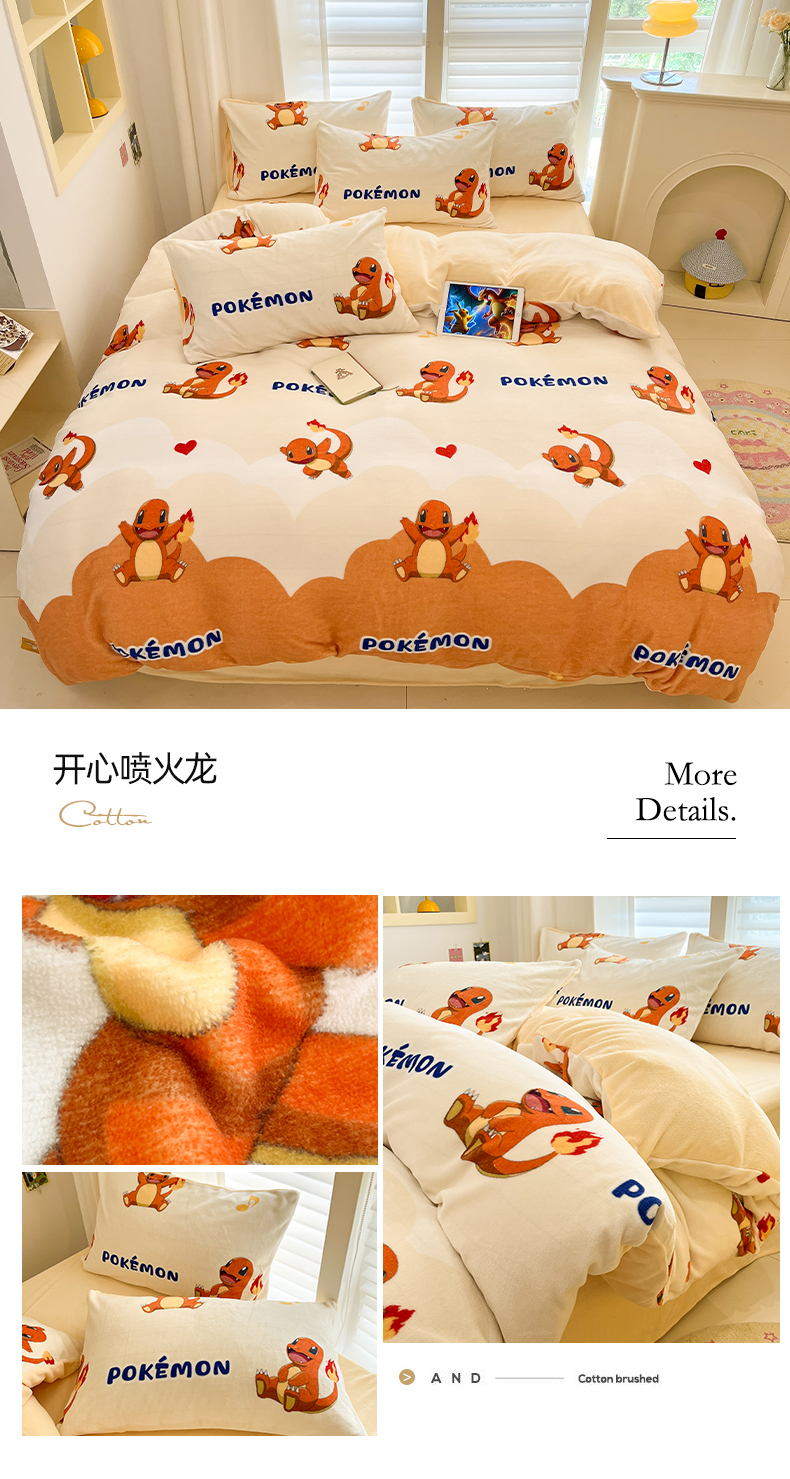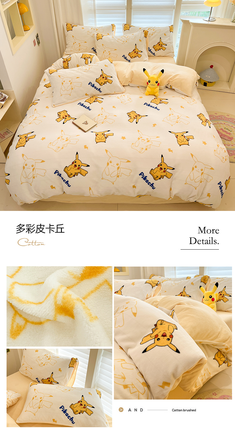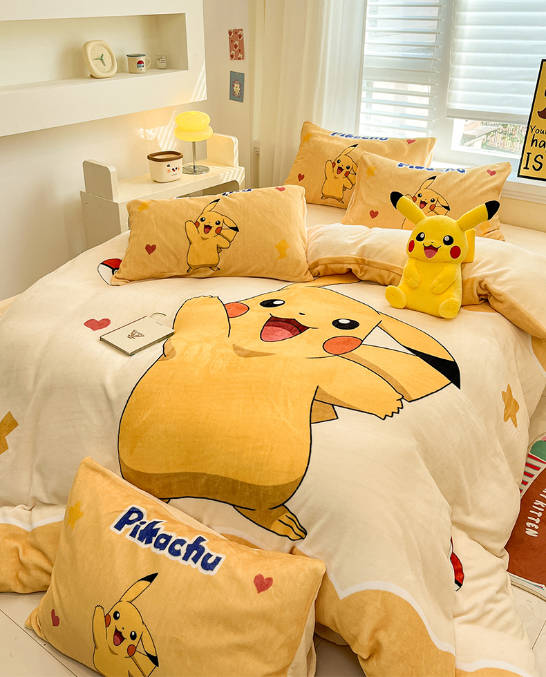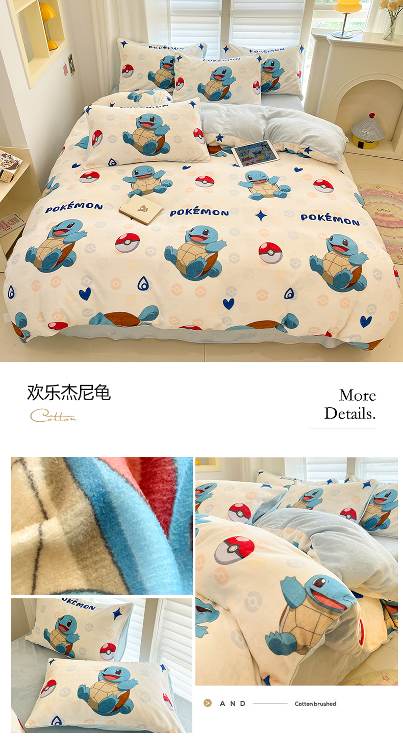 当前位置: 91家纺网 > 商品网购 > 床品套件 > 四件套 > 牛奶绒四件套 > 金爱家 2025新品大版卡通平网数码印花加厚高克重牛奶绒皮卡丘系列四件套 绒小版-欢乐杰尼龟