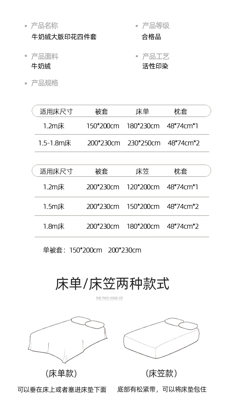 【床笠款】1.8四件套-被套200x230 | ¥120.00 |
