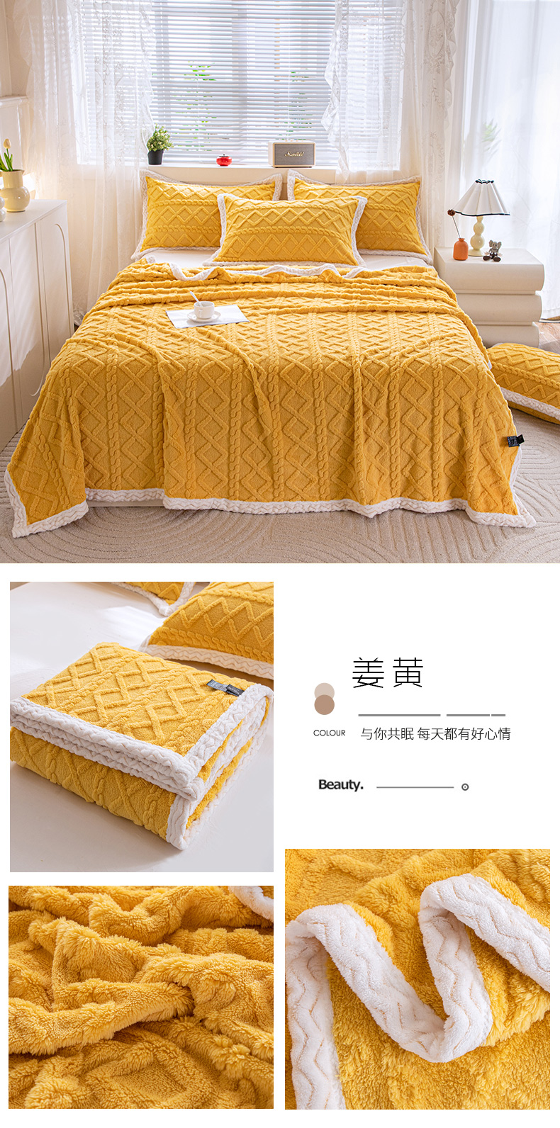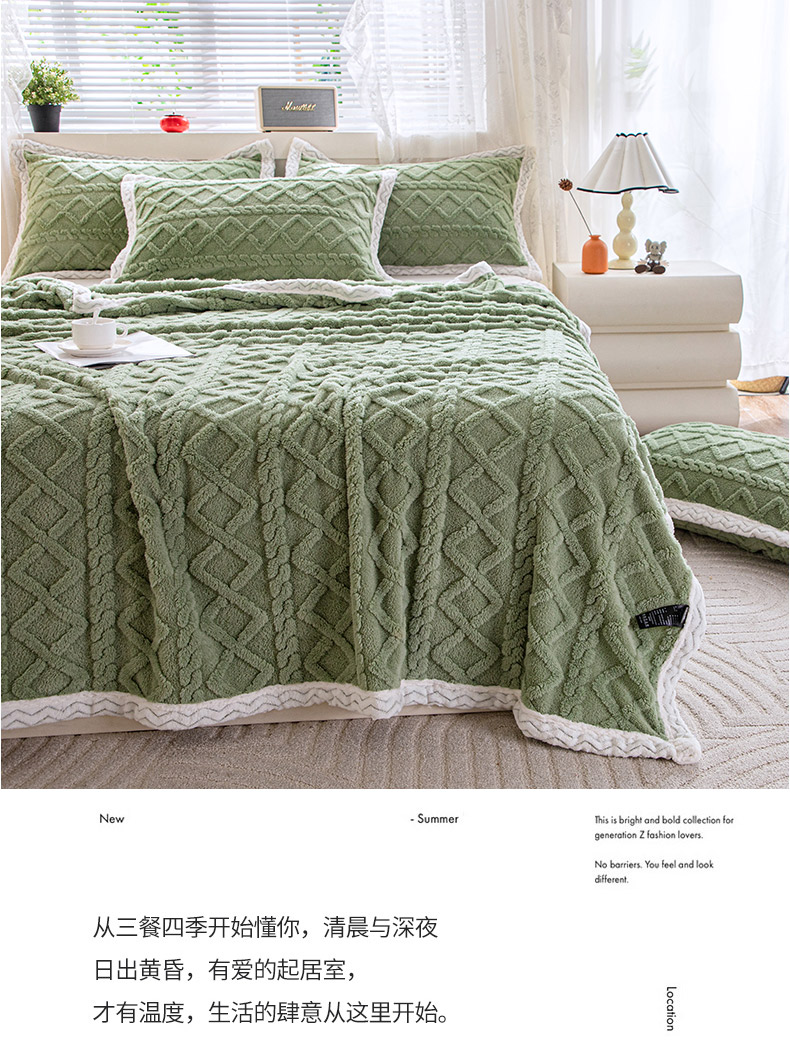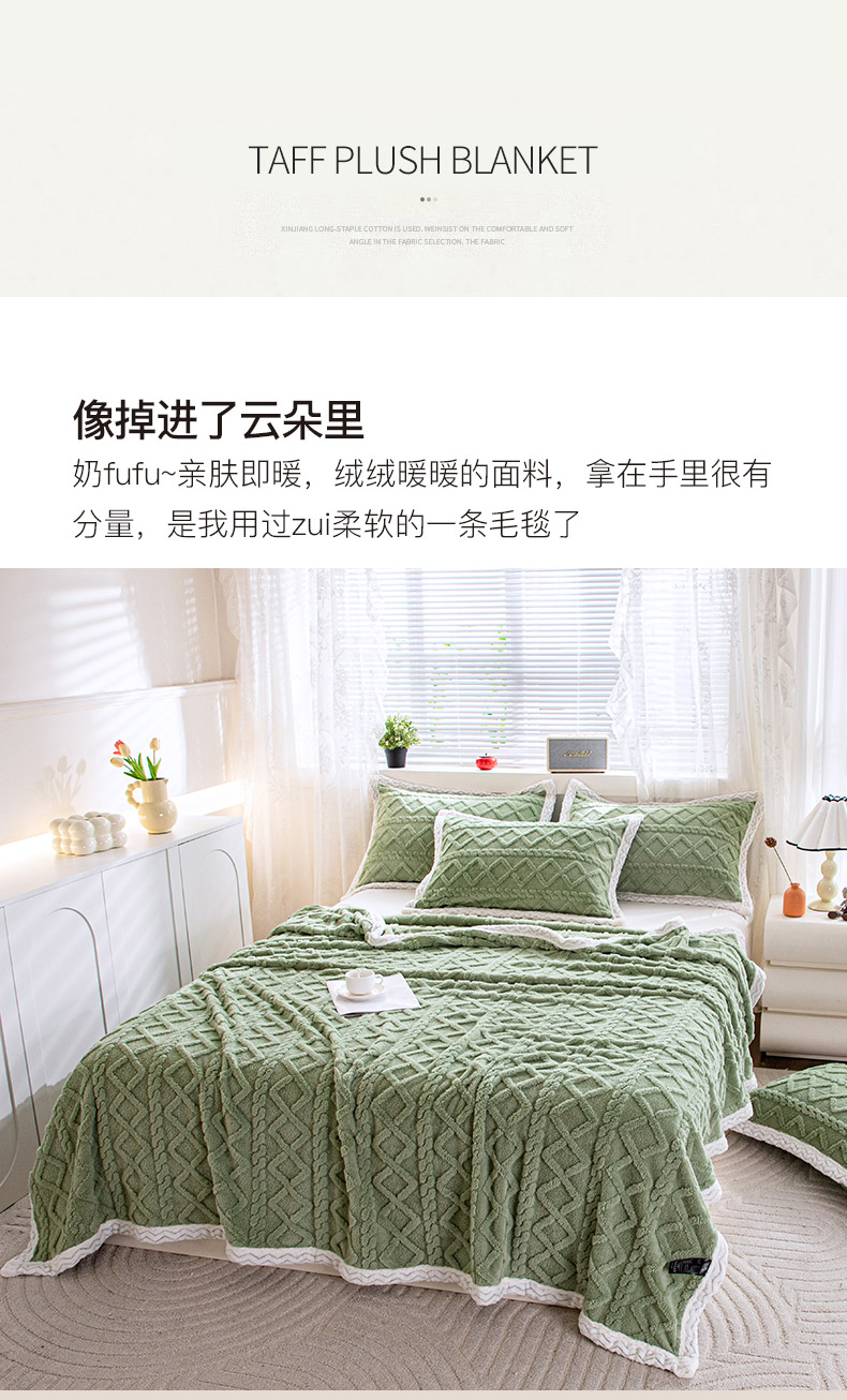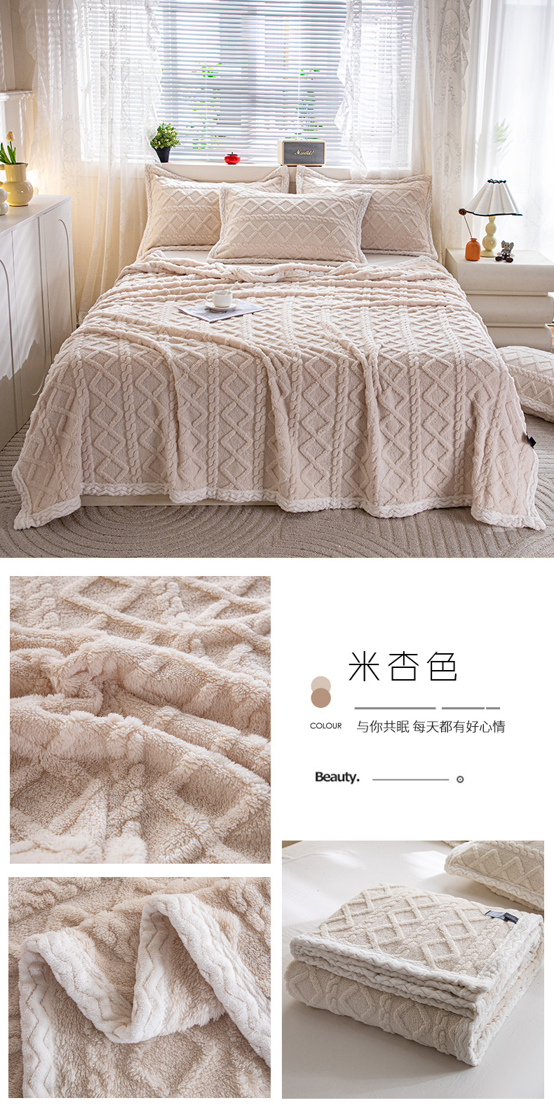 商品名称:栩裕纺织 2025新款双面塔芙绒毛毯家用毯子包边款 塔夫绒-米杏色