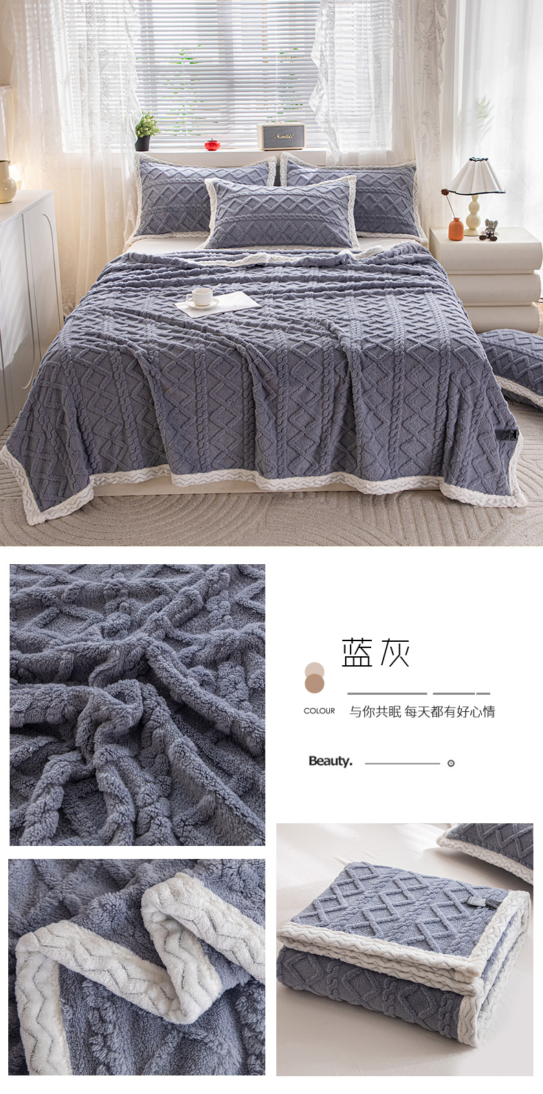 (总)栩裕纺织 2025新款宝宝绒夹棉单床盖-大蕾丝花边款,宝蓝,橙色,粉色,湖蓝,灰色,卡其色,皮红,中国红,紫色