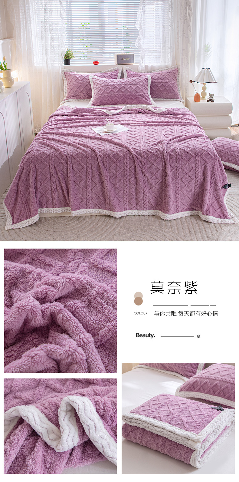 (总)栩裕纺织 2025新款宝宝绒夹棉单床盖-直边款,橙色,蓝色,粉色,紫色,湖蓝,中国红,灰色,皮红,卡其色