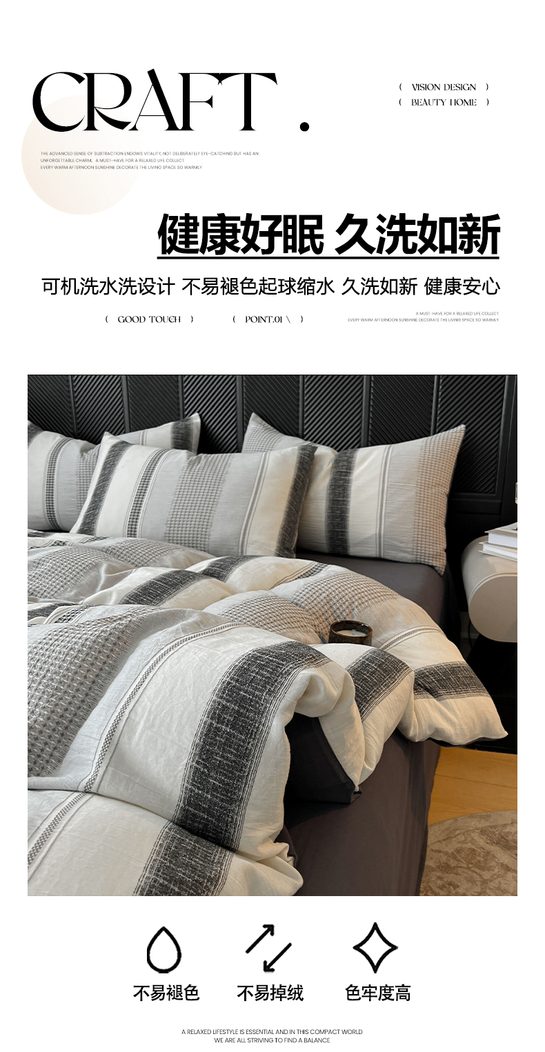 (总)莱茵家居 2026新款A类全棉色织日系芝麻锻纹套件-暮云系列,暮云-白灰,暮云-灰白,暮云-棕咖,暮云-米白