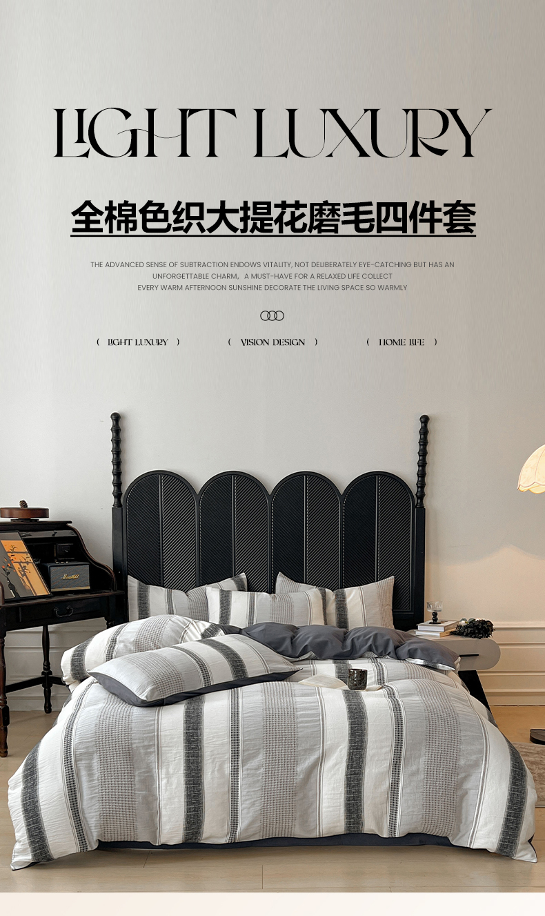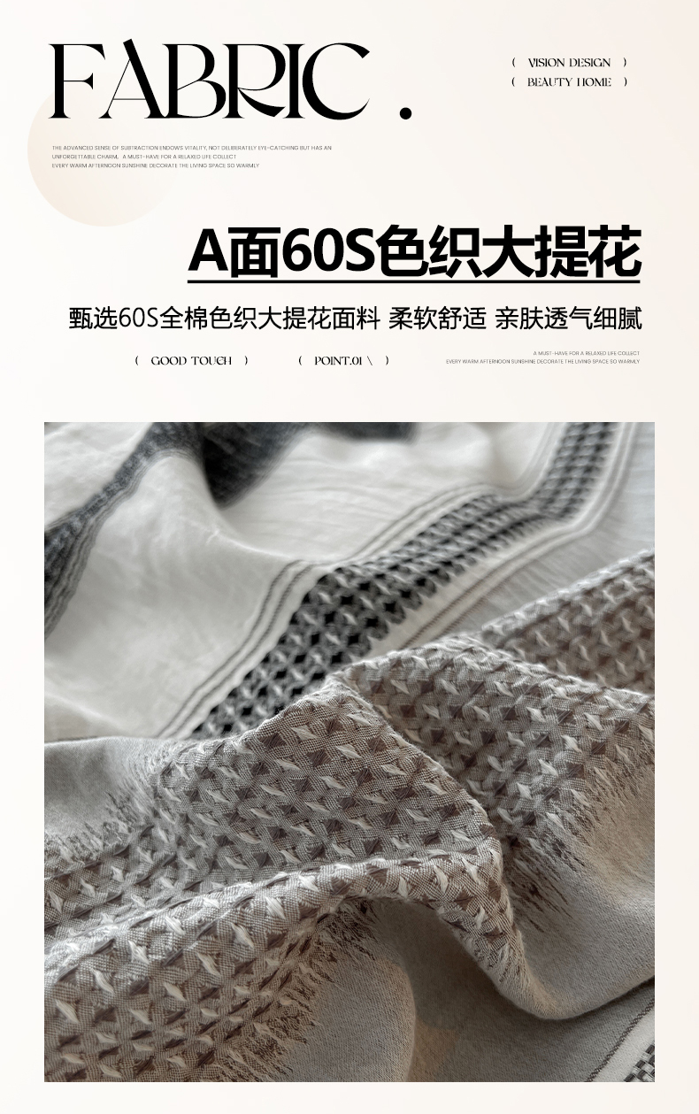 (总)莱茵家居 2026新款A类60支全棉纯棉复古侘寂风色织提花四件套-墨隙系列,斑斓-深灰,豹纹-卡其,豹纹-深灰,墨隙-卡其,墨隙-深灰