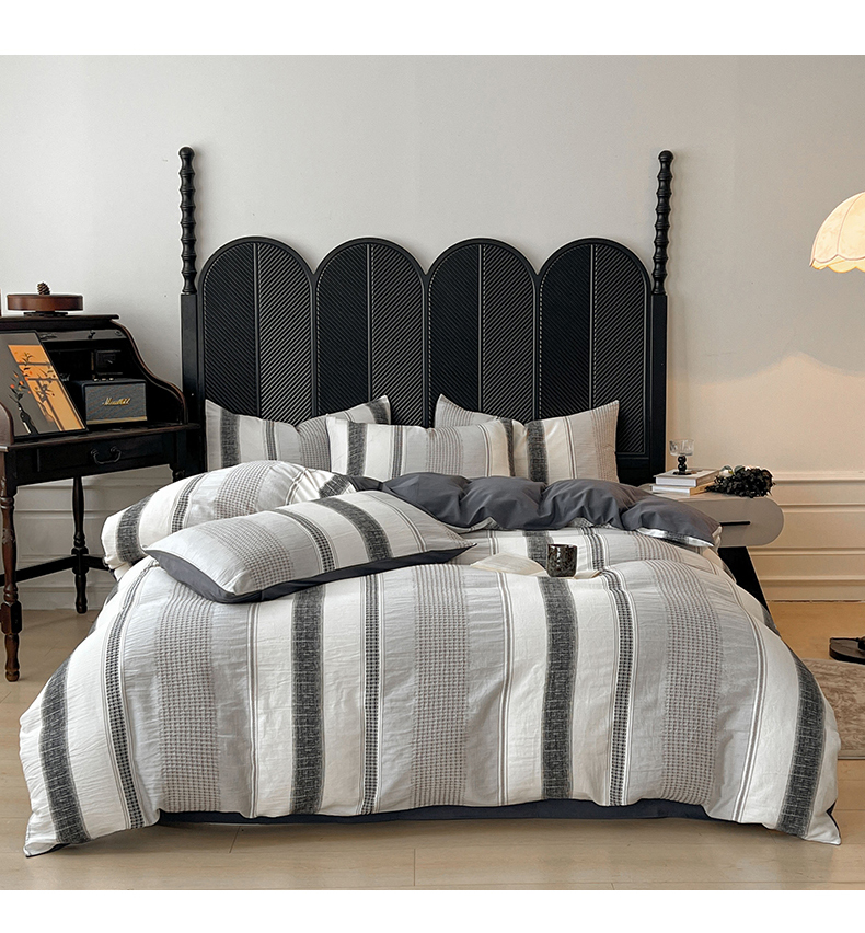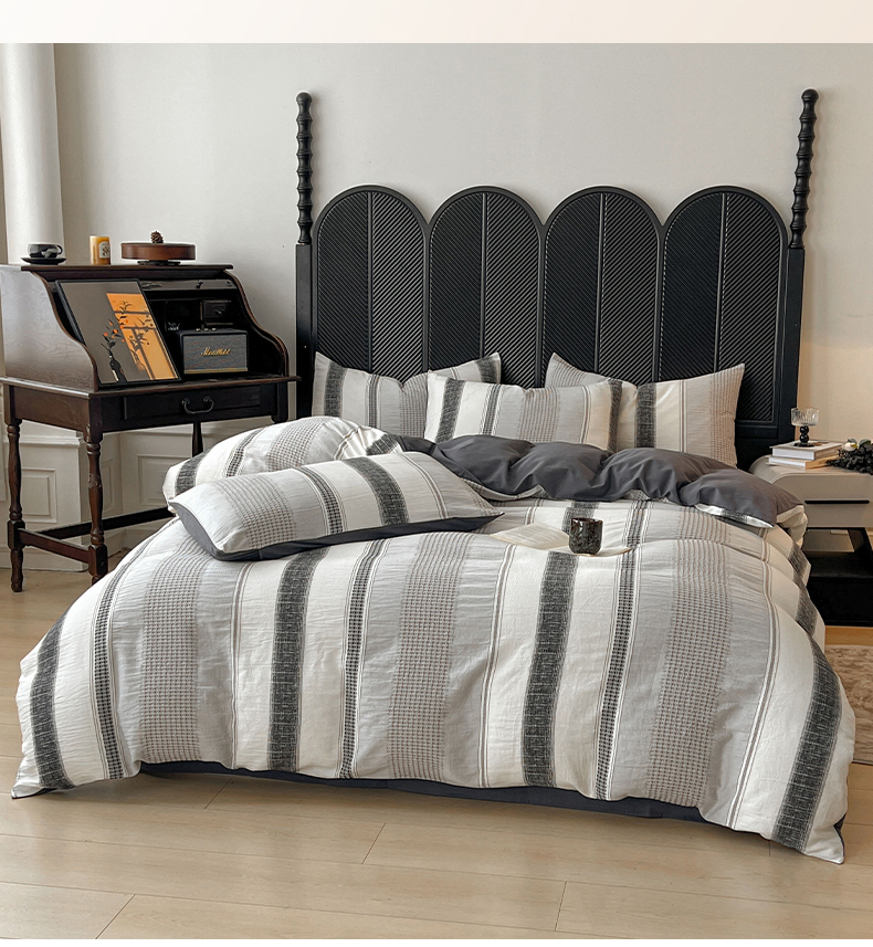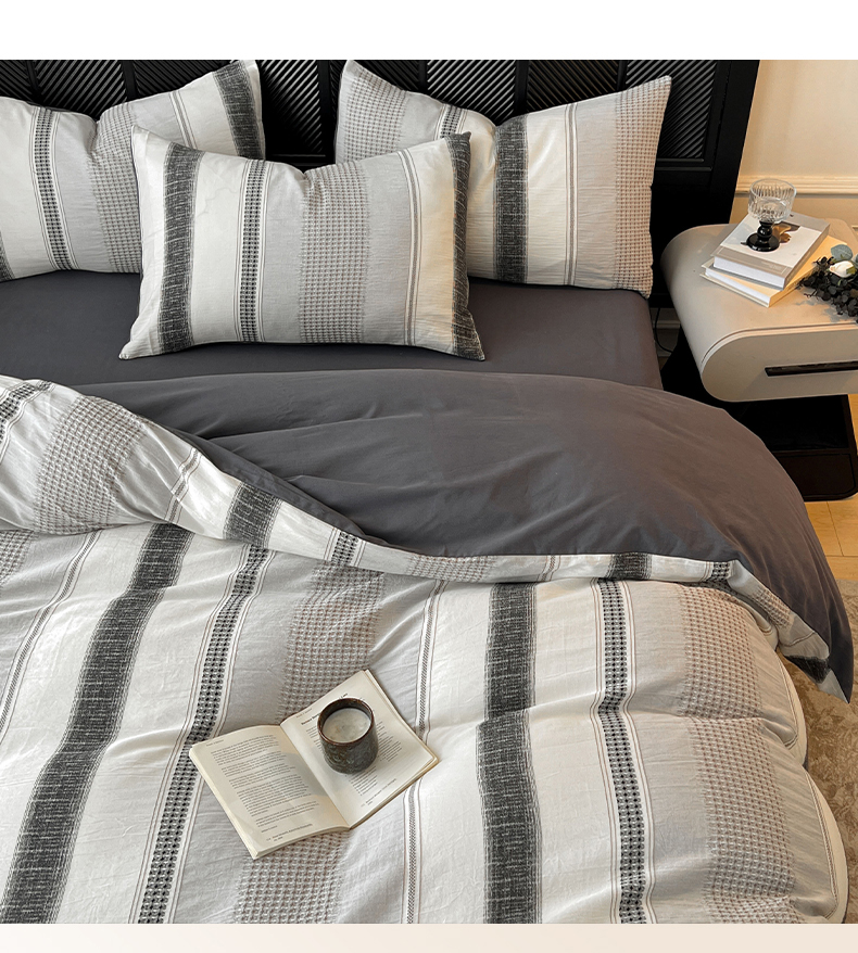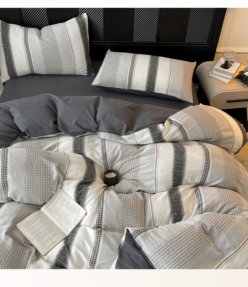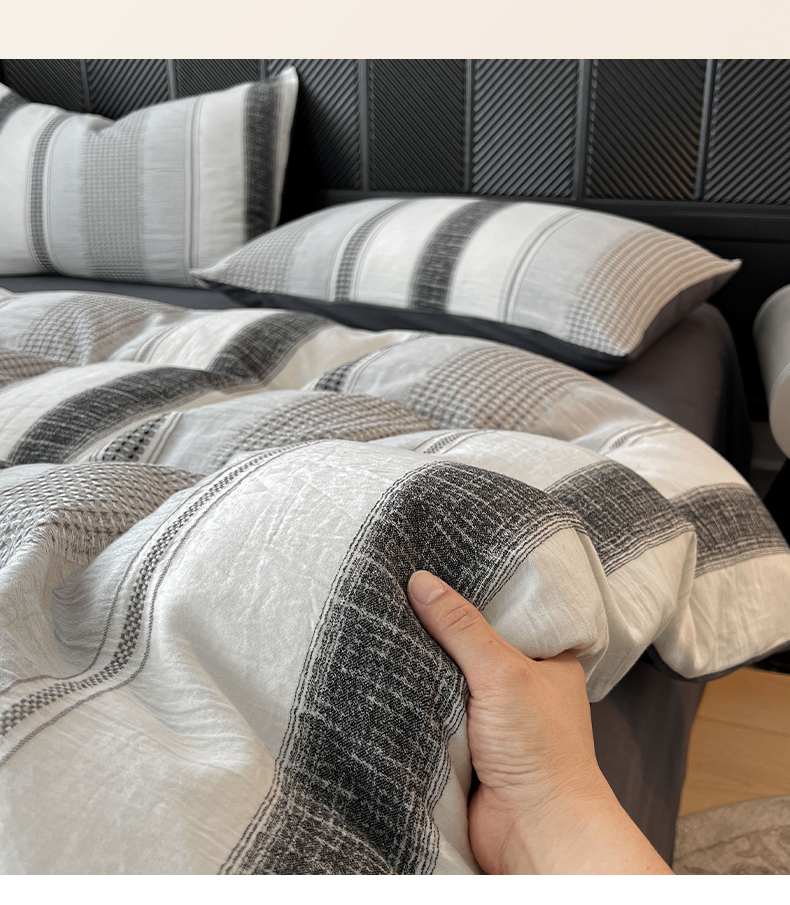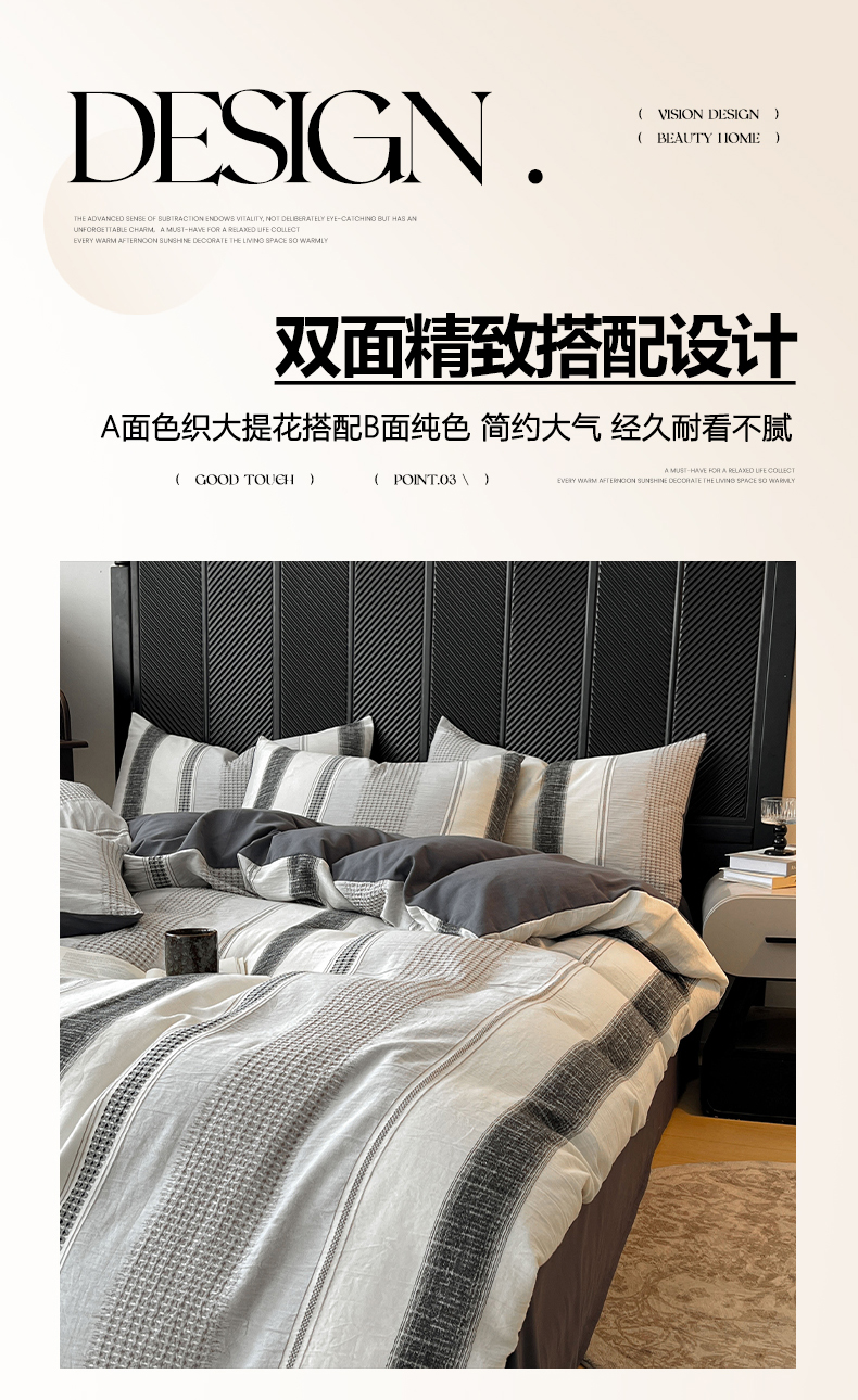 莱茵家居 2025新款A类简约60S色织提花磨毛四件套 丝序-深霜灰