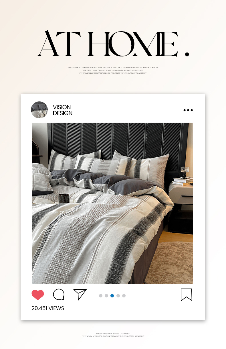 商品名称:莱茵家居 2025新款A类简约60S色织提花磨毛四件套 丝序-深霜灰