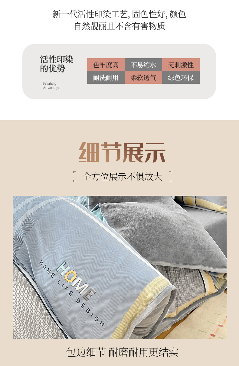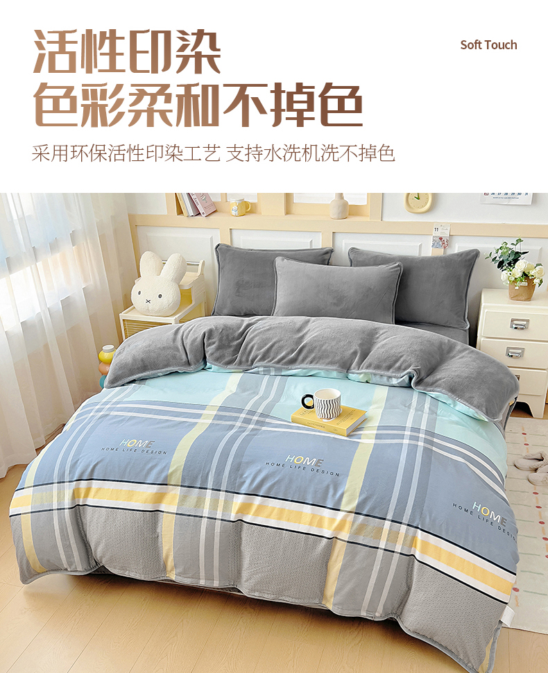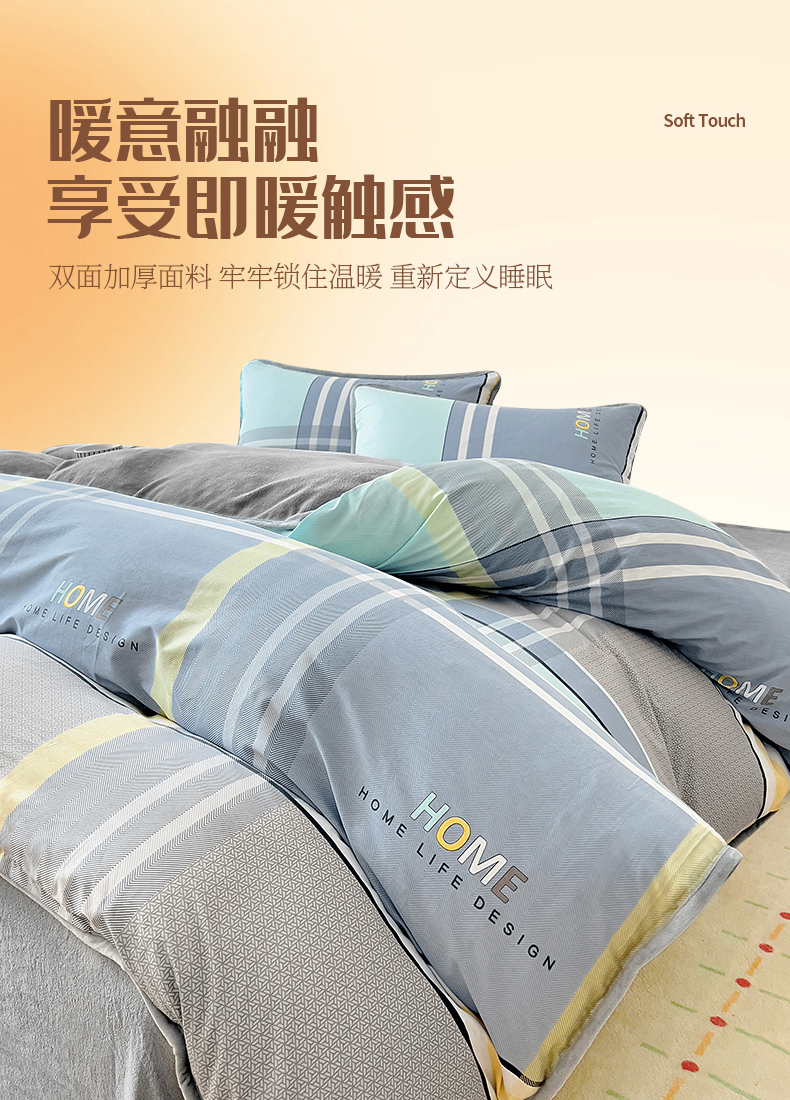 琪琪阁 2023新款A棉B绒棉加绒牛奶绒四件套单被套 宁静生活,宁静生活