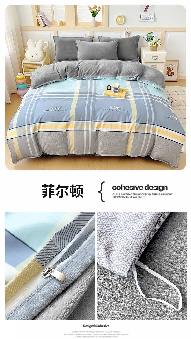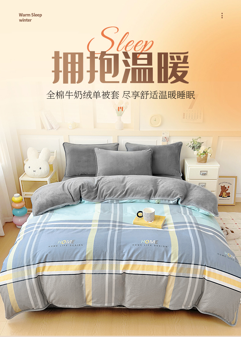 琪琪阁家纺 2025秋冬新款全棉加牛奶绒单被套棉加绒被套菲尔顿