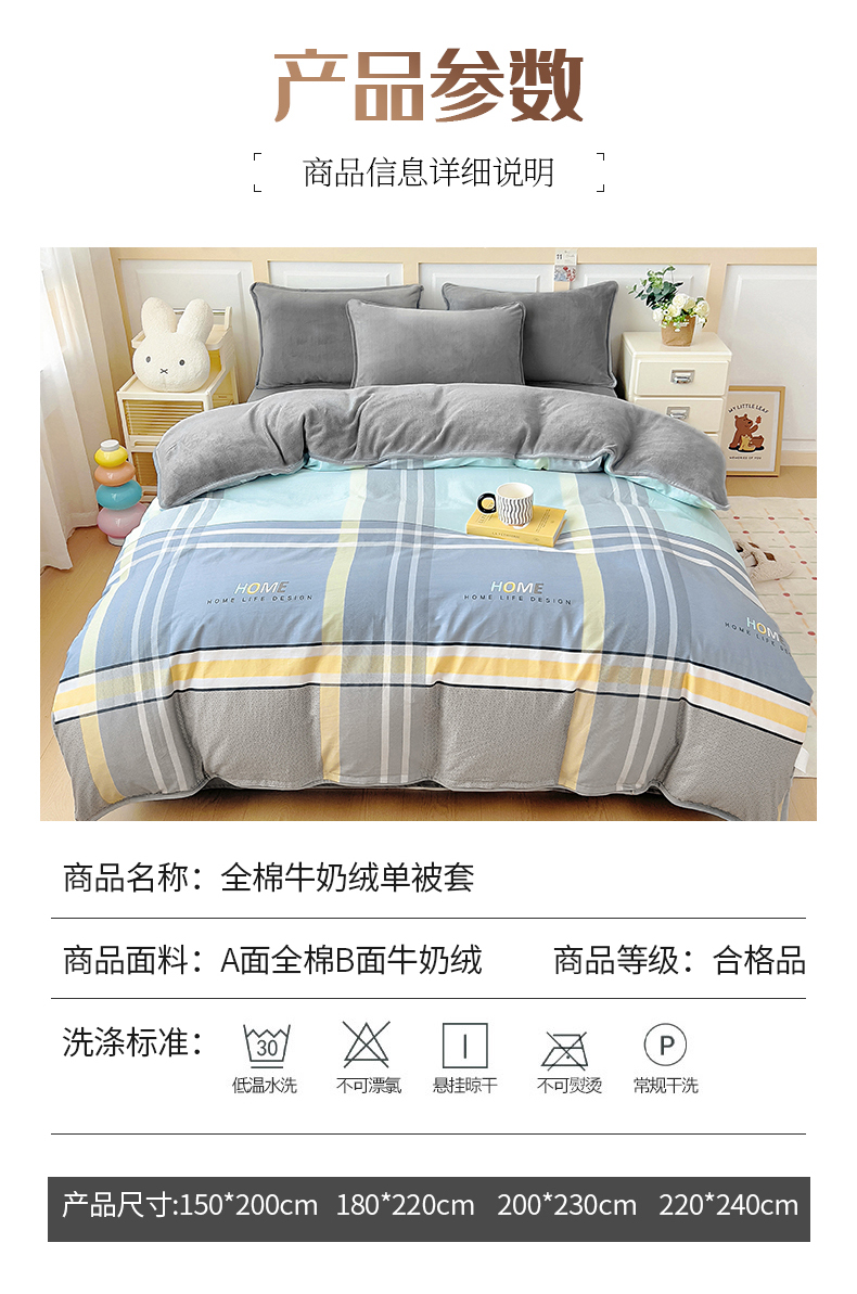 商品名称:琪琪阁家纺 2025秋冬新款全棉加牛奶绒单被套棉加绒被套菲尔顿