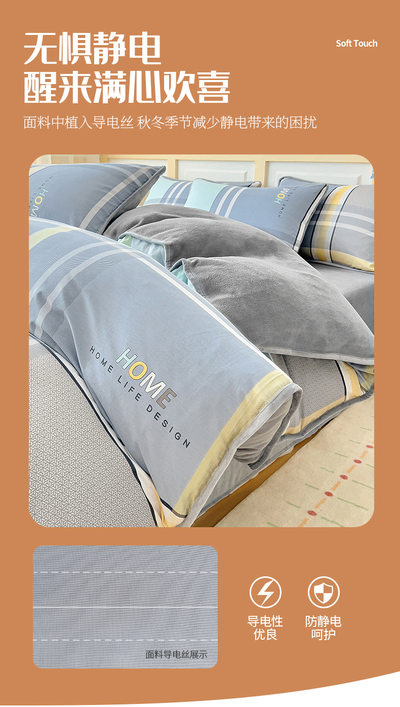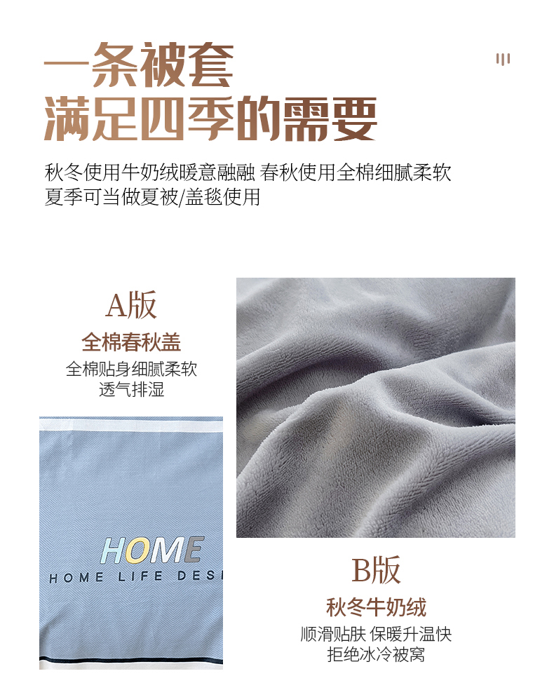 琪琪阁 2023新款A棉B绒棉加绒牛奶绒四件套单被套 简约人生,简约人生