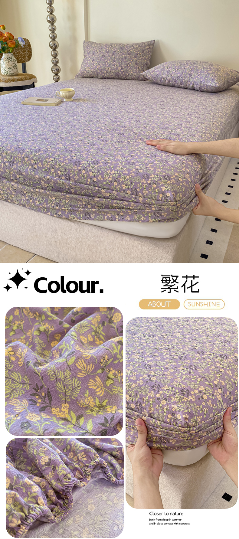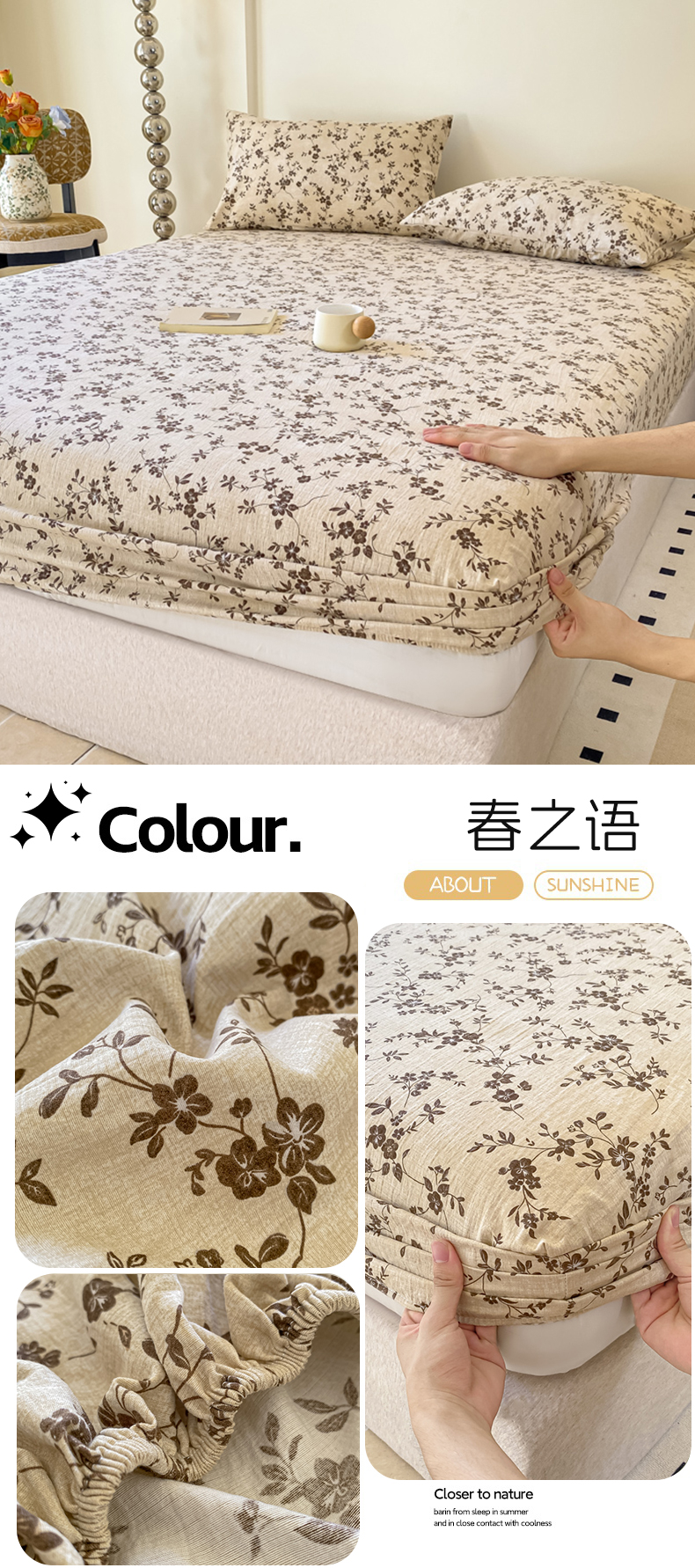 一比一家纺 2026新款加厚原麻皱皱纱床笠单品床笠单件单床笠 南枝