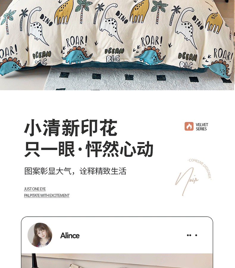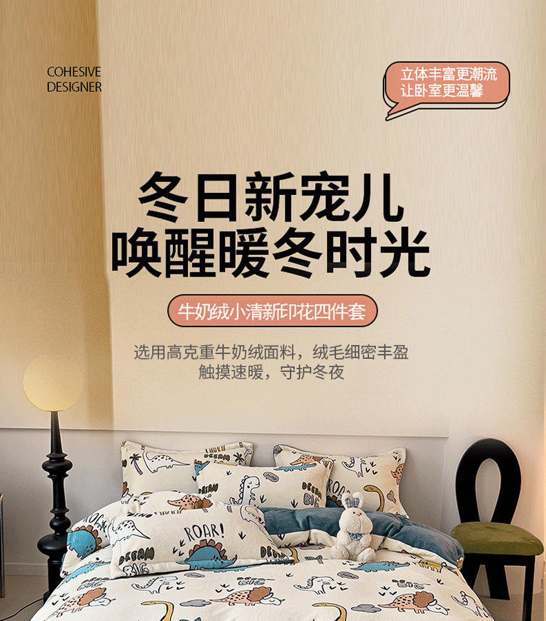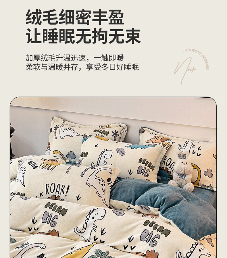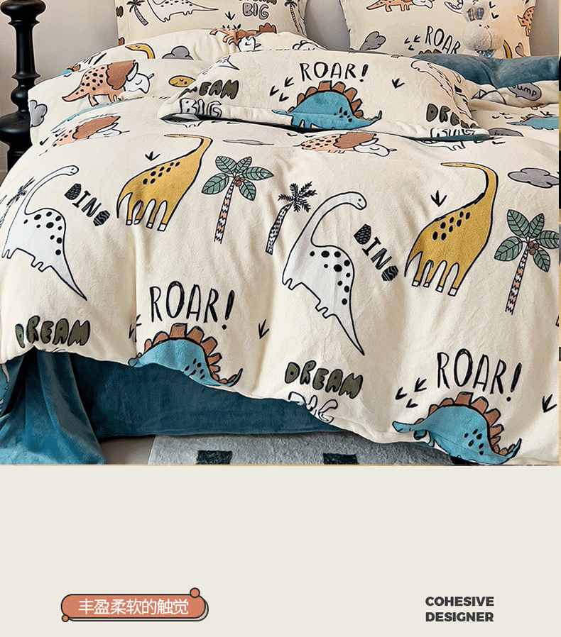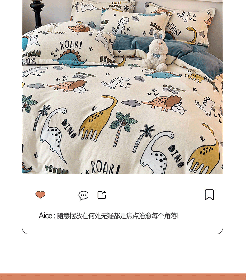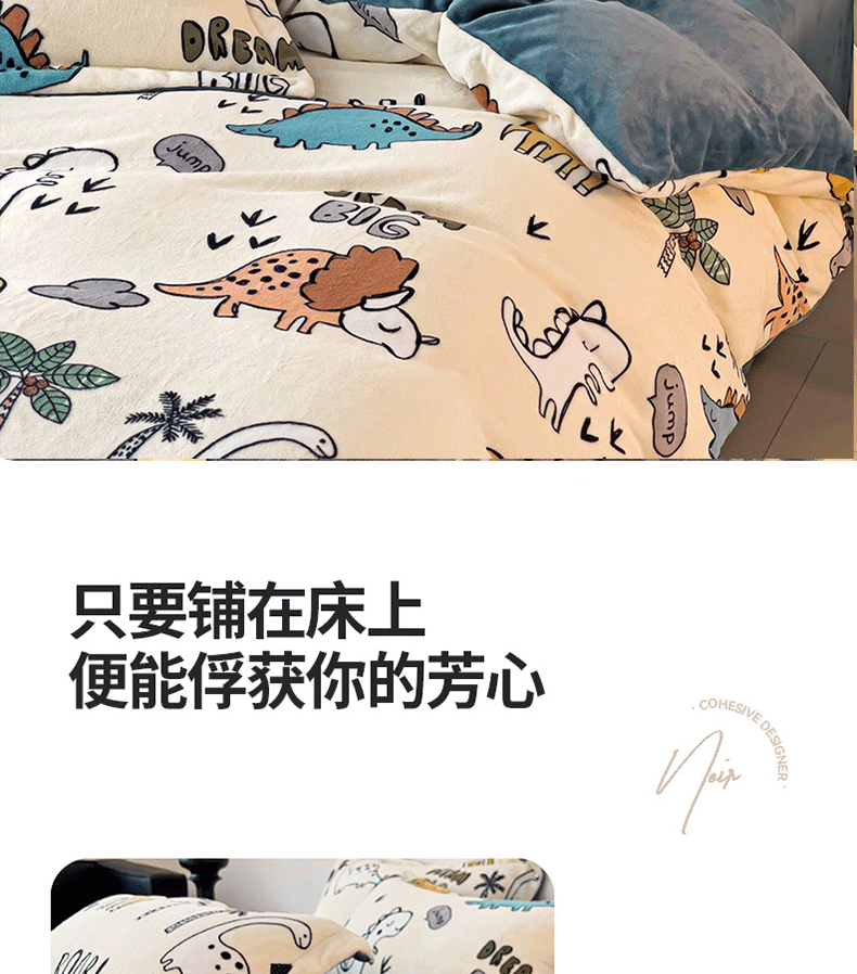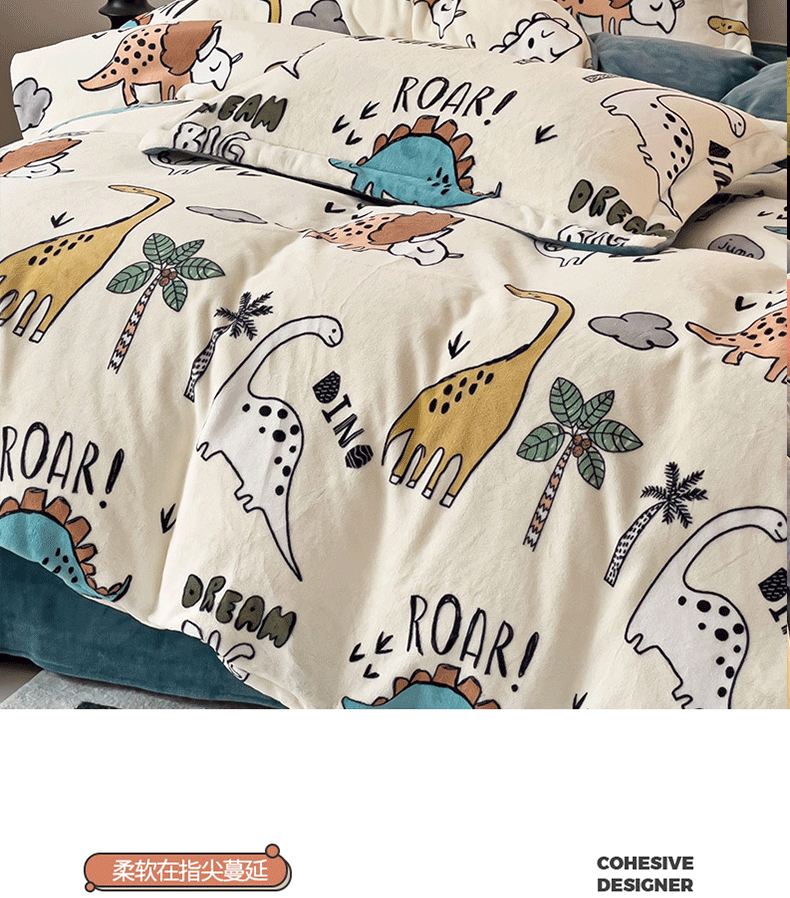 当前位置: 91家纺网 > 商品网购 > 床品套件 > 四件套 > 牛奶绒四件套 > 富馨莱 2025新款牛奶绒印花四件套240克面料支持一件定制尺寸 恐龙世界