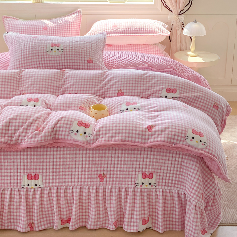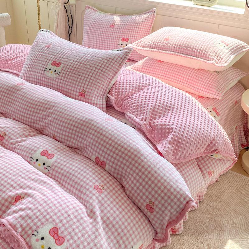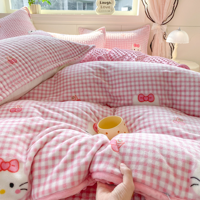 (总)尚美 2025新款毛巾绣牛奶绒床盖加棉加厚四件套,爆莓兔,背带熊猫,蛋糕猫,黑皮猫,恐龙,女孩,小粉象