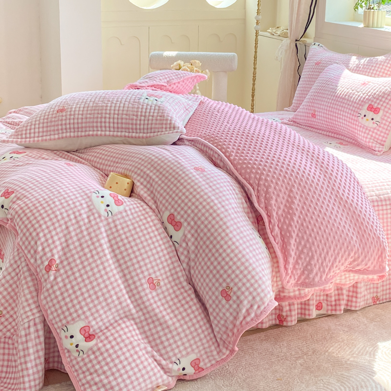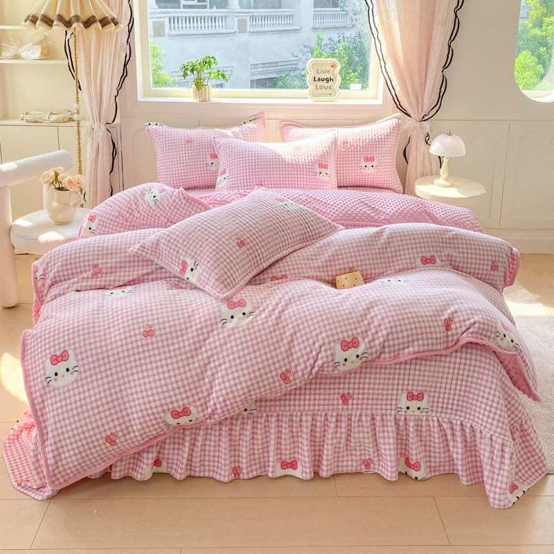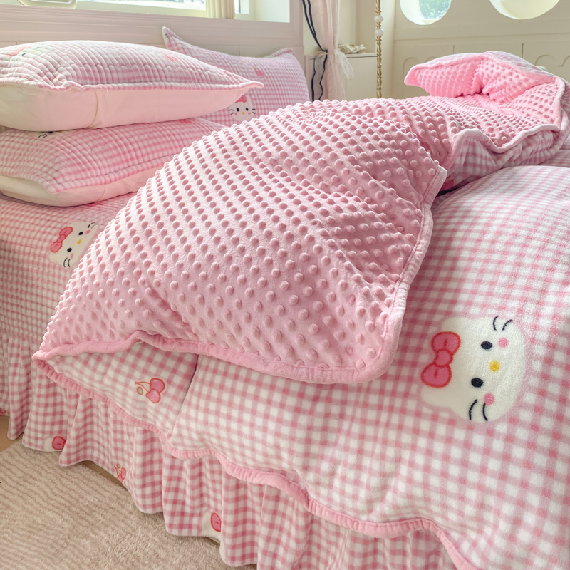 商品名称:尚美 2025新款豆豆绒牛奶绒大花边床盖四件套(床盖花边随机) 凯迪猫粉