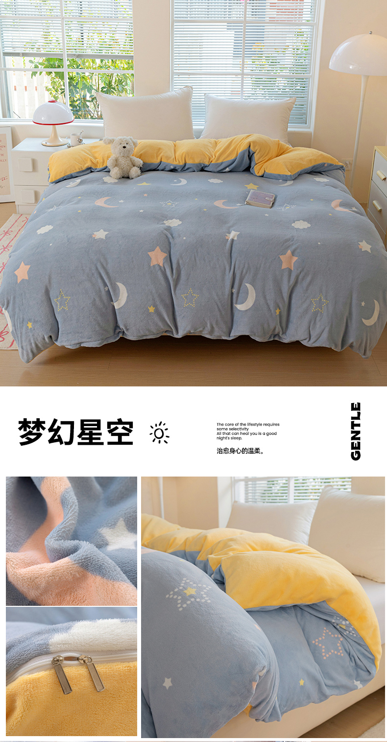 • 91家纺网 家纺一手货源 找家纺 富馨莱 2025新款牛奶绒印花单件被套240克面料支持一件定制尺寸 心星相印