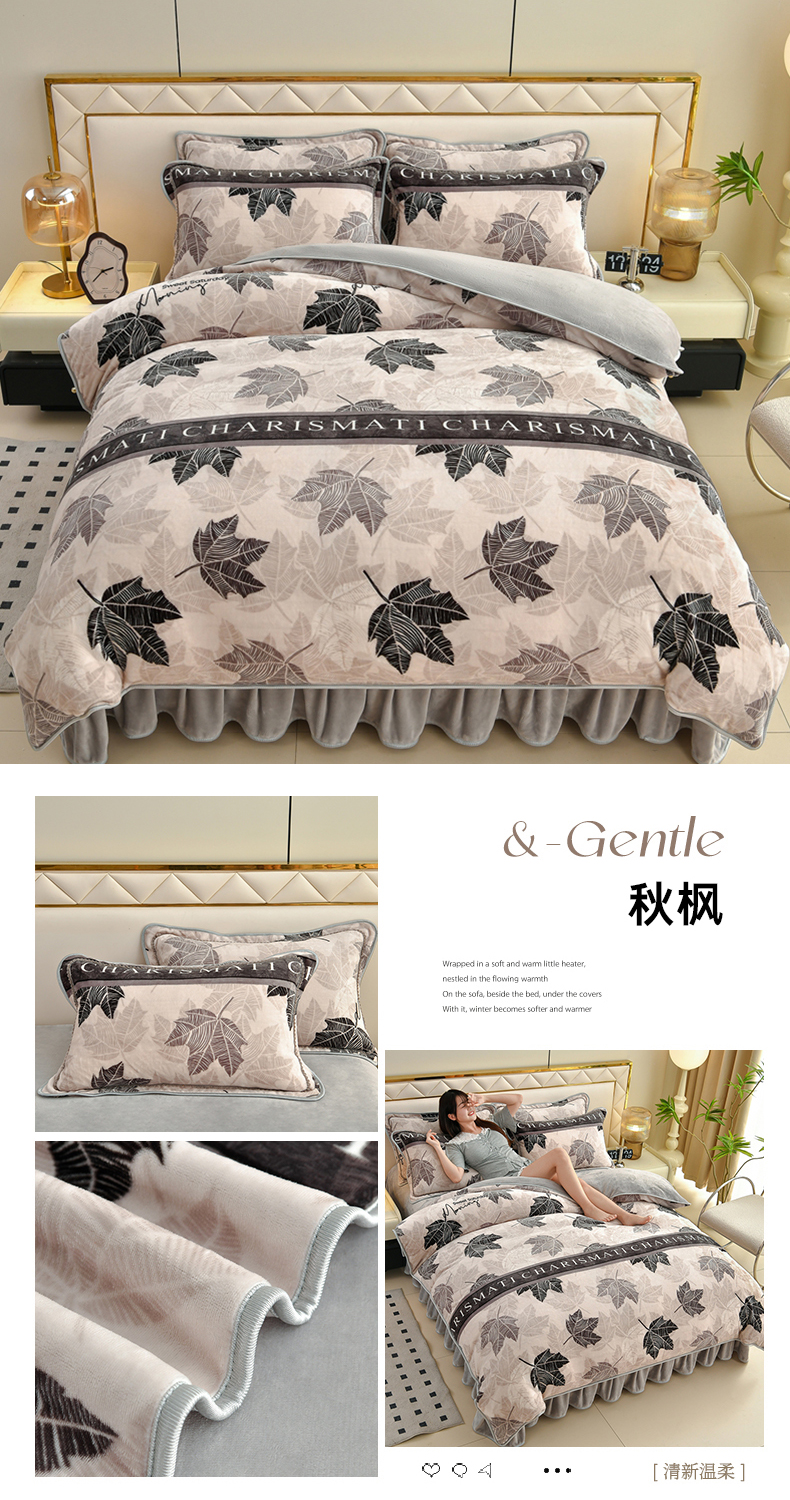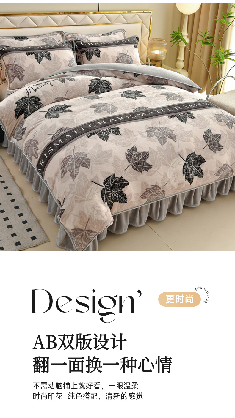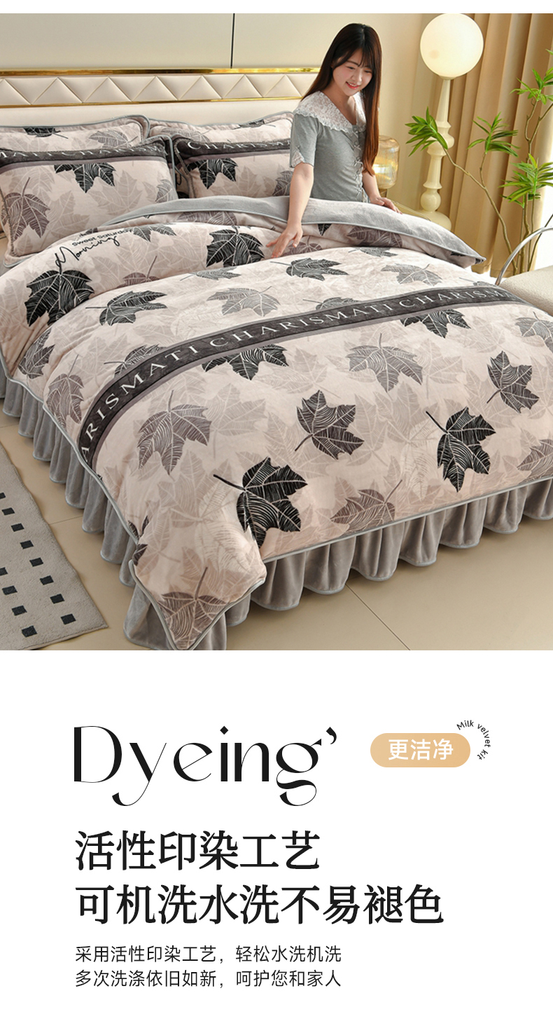 商品名称:赫本 2025新品8斤爆品牛奶绒四件套床裙款金雕绒法莱绒四套件 秋枫