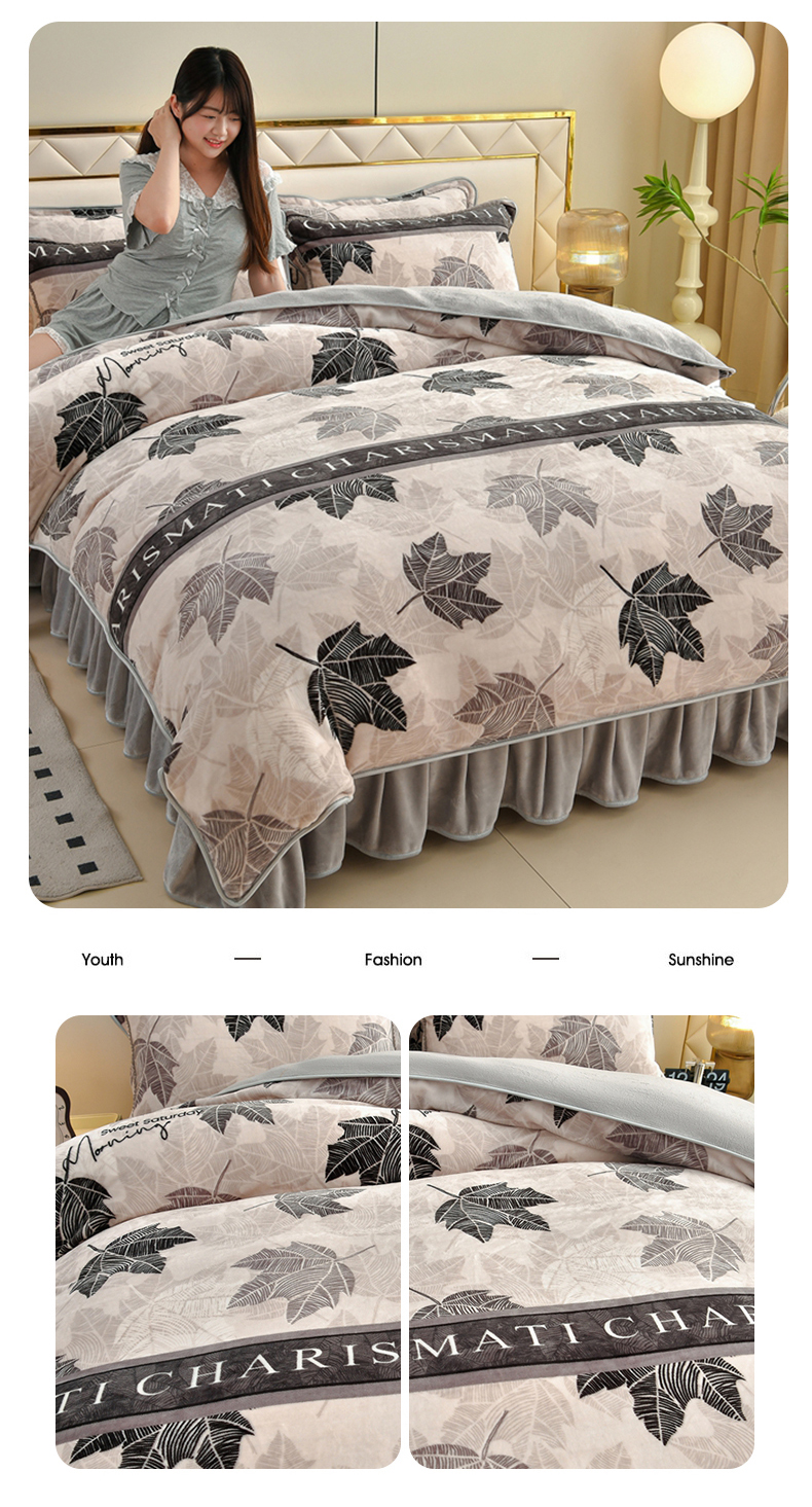 赫本 2025新品8斤爆品牛奶绒四件套床裙款金雕绒法莱绒四套件 秋枫