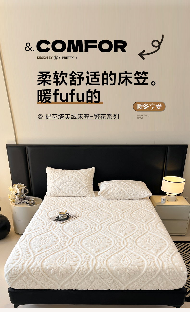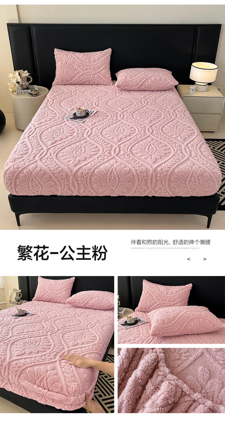 (总)欧邦 2025新款提花暖阳绒单床笠,苍穹蓝,初雪白,海棠粉,慕斯灰,青瓷绿,檀木咖