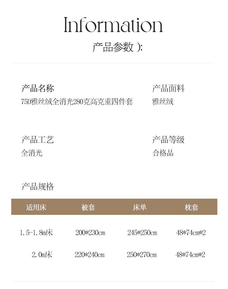 商品名称:席之家 2025新款75D高克重雅丝绒全消光A类母婴级280克雅丝绒四件套-皇冠 皇冠-浅驼