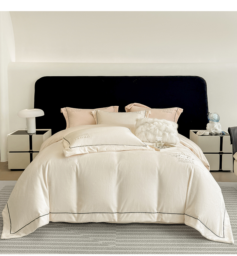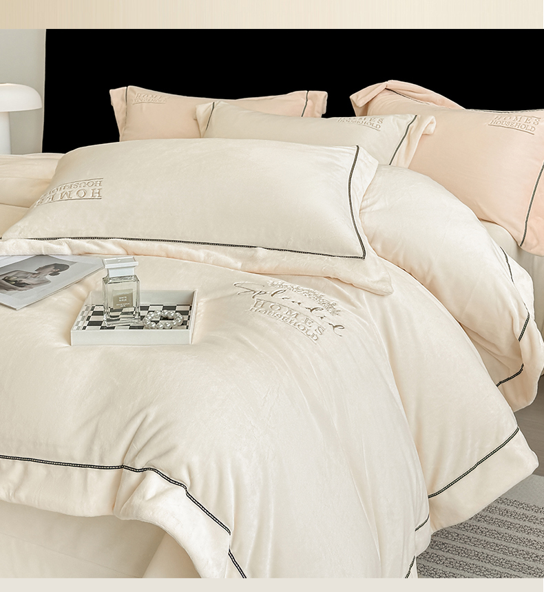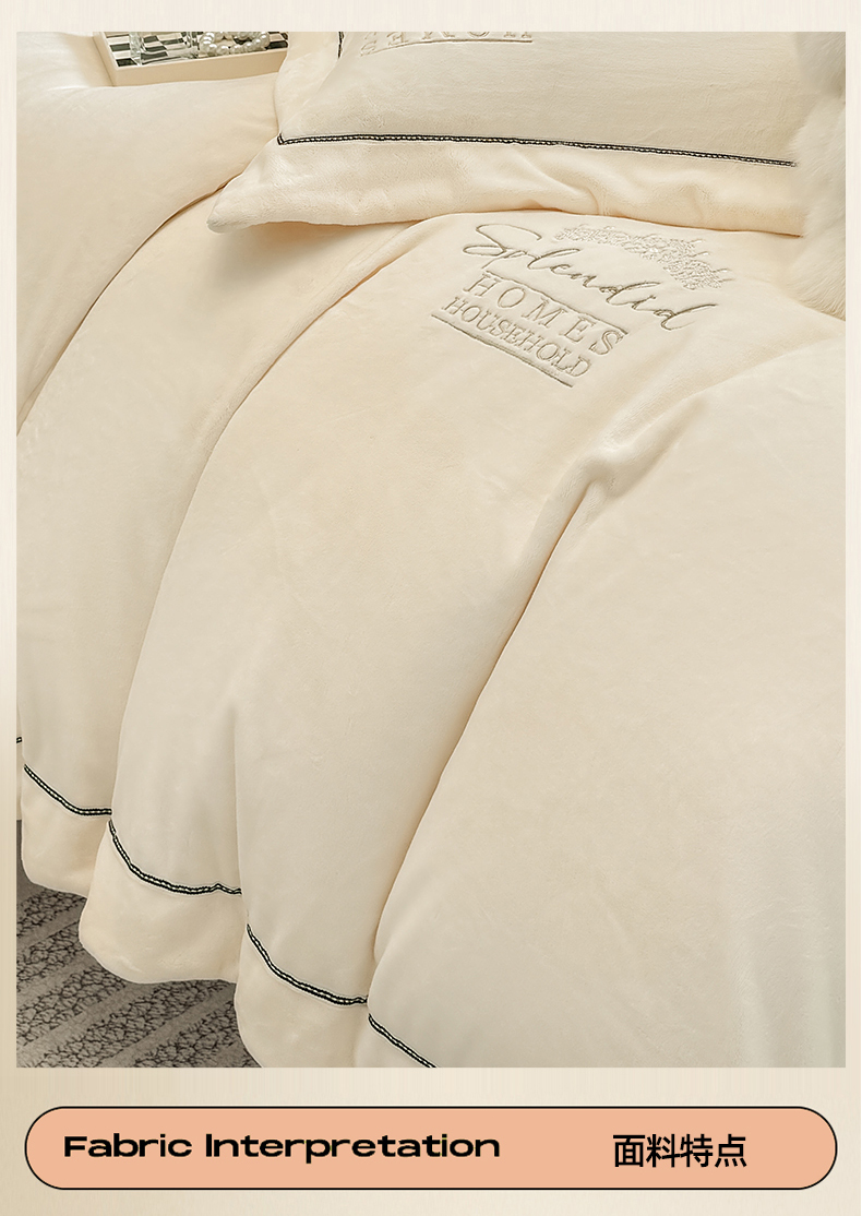 (总)席之家 2025新款刺绣牛奶绒四件套,花语-卡其玉,花语-奶咖,花语-青柠绿,花语-少女粉