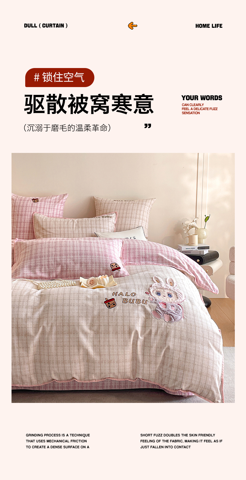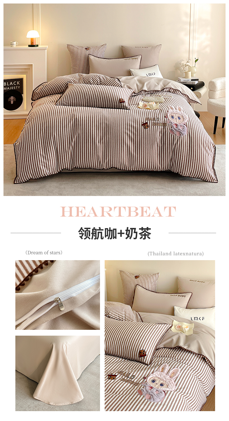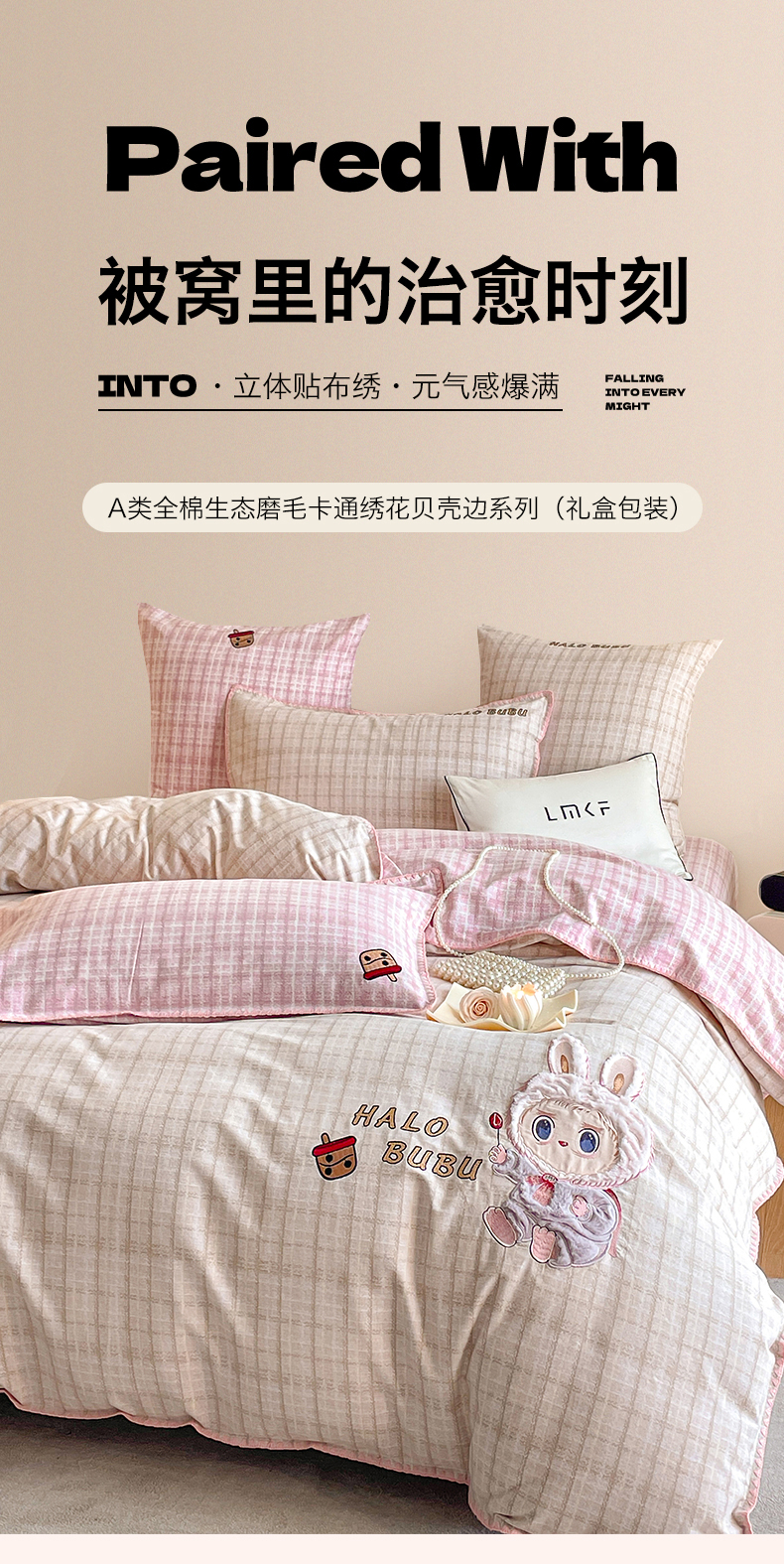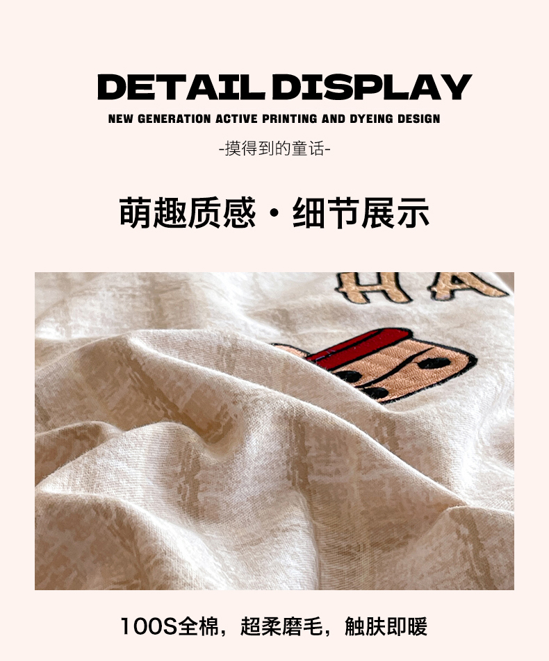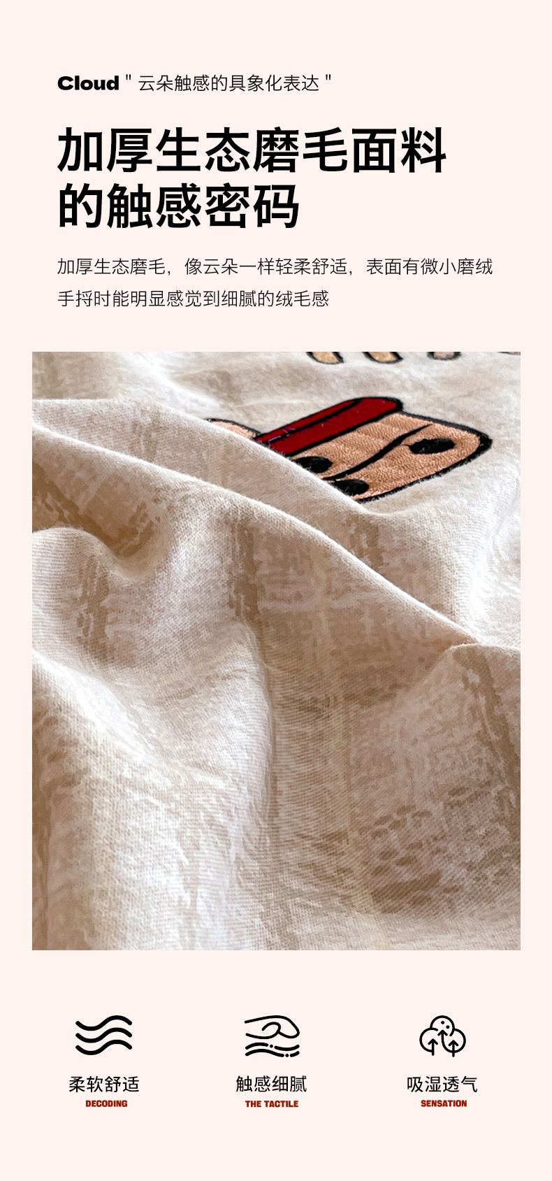 商品名称:蓝米卡夫 2025秋冬-A类全棉生态磨毛卡通绣花贝壳边系列(礼盒包装)【如需买家秀联系15996631948】 3号香奶茶-香奶粉