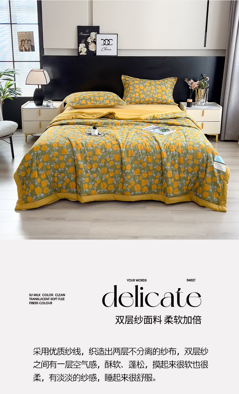 商品名称:梵克保罗 2025新款10A抗菌双层纱印花夏被系列 郁金香