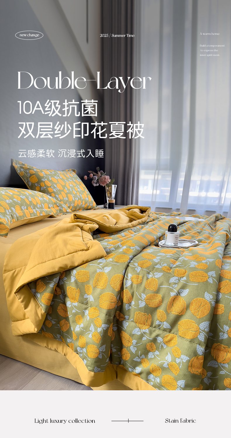 梵克保罗 2025新款10A抗菌双层纱印花夏被系列 郁金香