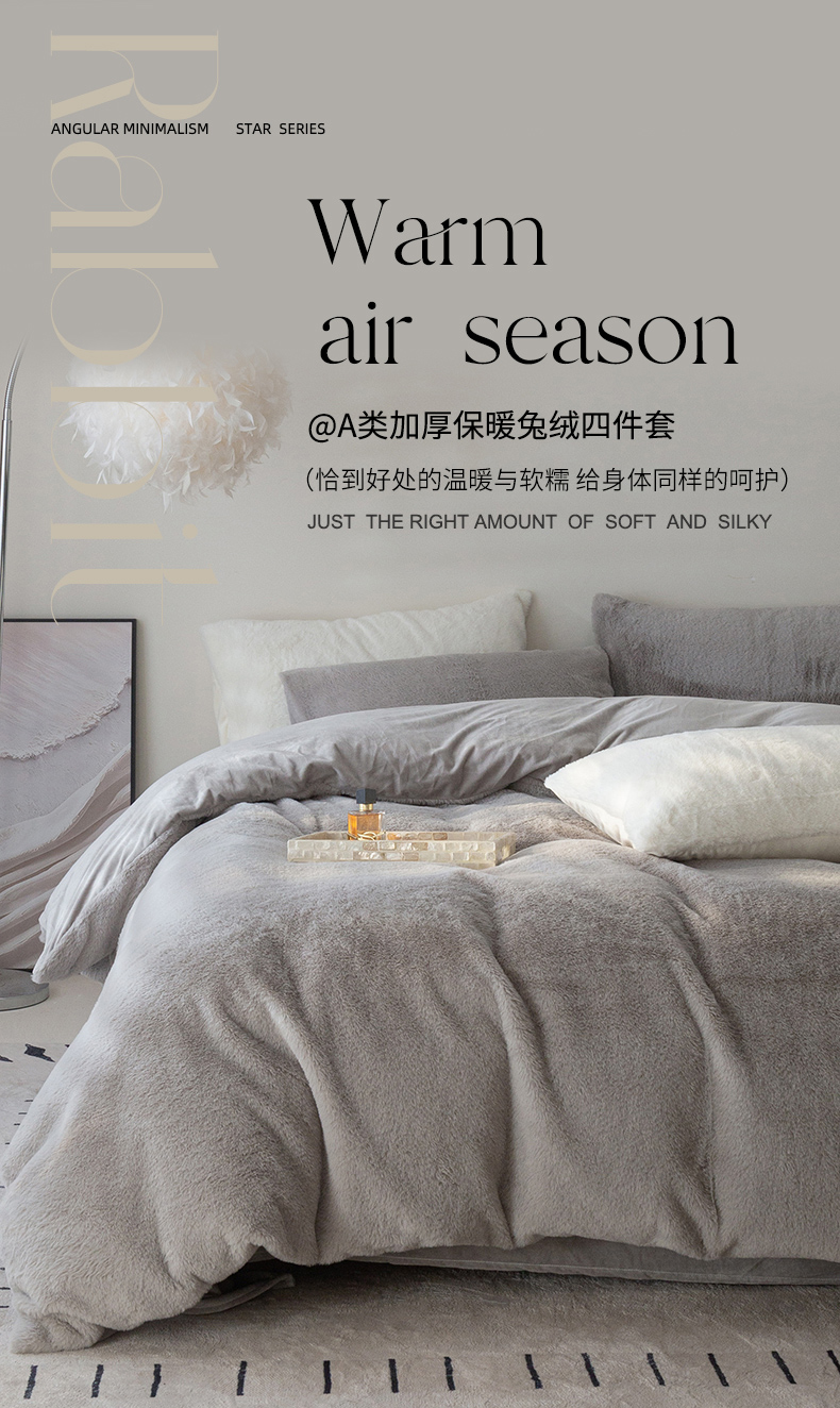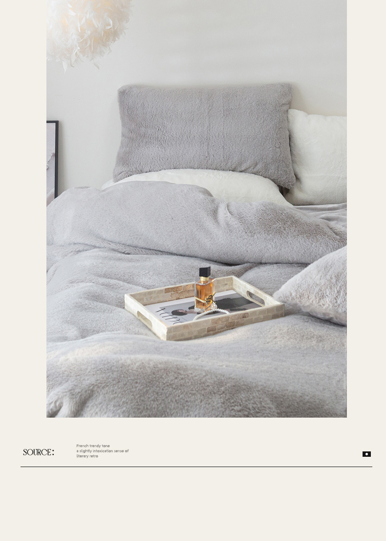 当前位置: 91家纺网 > 商品网购 > 床品套件 > 四件套 > 其它四件套 > ONE TWO ONE 121 2025新款A类加厚兔毛绒纯色四件套-安娜 安娜-灰咖