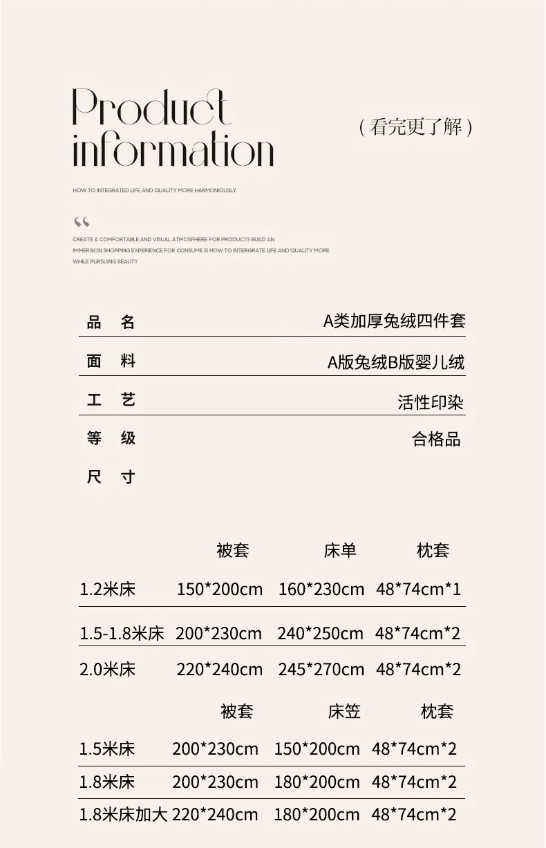 【床笠款】1.8四件套-被套220x240 | ¥160.00 |