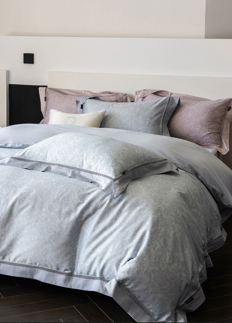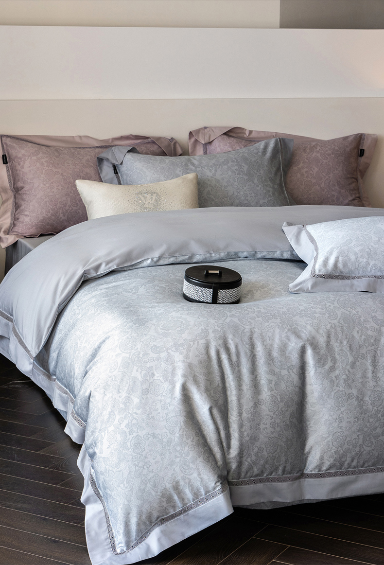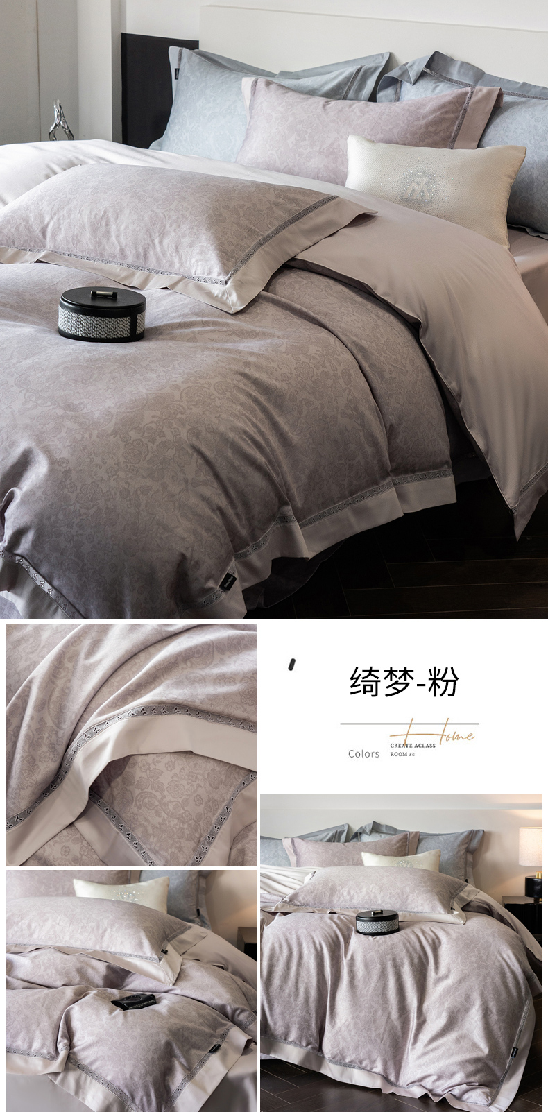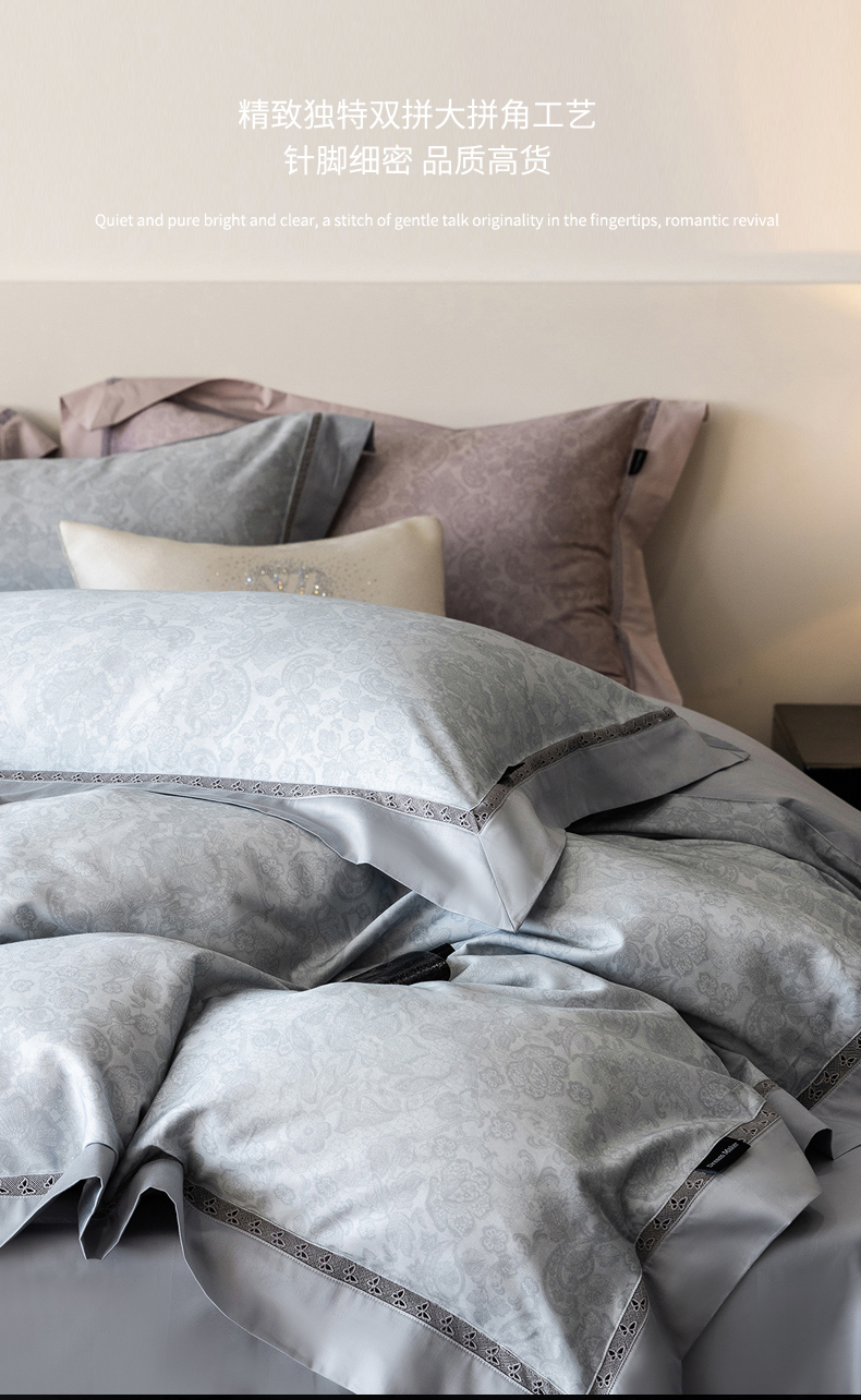 (总)ONE TWO ONE 1212025新款100S长绒棉纯棉活性印染提花四件套雪落绒花风格二【为了各位老板们都有利润空间,平台控价券后不得低于228/318/338元,感谢您的配合与支持!】,雪落绒花-灰,雪落绒花-烟紫