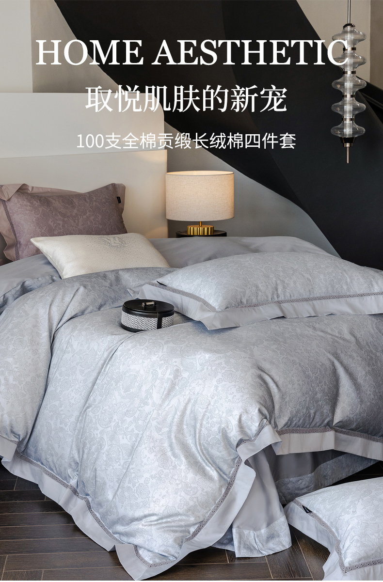 (总)ONE TWO ONE 121 2025新款高支高密长绒棉贡缎提花四件套-璀璨光影(为了各位老板们都有利润空间,平台控价券后不得低于228/318/338元,感谢您的配合与支持!!),璀璨光影-浅灰,璀璨光影-竹咖