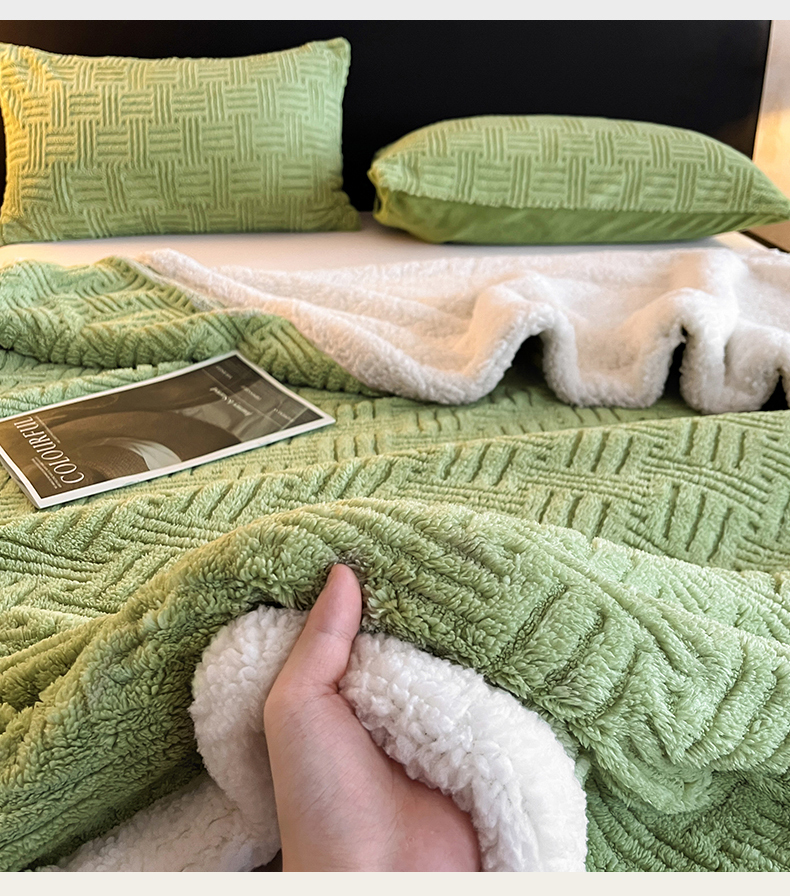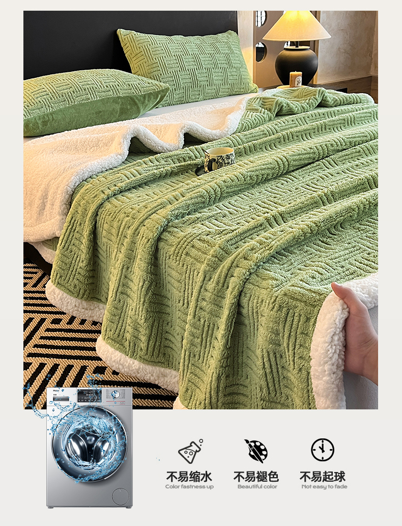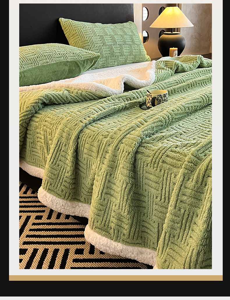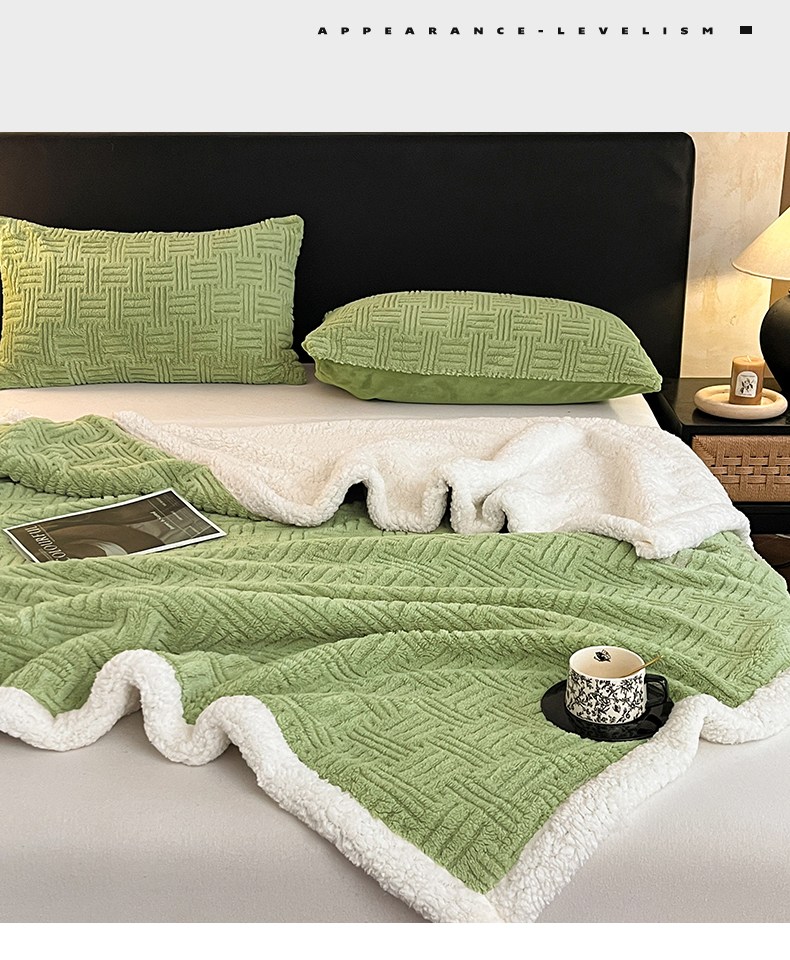 (总)丝幔家纺 2025新款A类羊棉绒原创设计毛毯系列,叶绿,粉色,湖蓝,奶咖,奶昔白,浅灰,天蓝,香槟金,银灰,月光紫