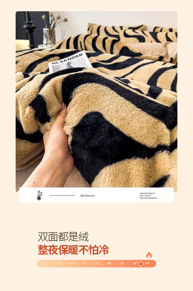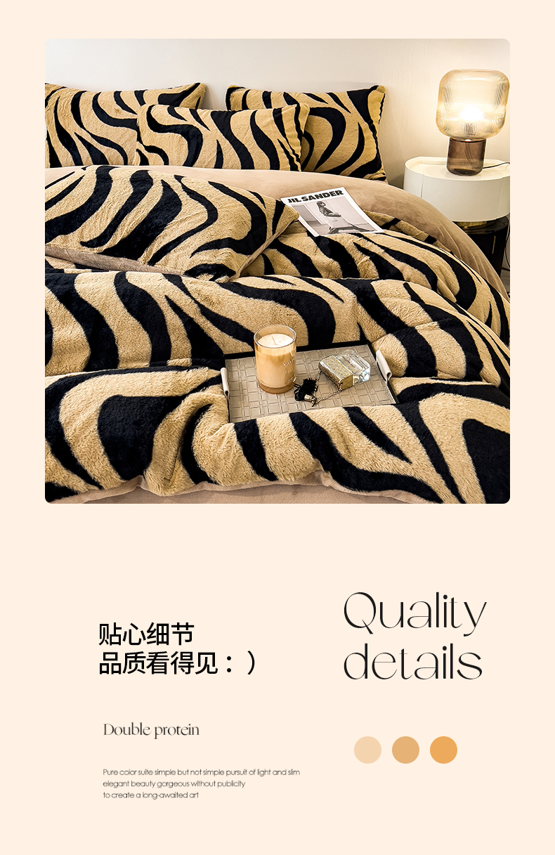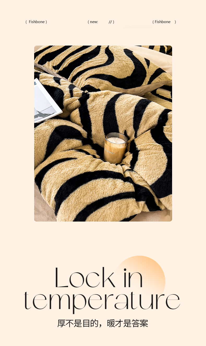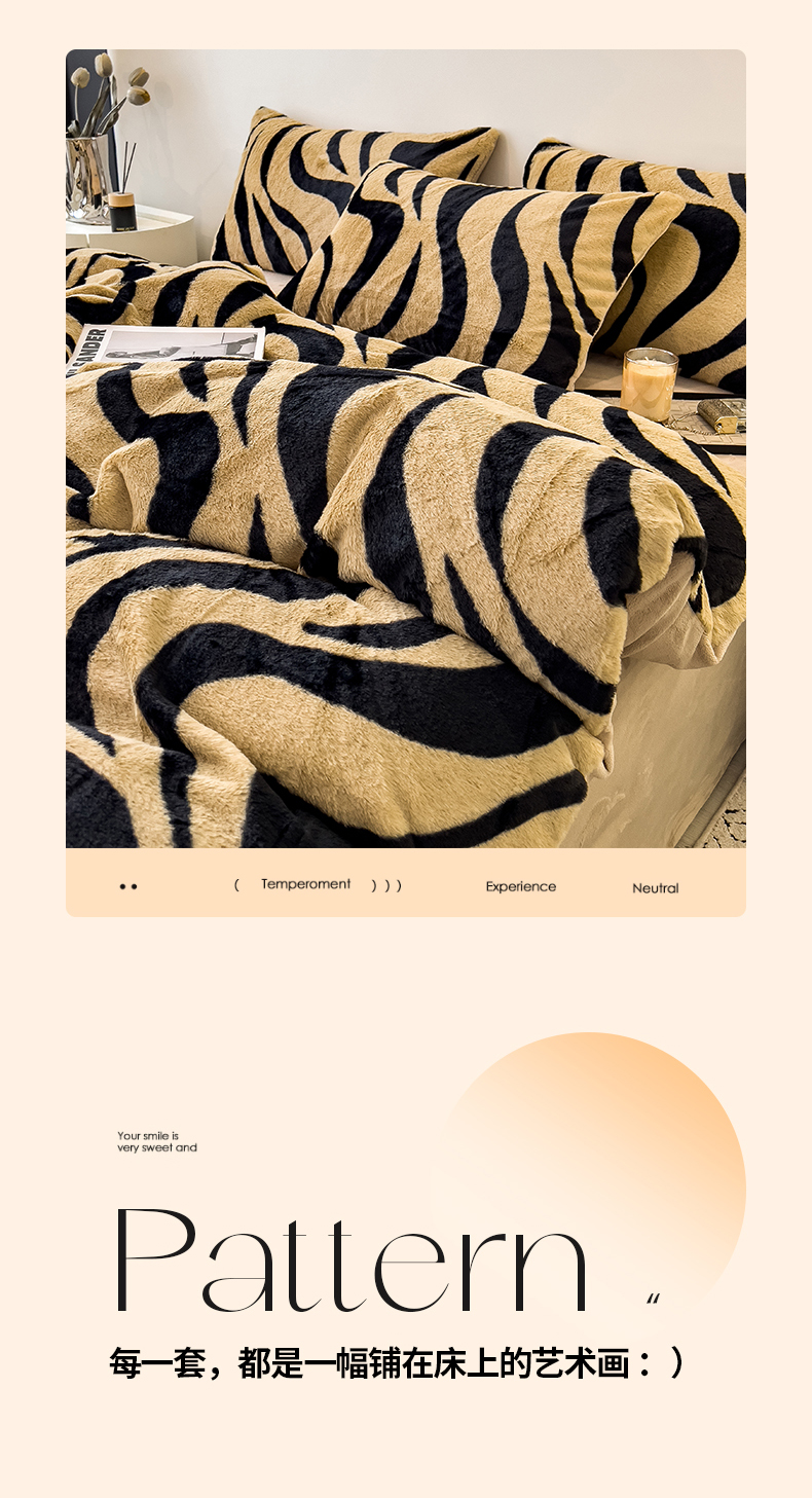 当前位置: 91家纺网 > 商品网购 > 床品套件 > 四件套 > 其它四件套 > 倾慕家纺 2026新款高克重兔毛绒保暖四件套 斑马纹卡其
