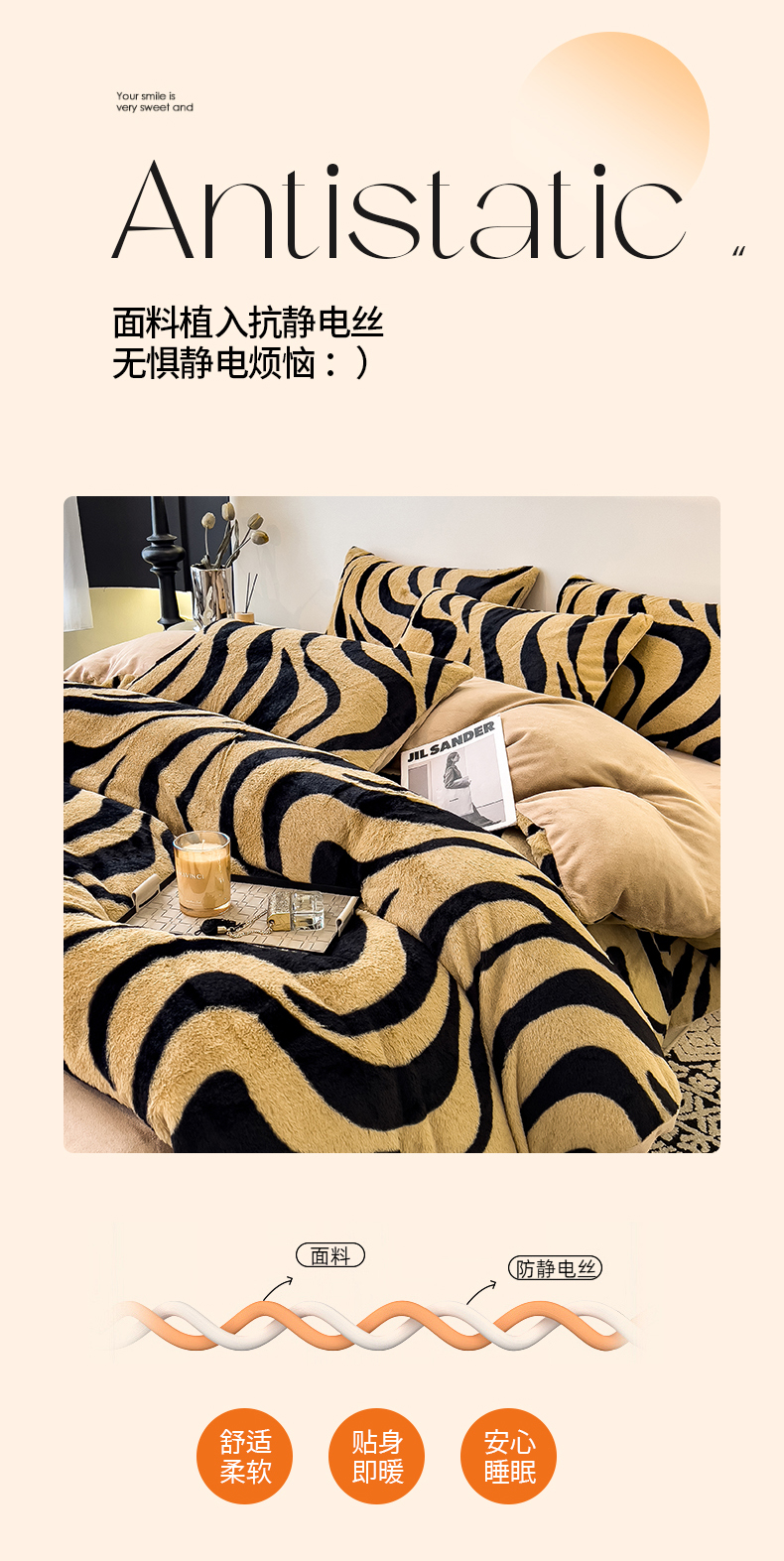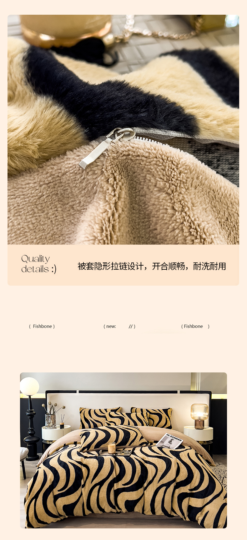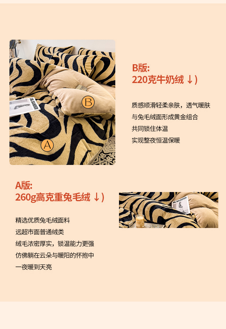 当前位置: 91家纺网 > 商品网购 > 床品套件 > 四件套 > 其它四件套 > 倾慕家纺 2026新款高克重兔毛绒保暖四件套 斑马纹卡其