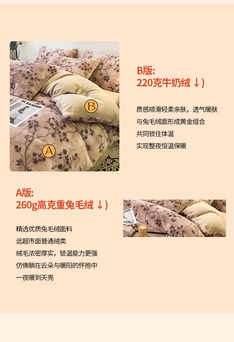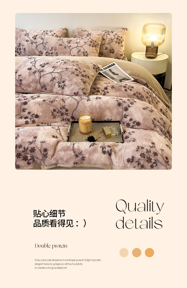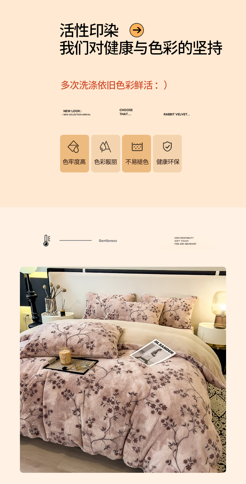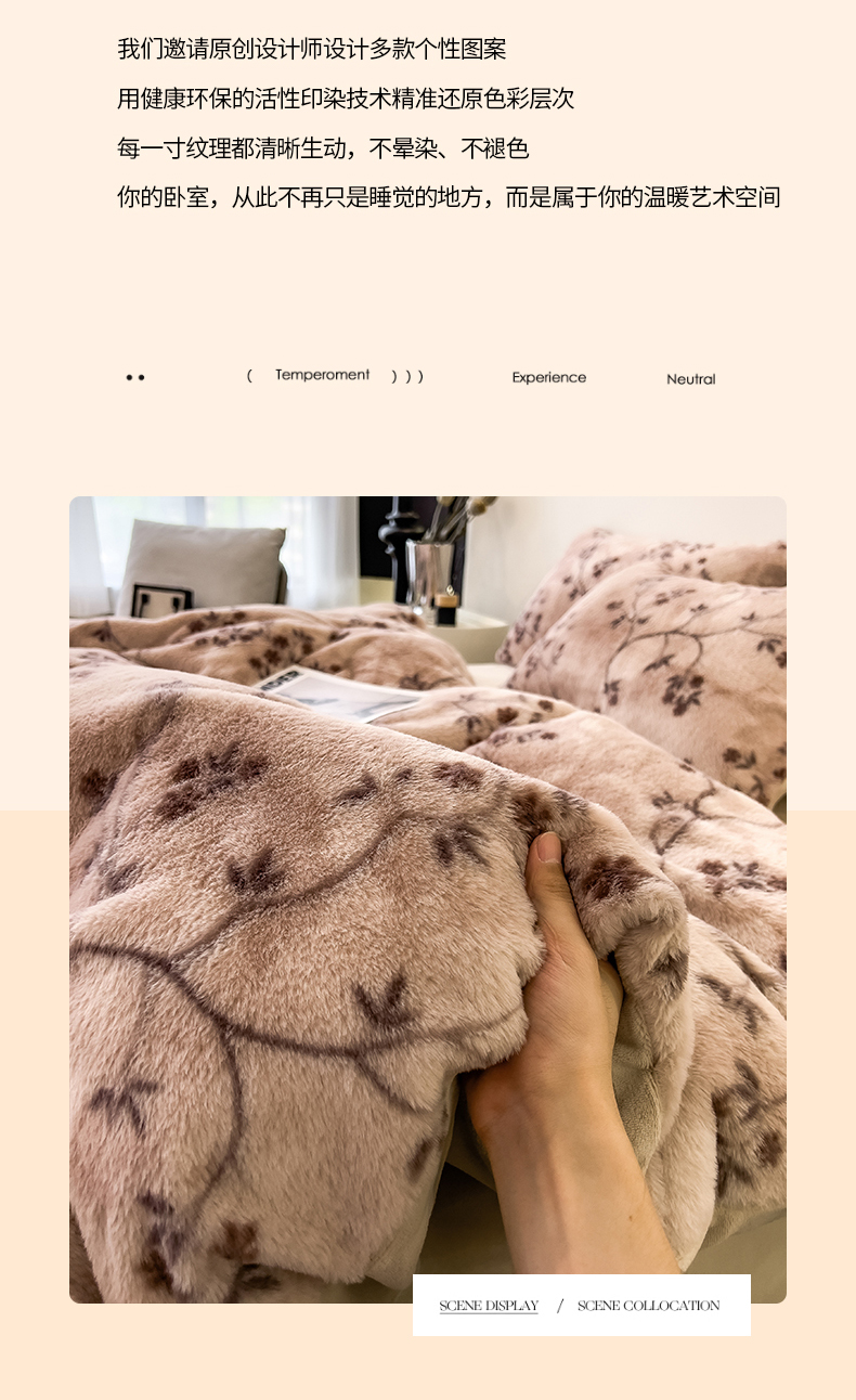 当前位置: 91家纺网 > 商品网购 > 床品套件 > 四件套 > 其它四件套 > 倾慕家纺 2026新款高克重兔毛绒保暖四件套 浅芳