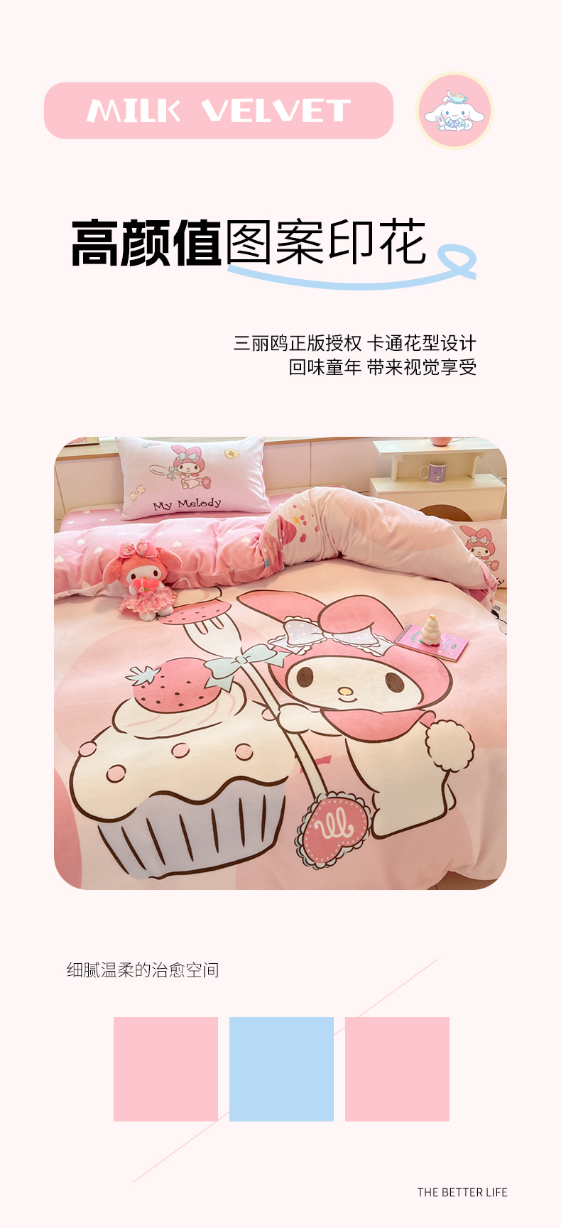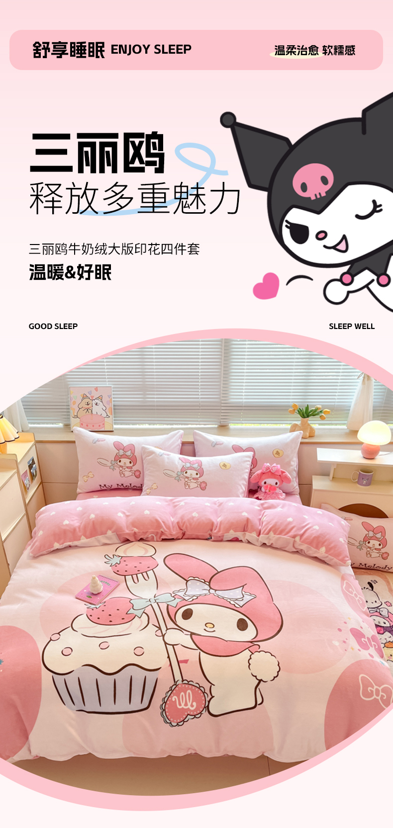 当前位置: 91家纺网 > 商品网购 > 床品套件 > 四件套 > 牛奶绒四件套 > 博雅 2025新款三丽鸥正版授权高克重大版牛奶绒四件套 牛奶绒大版-蛋糕美乐蒂