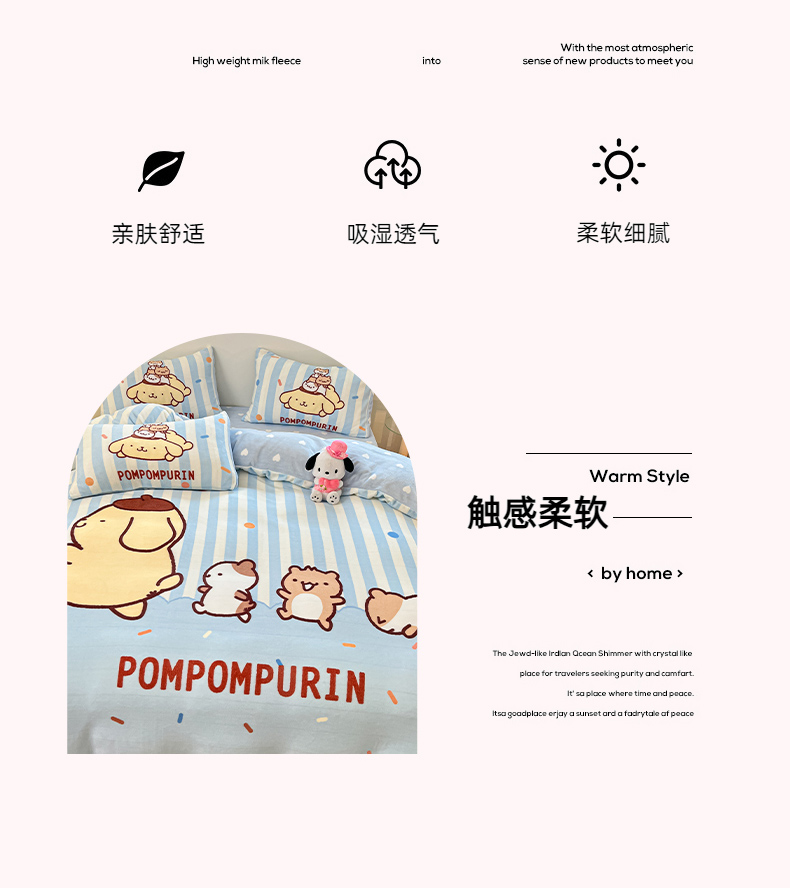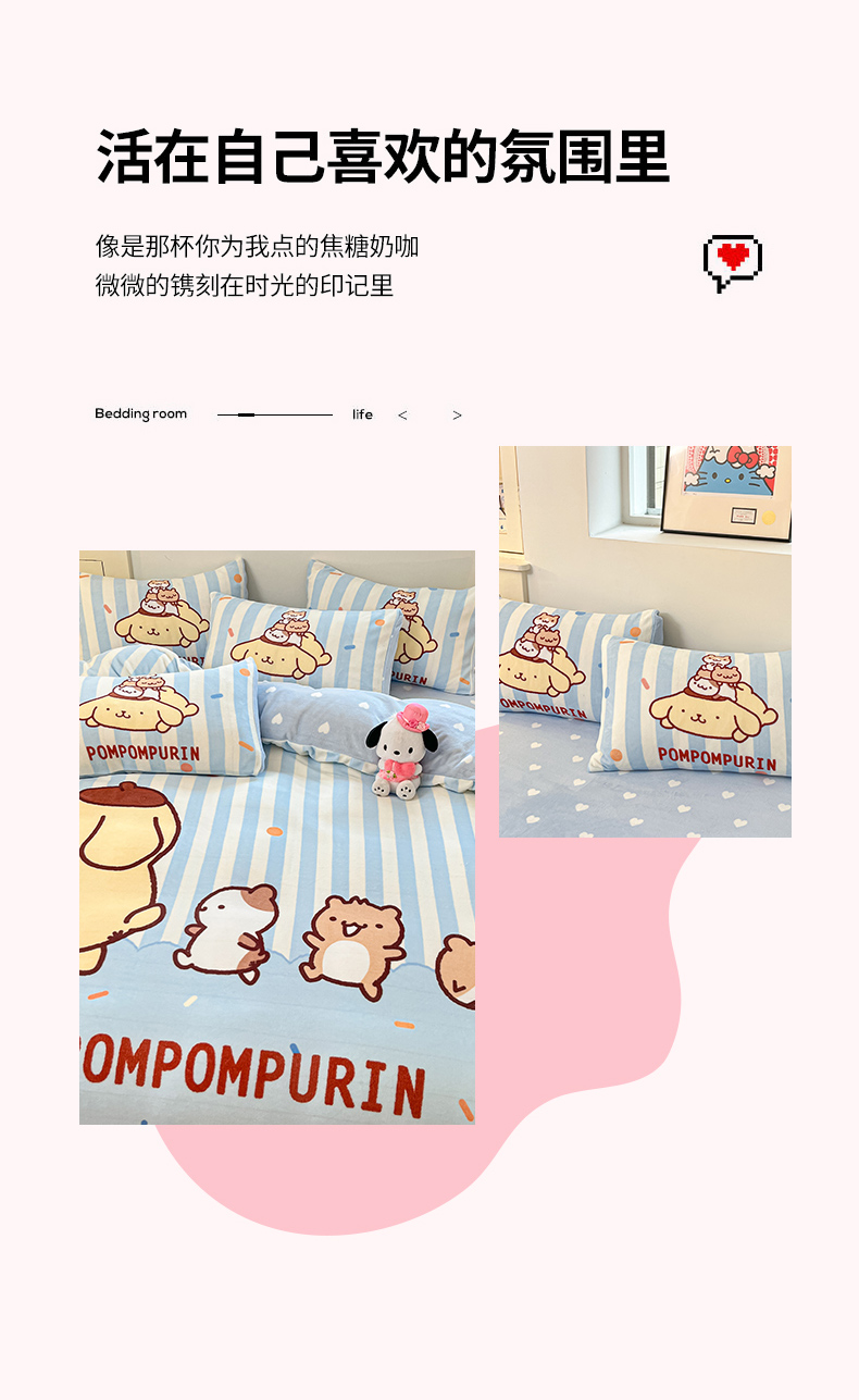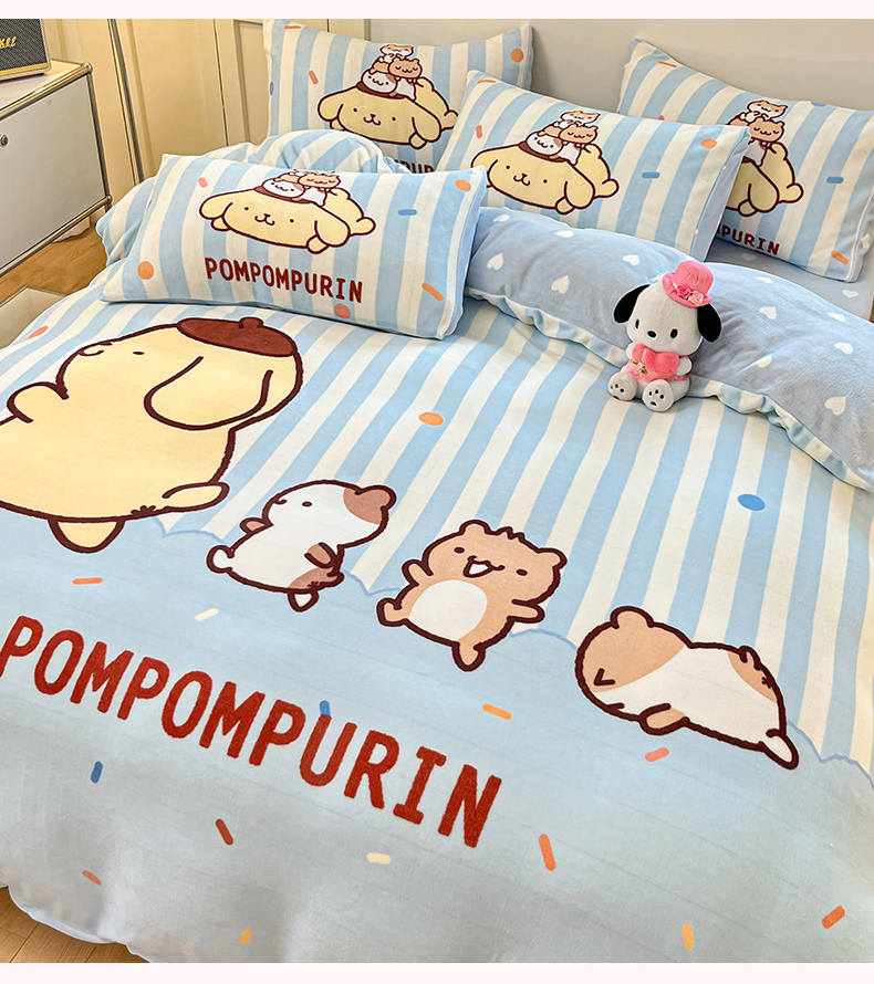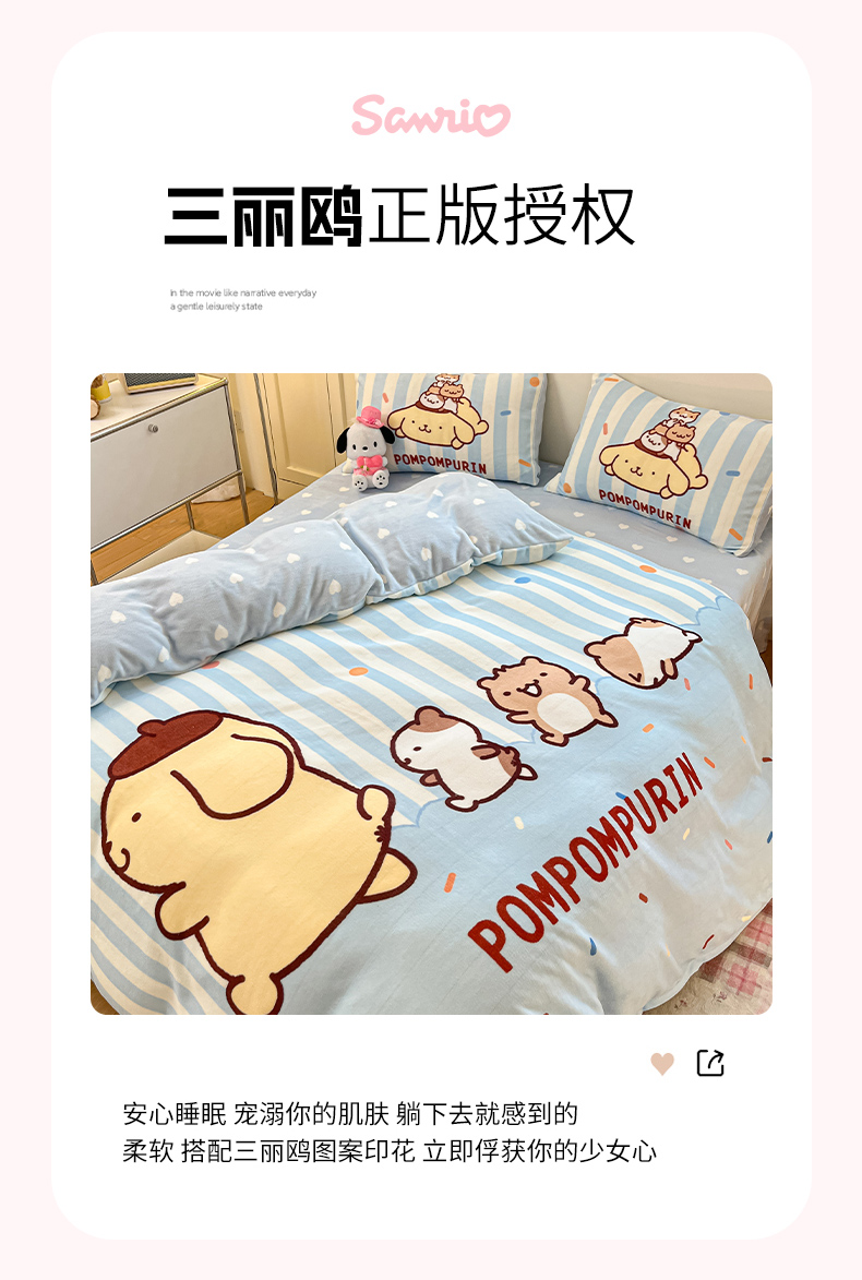 当前位置: 91家纺网 > 商品网购 > 床品套件 > 四件套 > 牛奶绒四件套 > 博雅 2025新款三丽鸥正版授权高克重大版牛奶绒四件套 牛奶绒大版-小彩带布丁狗