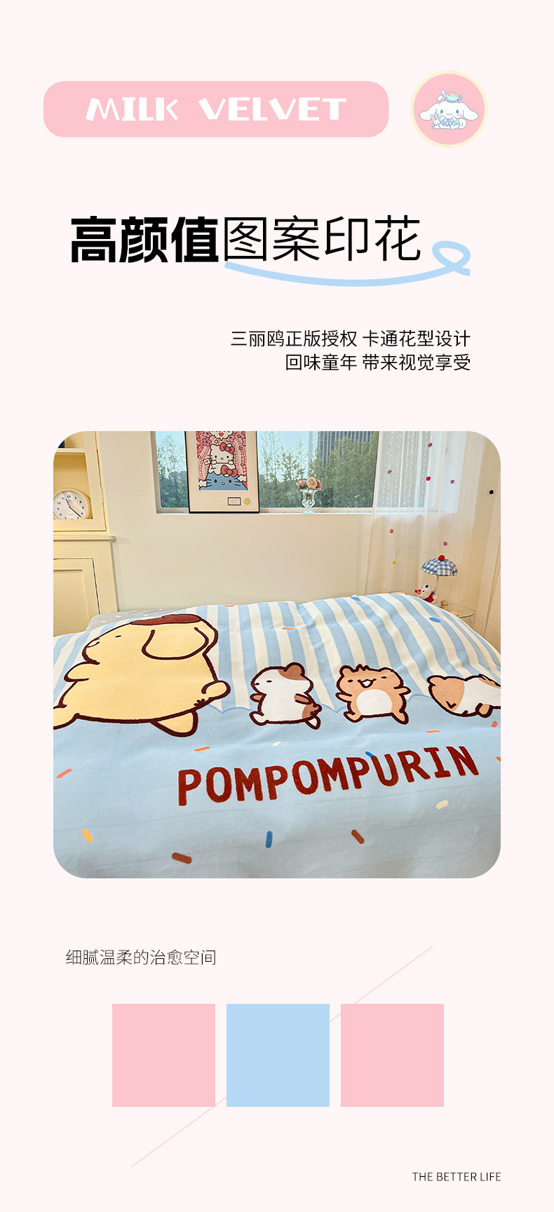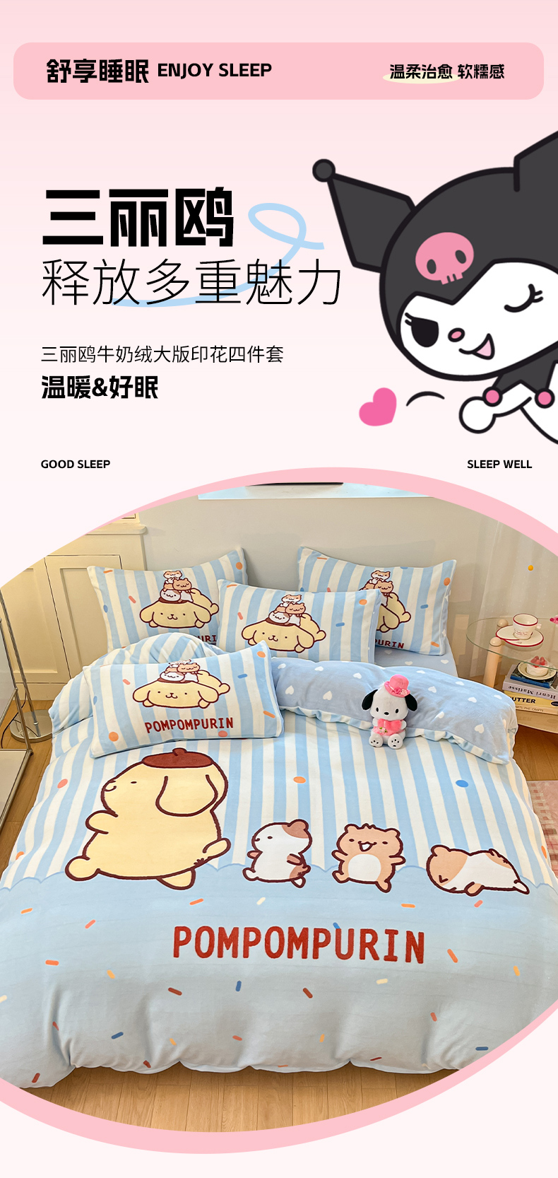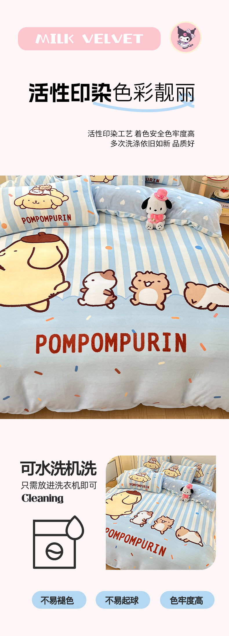 当前位置: 91家纺网 > 商品网购 > 床品套件 > 四件套 > 牛奶绒四件套 > 博雅 2025新款三丽鸥正版授权高克重大版牛奶绒四件套 牛奶绒大版-小彩带布丁狗