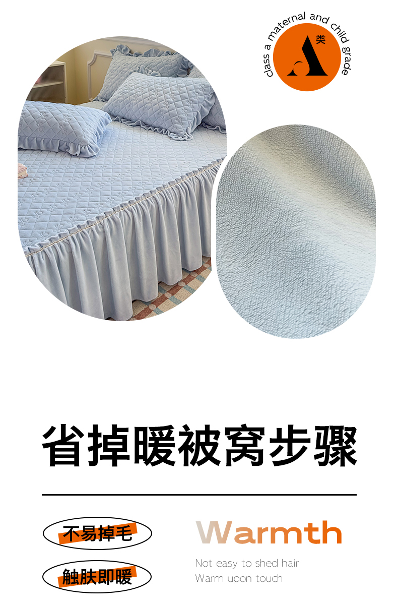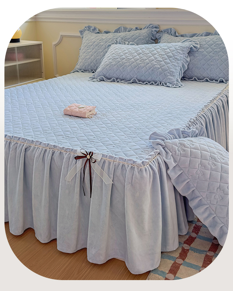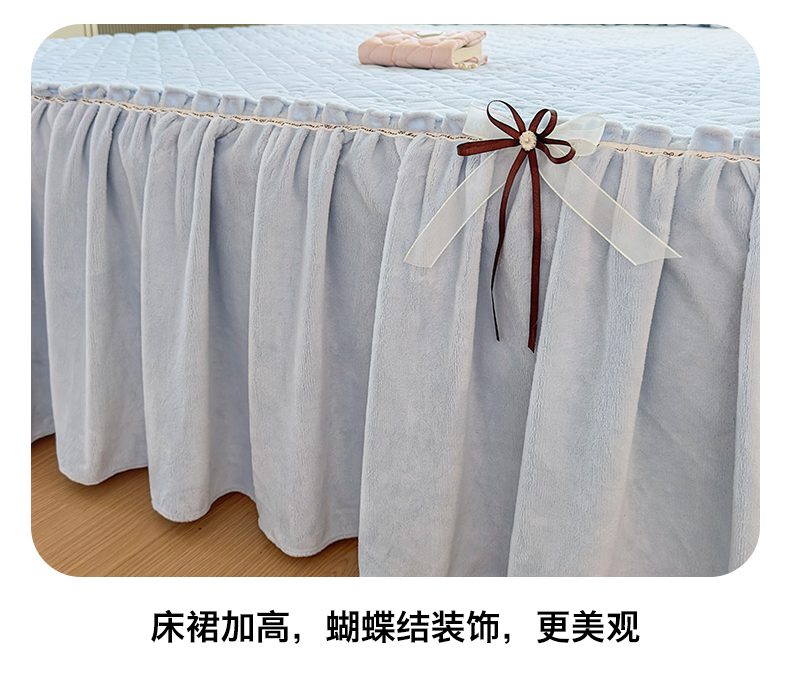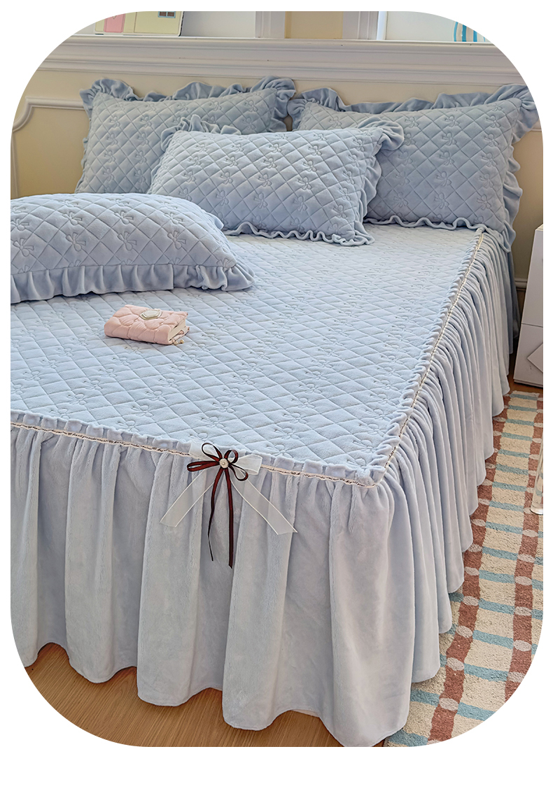 当前位置: 91家纺网 > 商品网购 > 床品套件 > 四件套 > 牛奶绒四件套 > 恒爱家纺 2025新款牛奶绒贴布绣夹棉床裙四件套 天空蓝