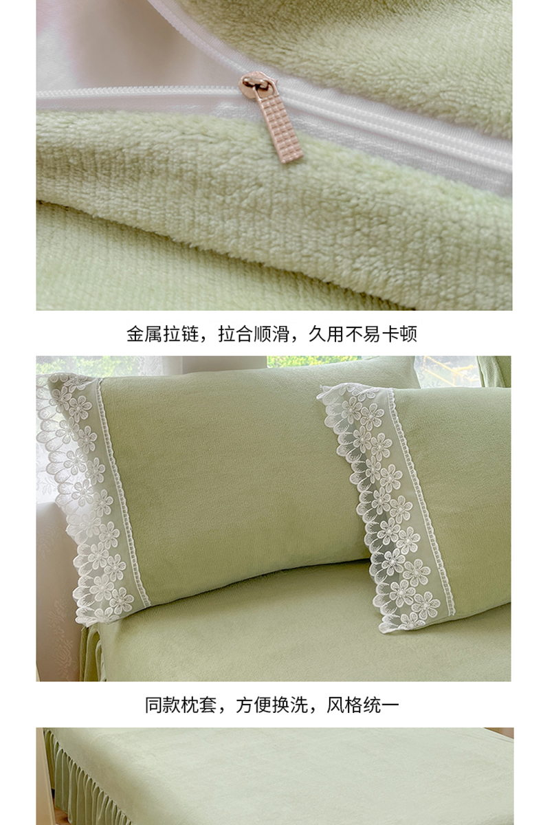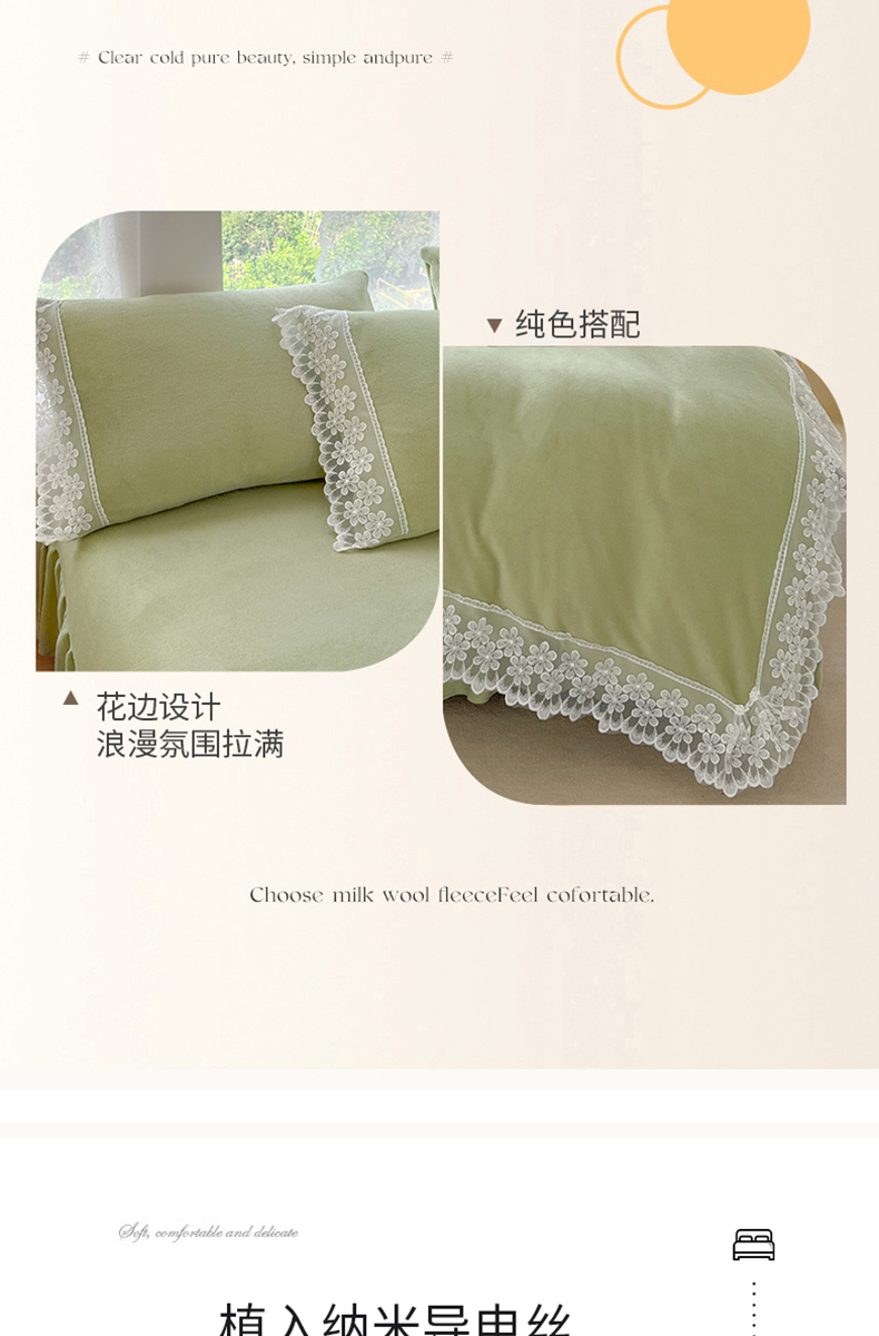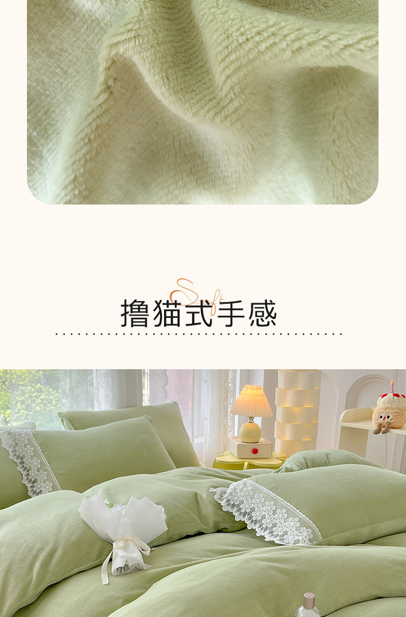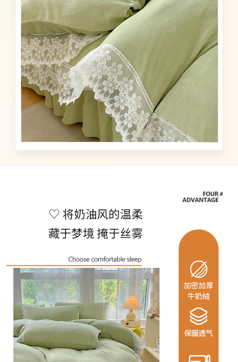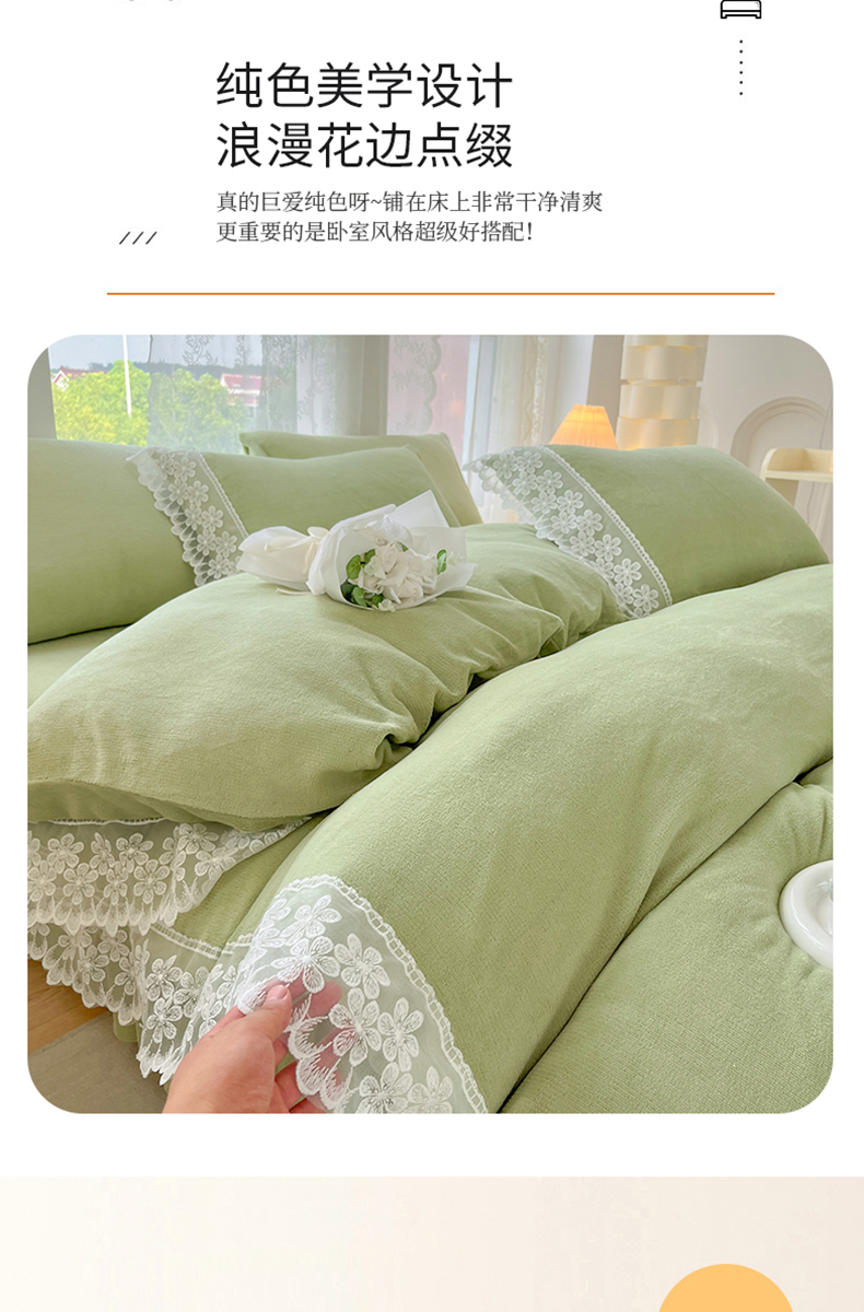 当前位置: 91家纺网 > 商品网购 > 床品套件 > 四件套 > 牛奶绒四件套 > 汣沐生活 2025新款奶油风纯色牛奶绒花边四件套三件套 花边款-牛油果绿