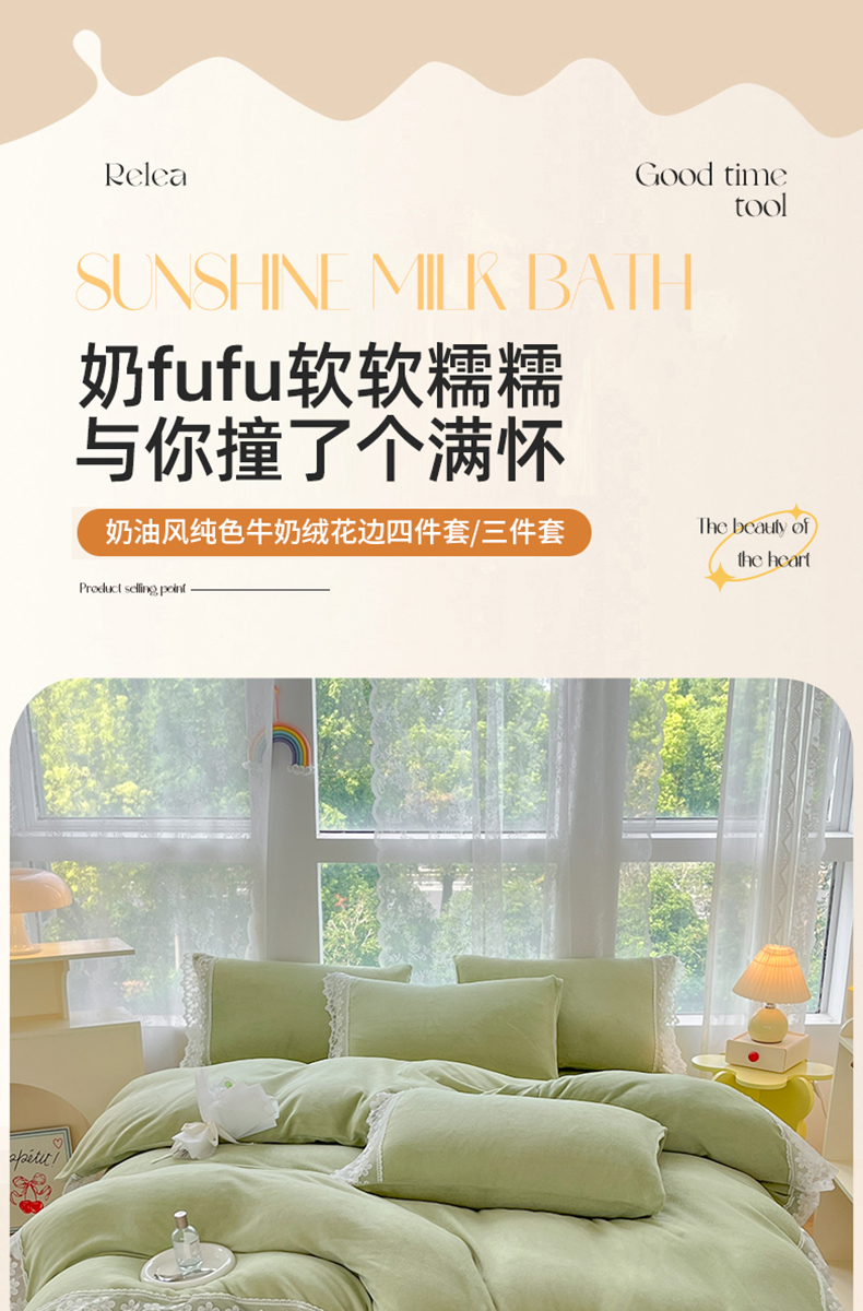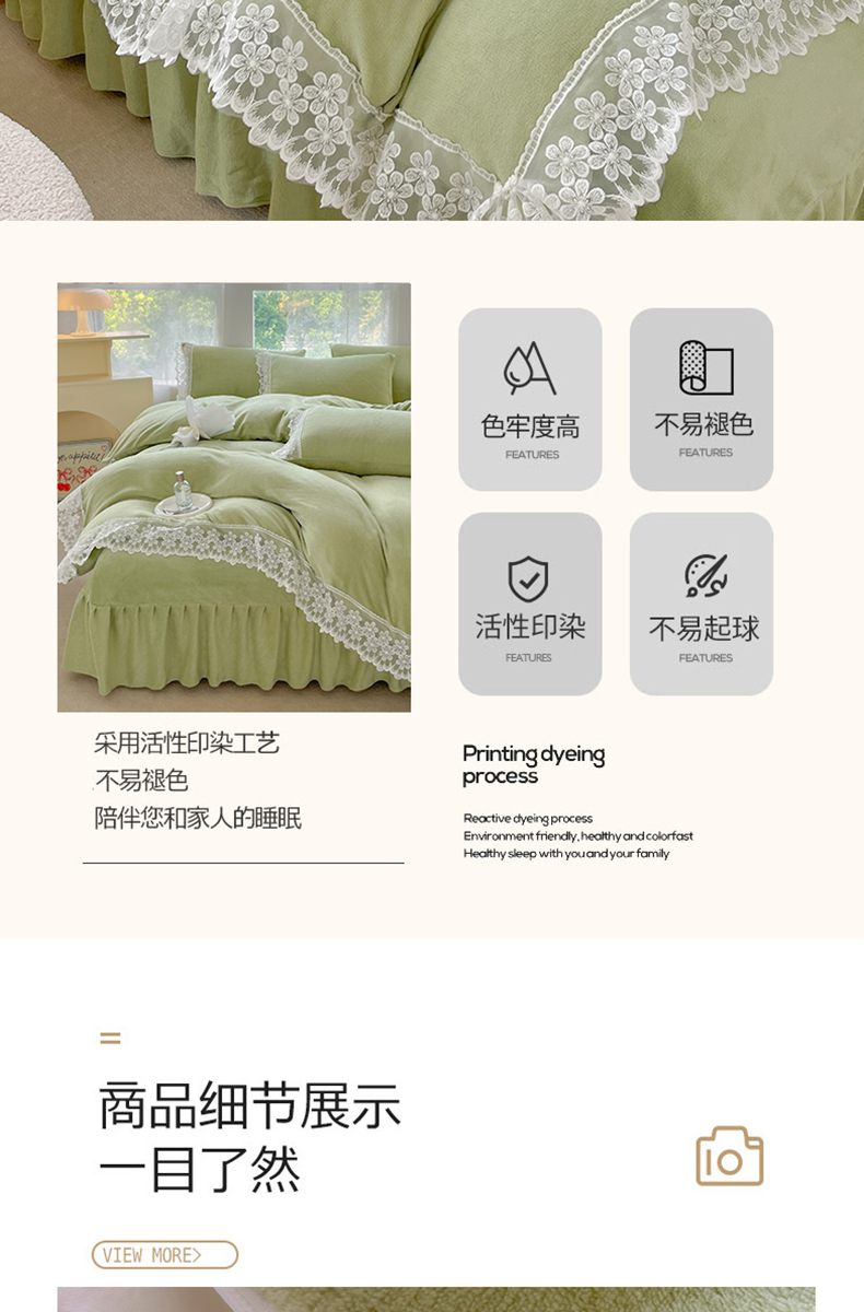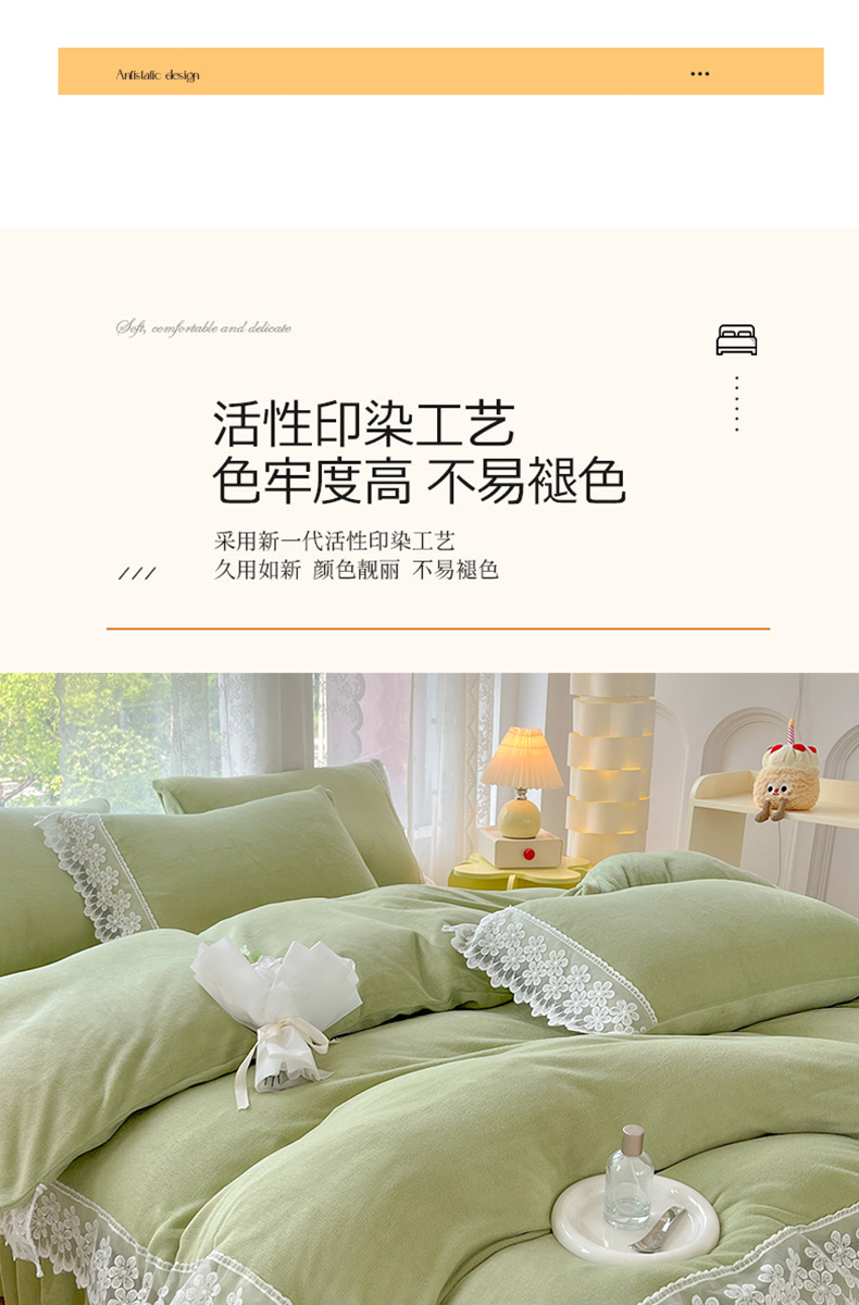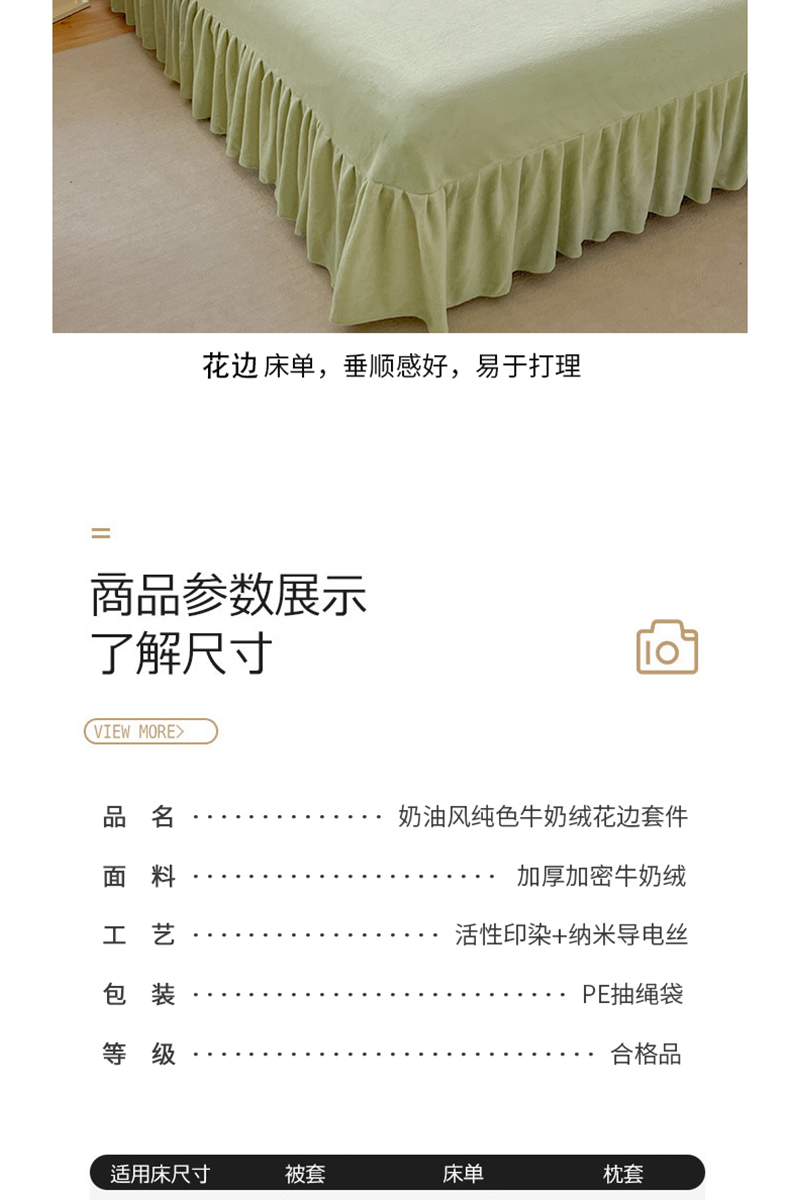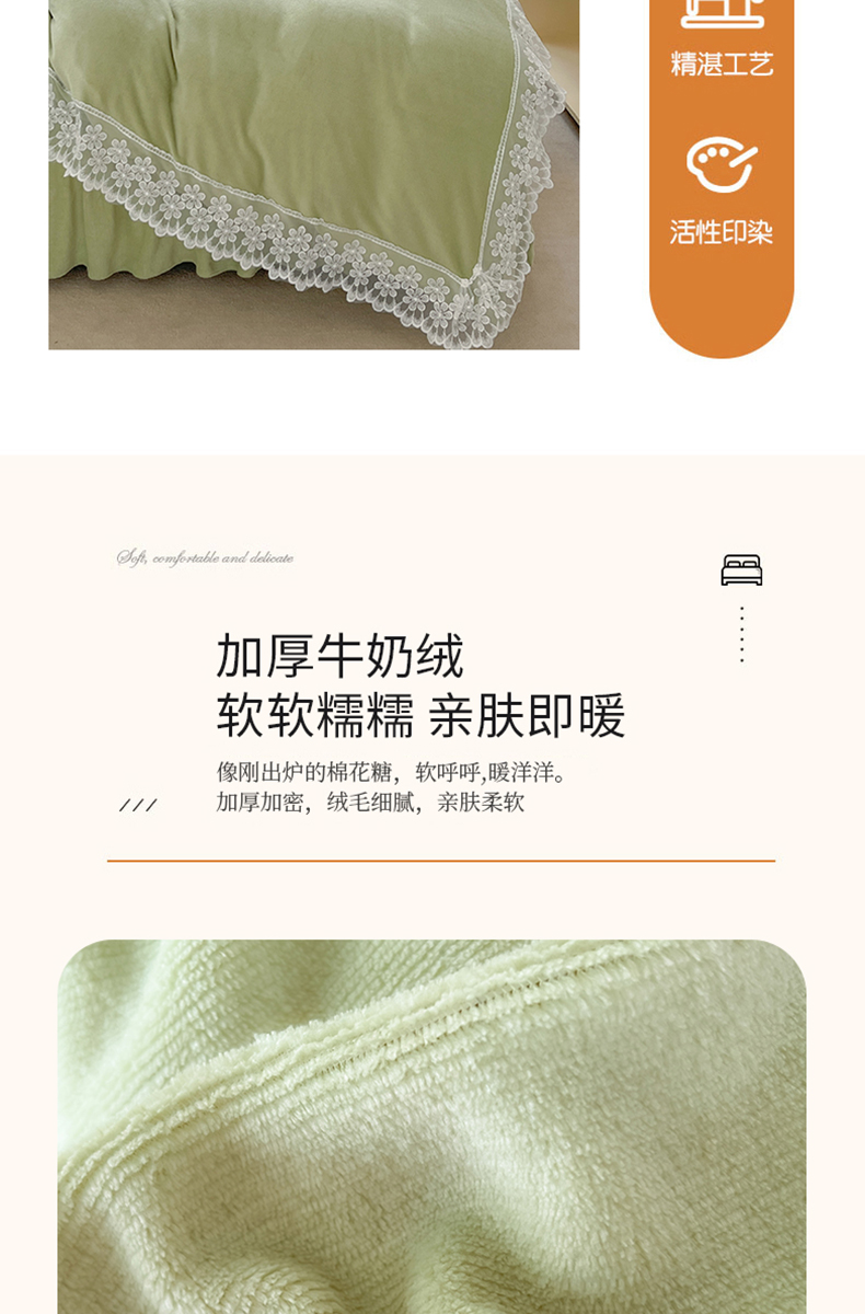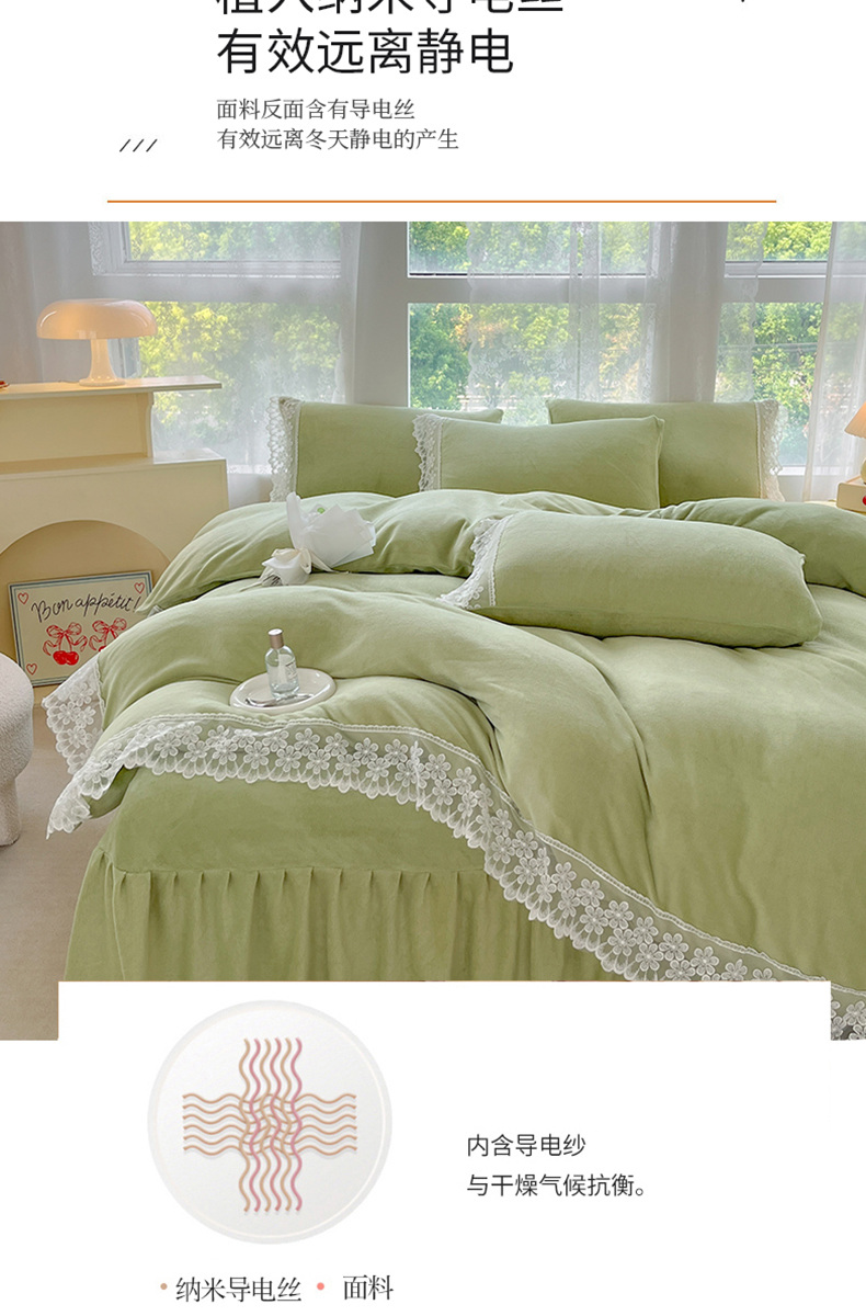 当前位置: 91家纺网 > 商品网购 > 床品套件 > 四件套 > 牛奶绒四件套 > 汣沐生活 2025新款奶油风纯色牛奶绒花边四件套三件套 花边款-牛油果绿