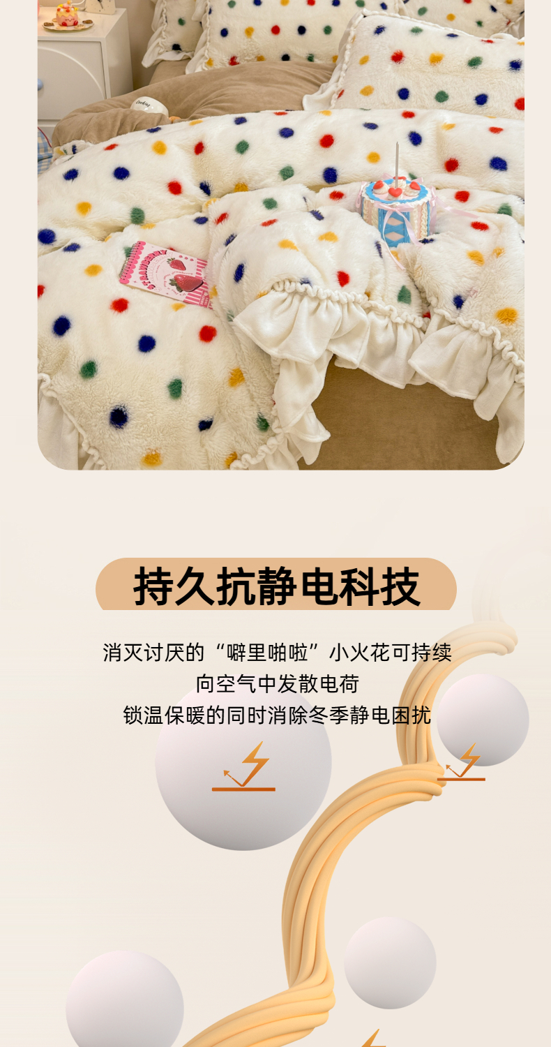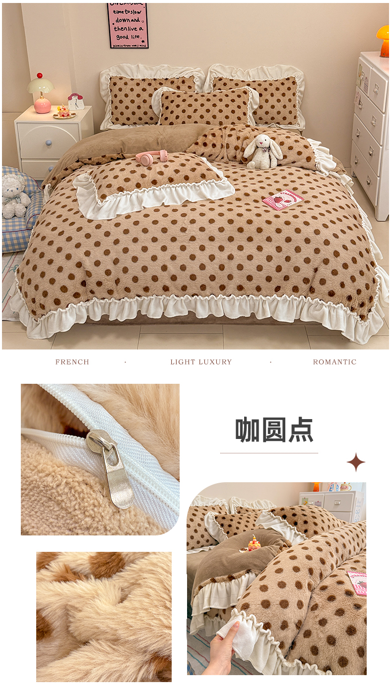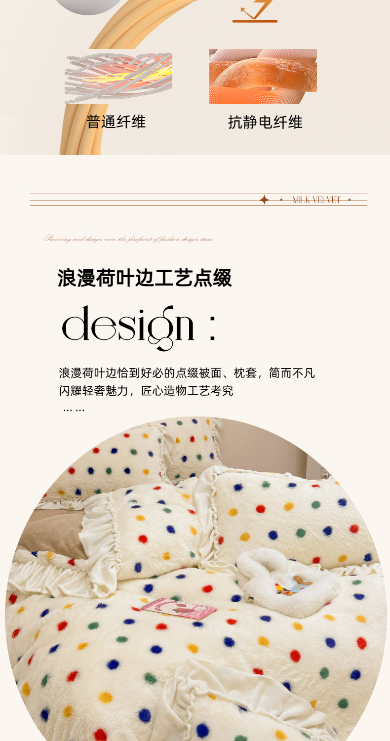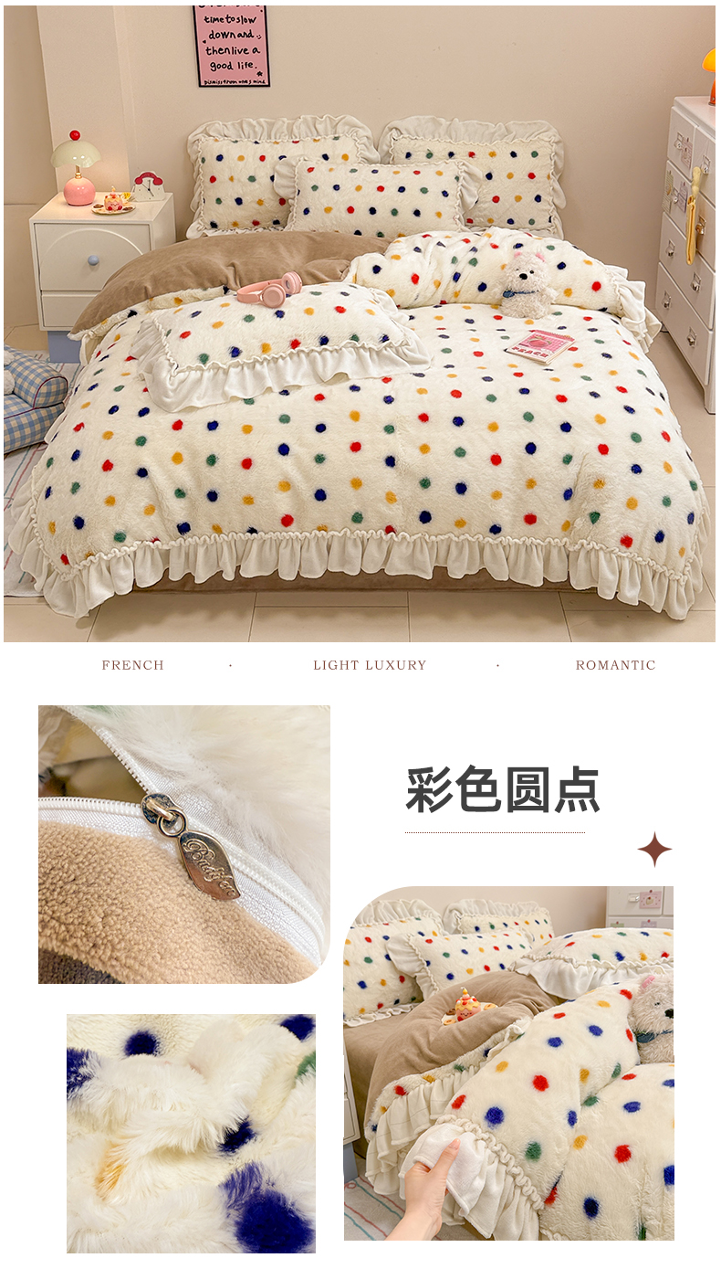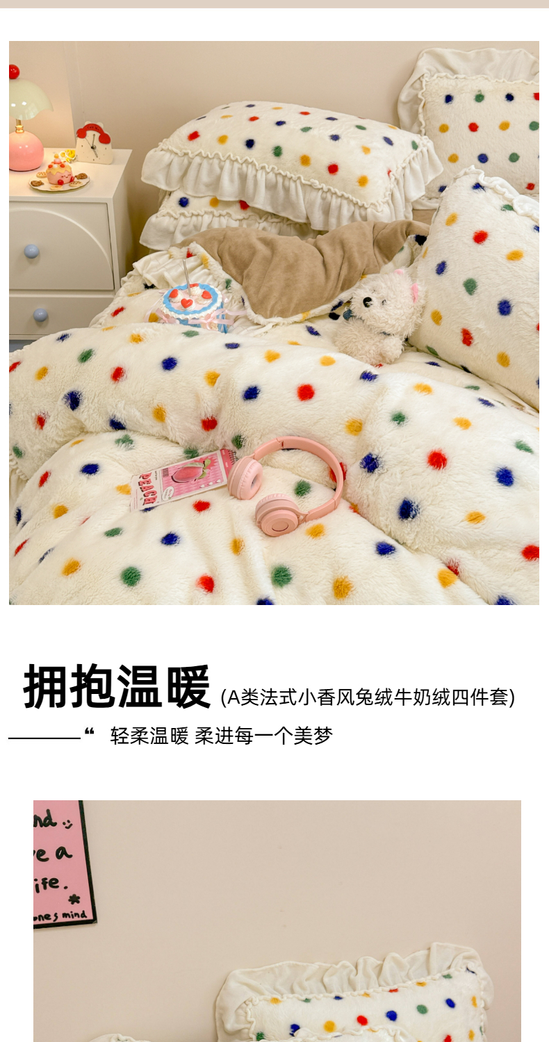 (总)米莱家纺 2025新款兔毛绒花边牛奶绒四件套,彩色圆点,繁花,粉黛,蝴蝶结,咖圆点,可爱兔,可爱熊,蔷薇