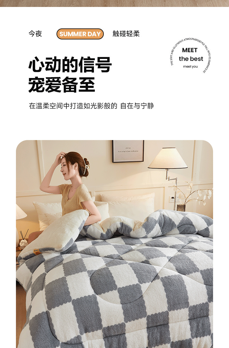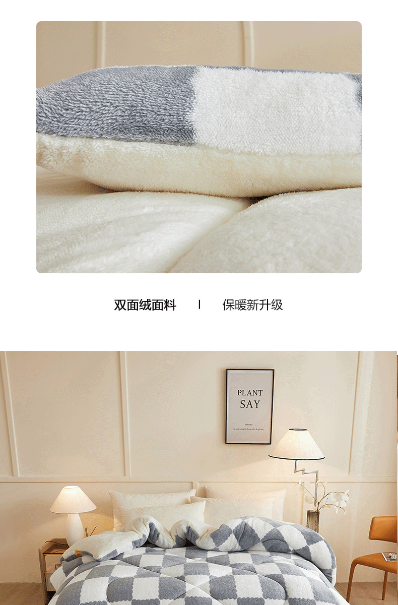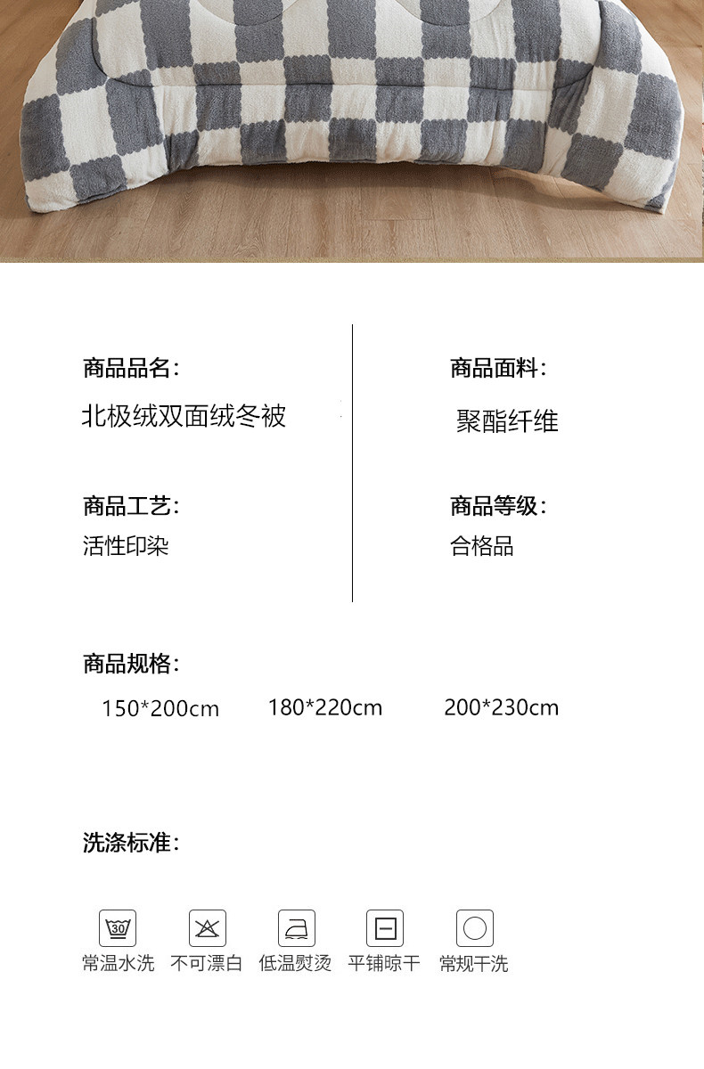 商品名称:爱屋及屋 2025新款北极绒双面绒牛奶绒棋盘格冬被被子被芯 棋盘-灰白格