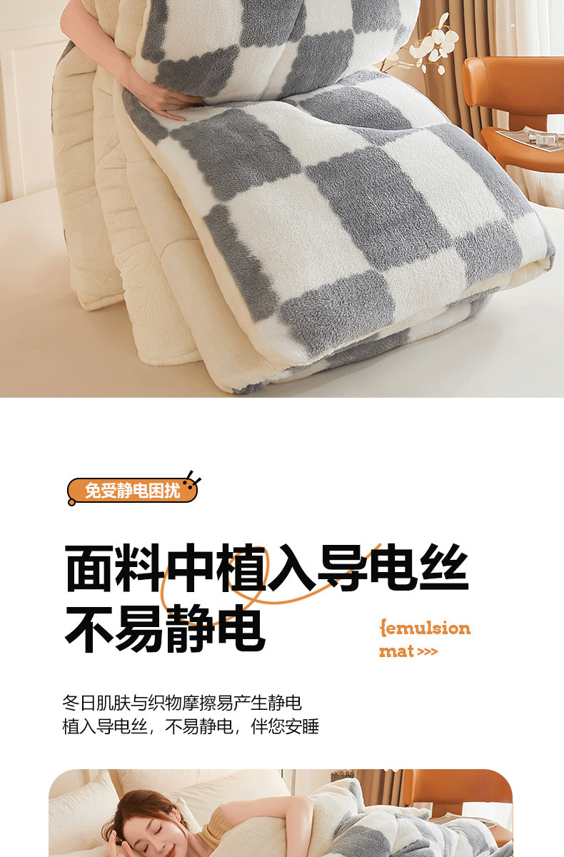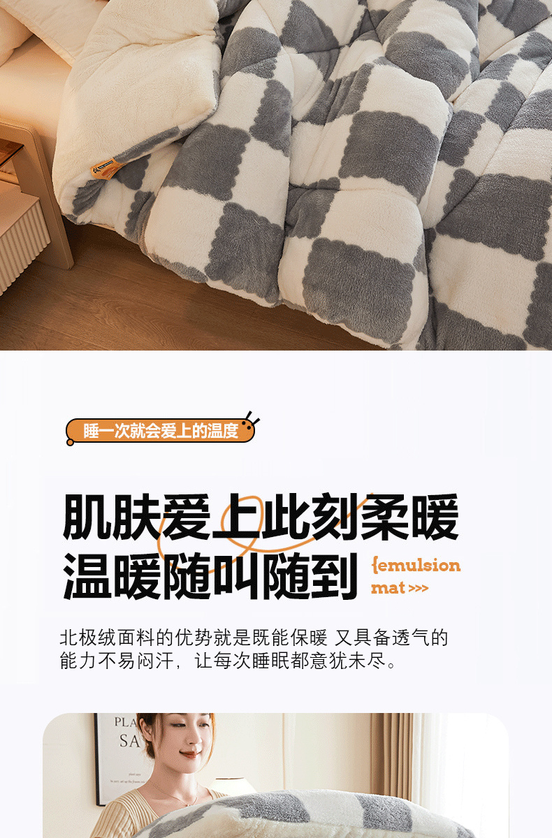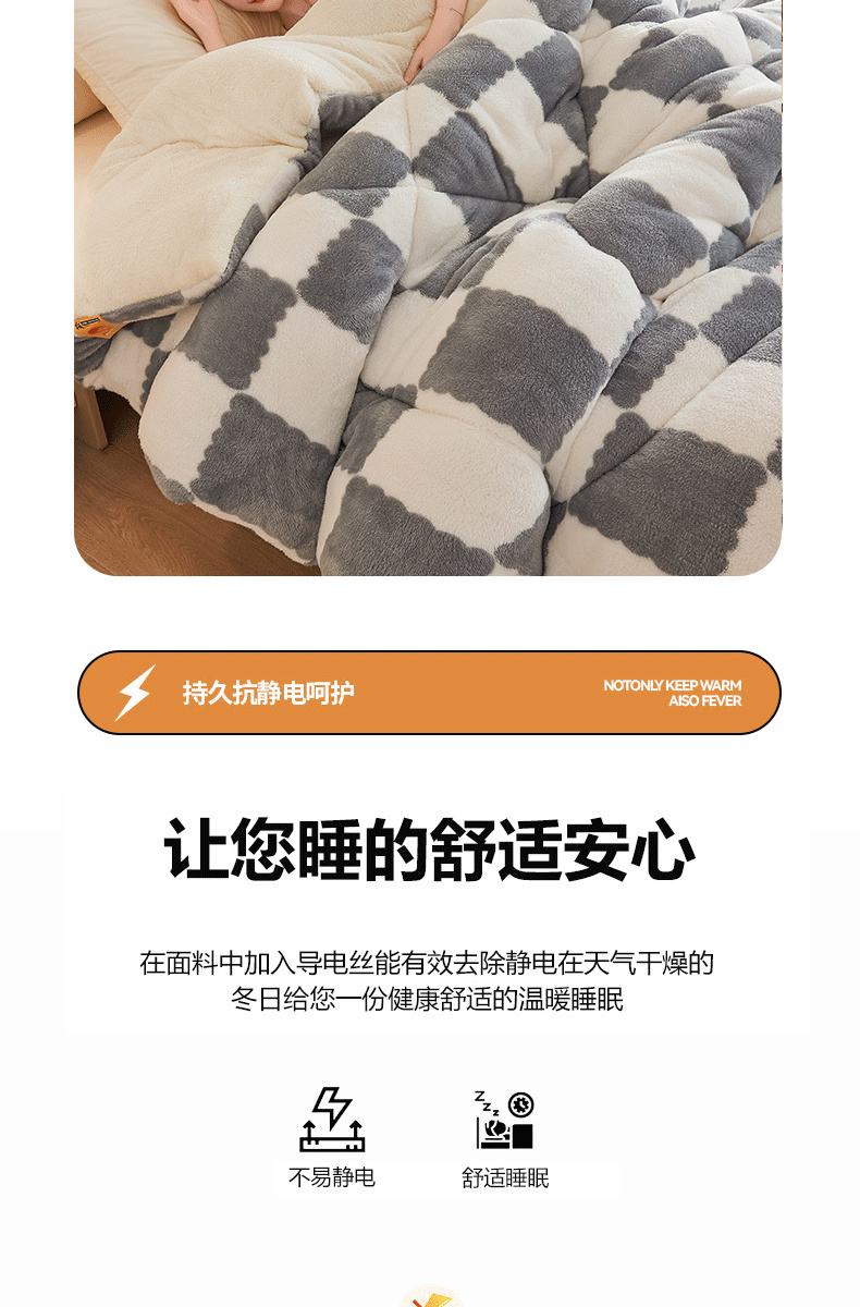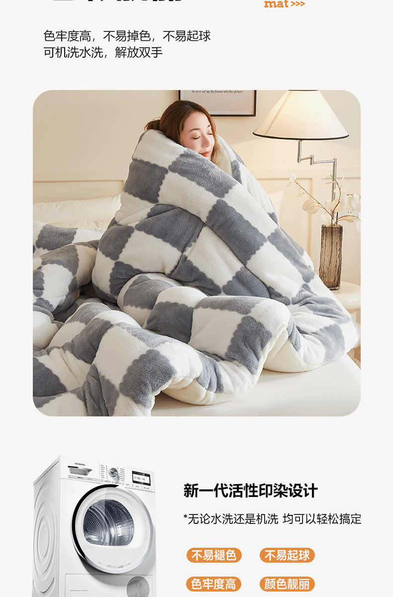 商品名称:爱屋及屋 2025新款北极绒双面绒牛奶绒棋盘格冬被被子被芯 棋盘-灰白格